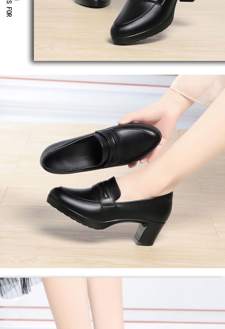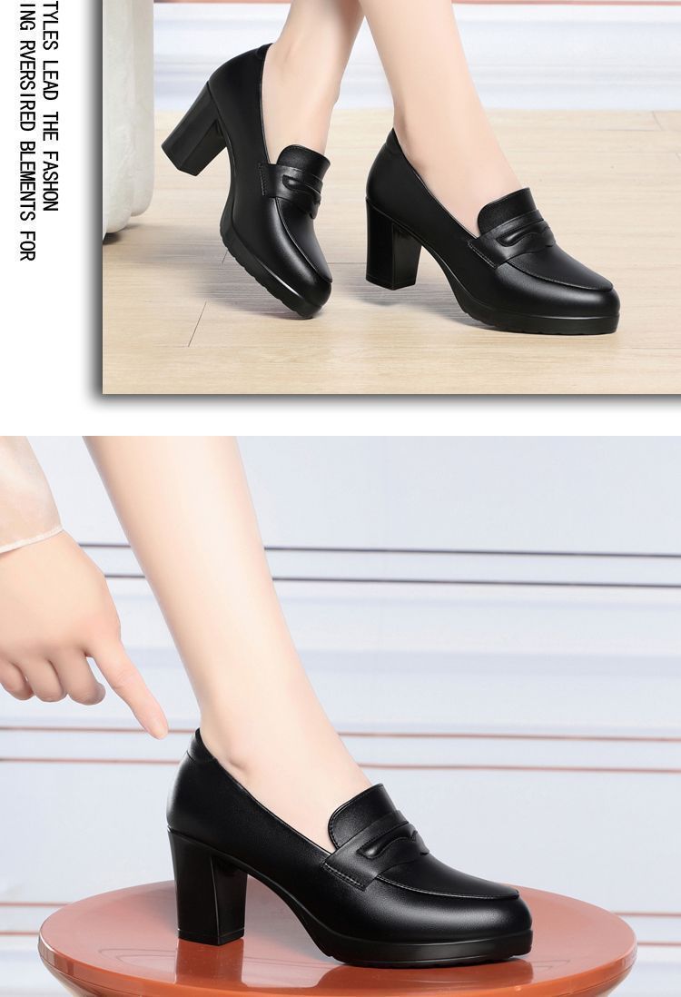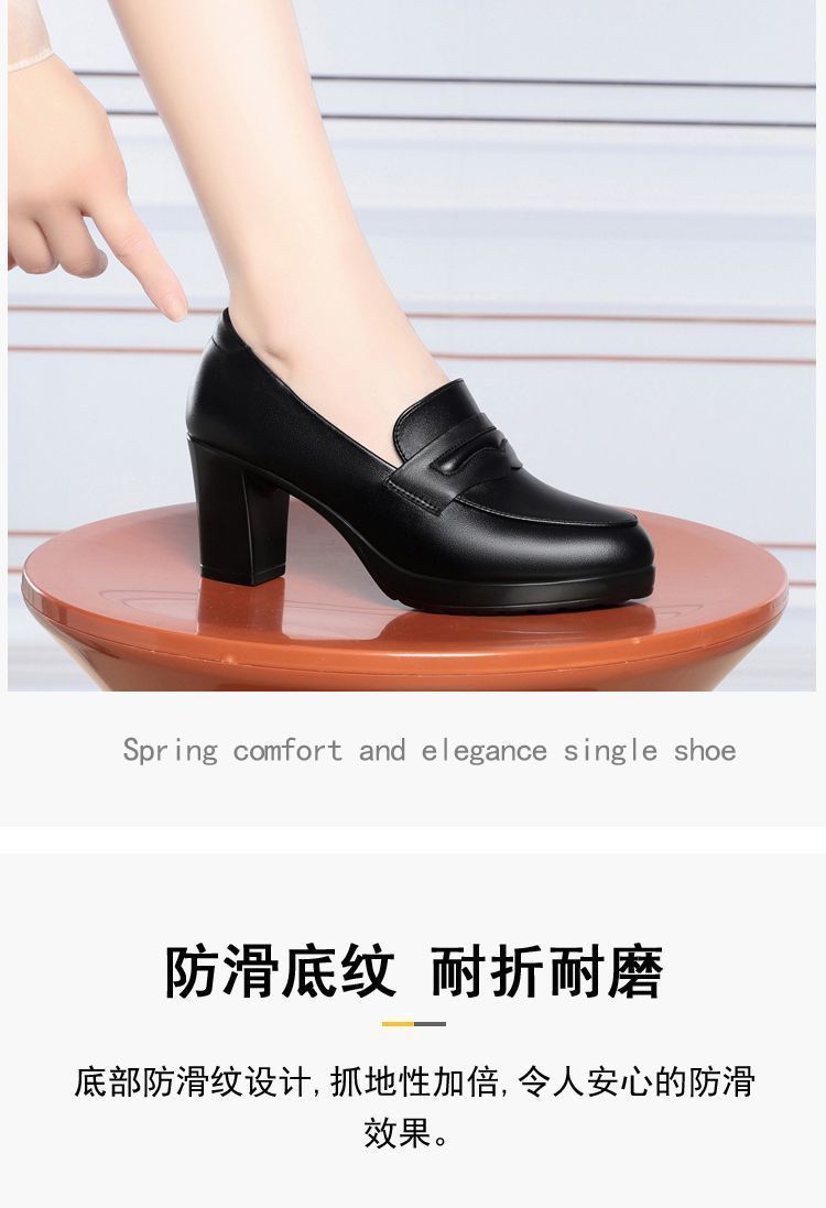 여성 신형 청키 힐 신발 2024 봄 여름 간단한 하이 퀄리티 부드러운 가죽 하이힐 중년 매일 올 매치 가죽 신발스토어 가기