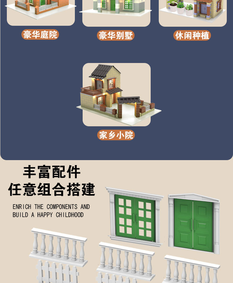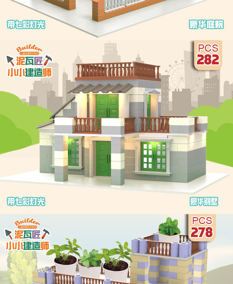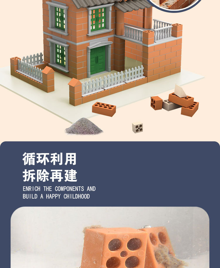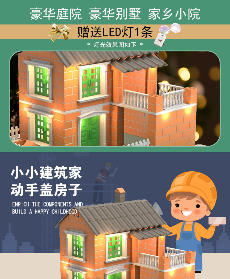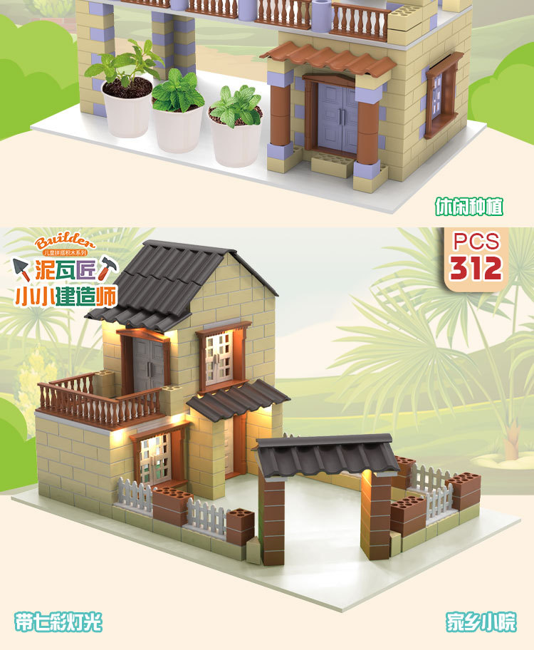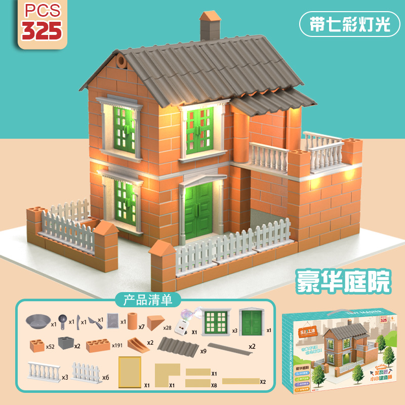 공장 직접 미니 벽돌공 DIY 어린이 집짓기 장난감 건물 빌라 안뜰 시뮬레이션 벽돌 집
