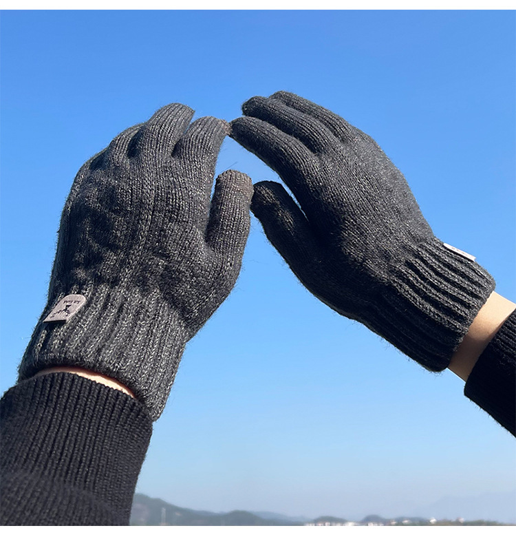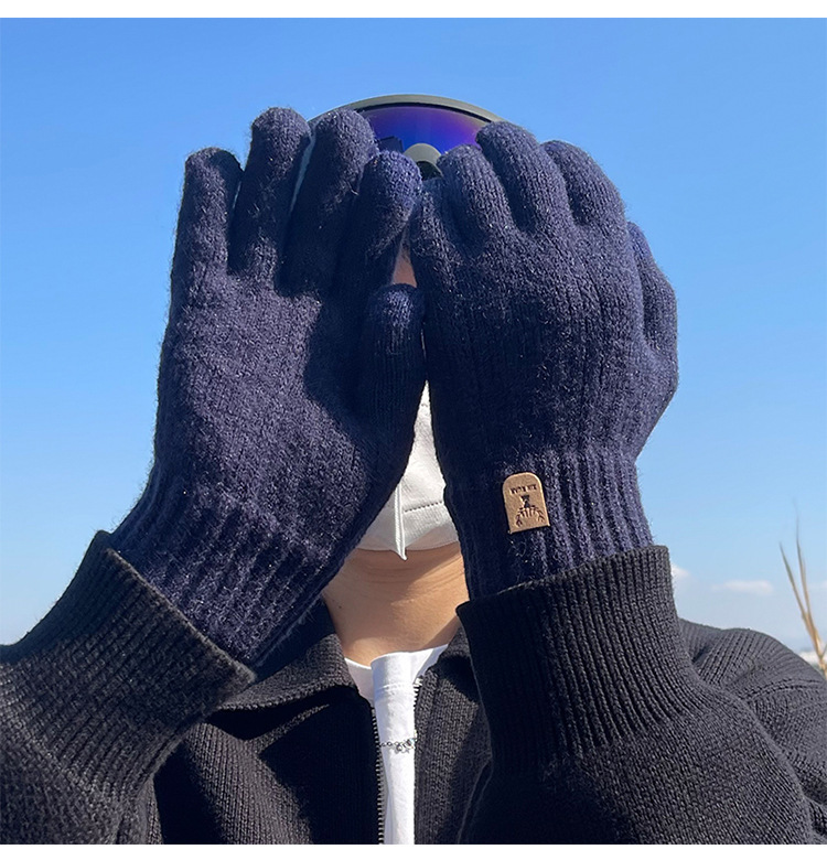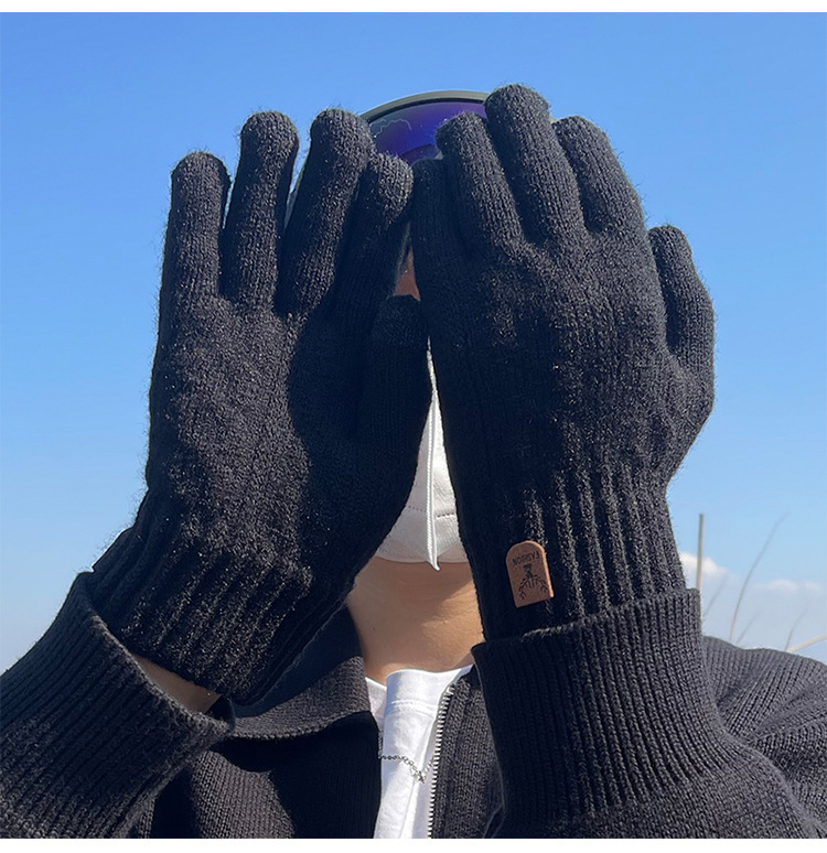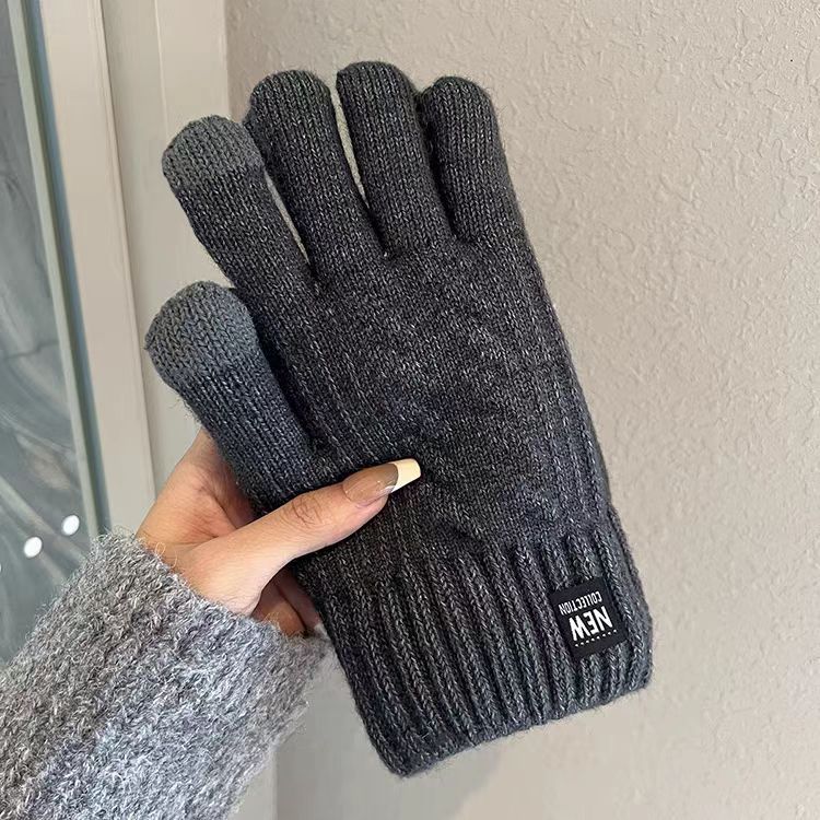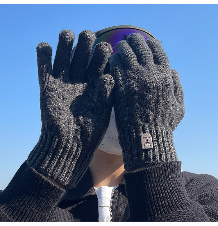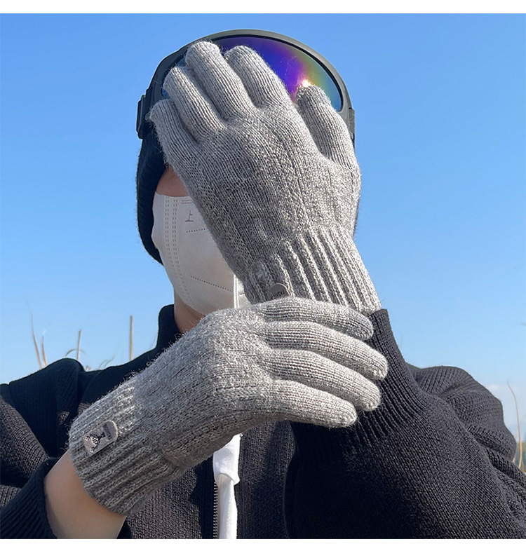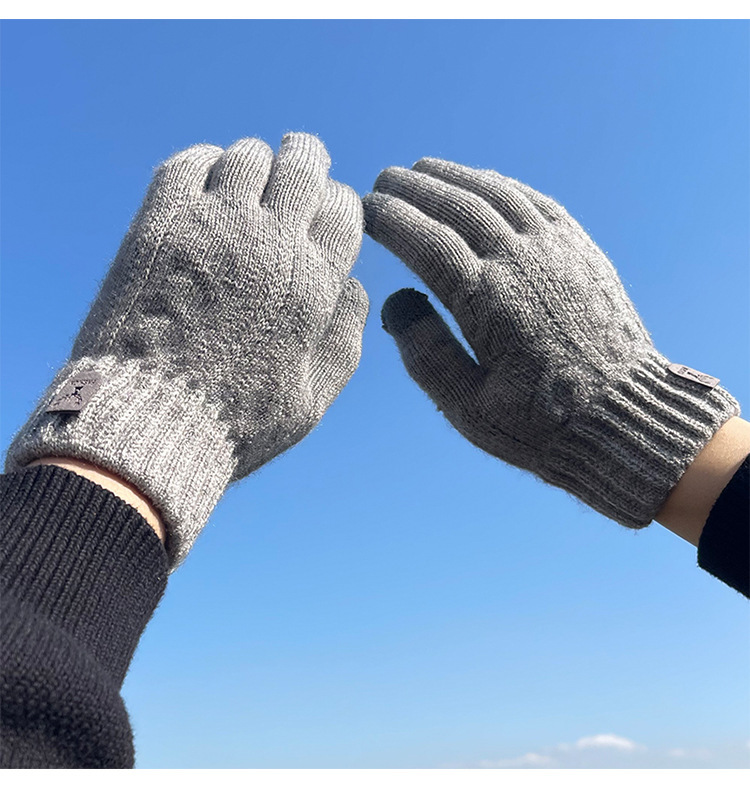 따뜻한 장갑 가을과 겨울 남자의 터치 스크린 울 니트 전기 자전거 타고 운전 기모 두꺼운 학생 감기 보호