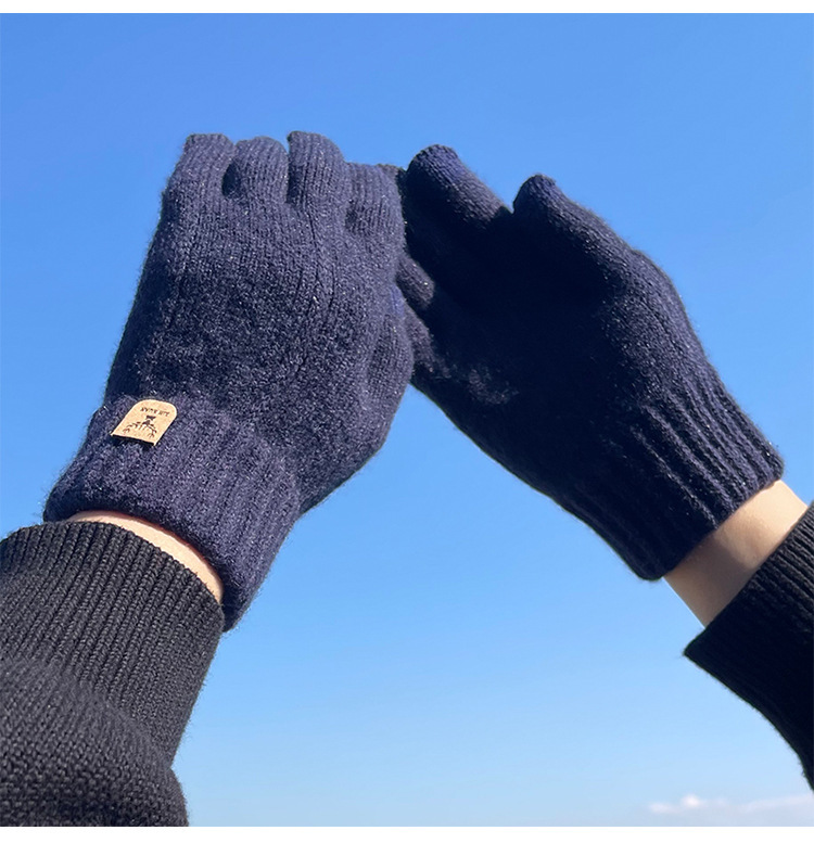 • 네이비 블루-[터치 스크린] 녹용 라벨 [벨벳 및 두꺼운] 전체 손가락