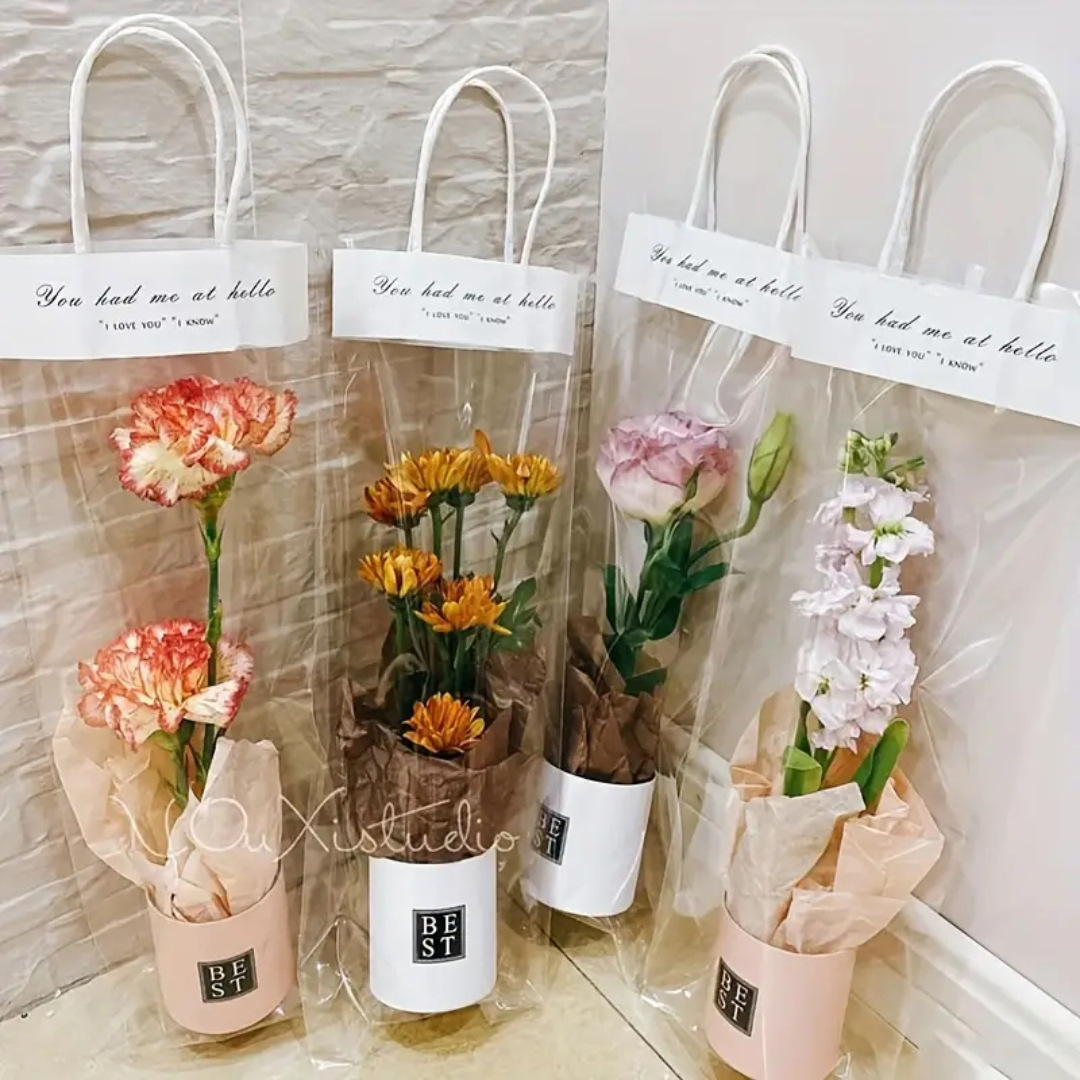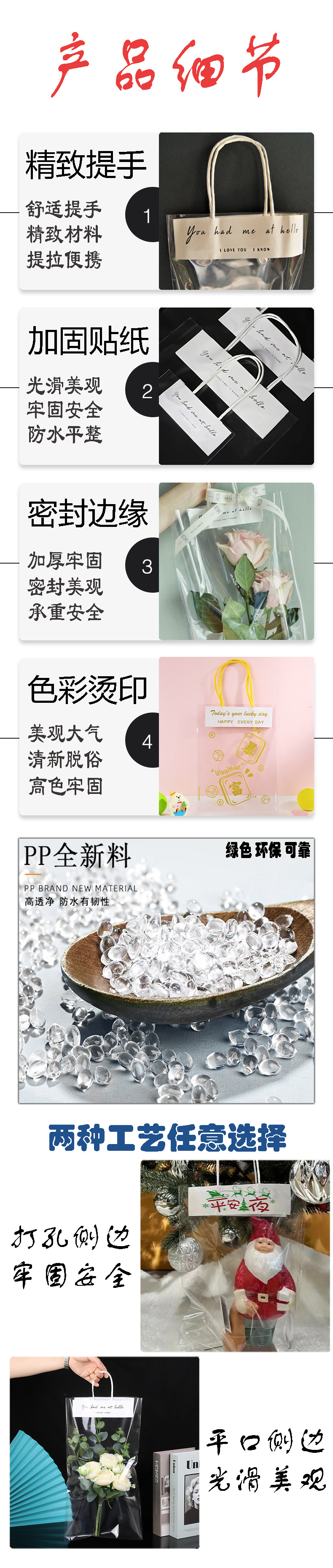 인터넷 축하 Opp 핸드백 플라스틱 투명 선물 꽃 꽃다발 의류 장난감 하이 엔드 센스 포장 선물 가방스토어 가기