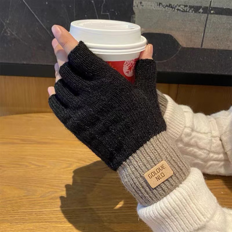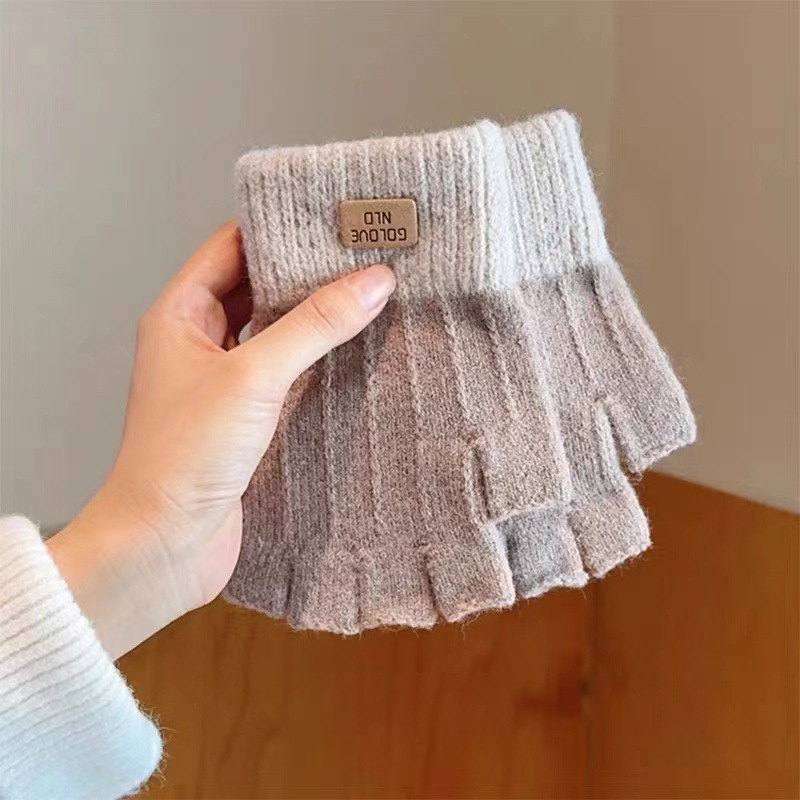 하프 핑거 장갑 여성용 겨울 봉제 따뜻한 글쓰기 학생들을위한 손가락없는 타이핑 반 손가락 노출 긴 장갑 손목 브래지어