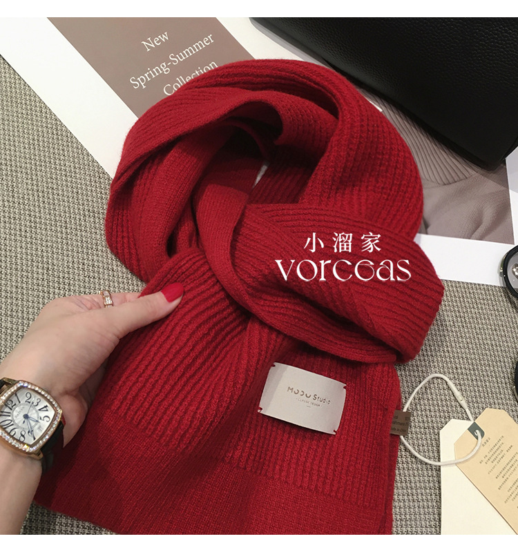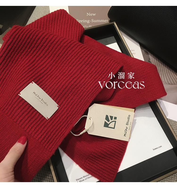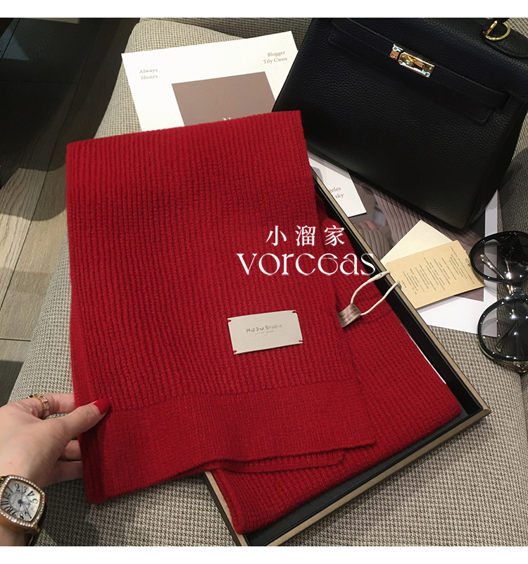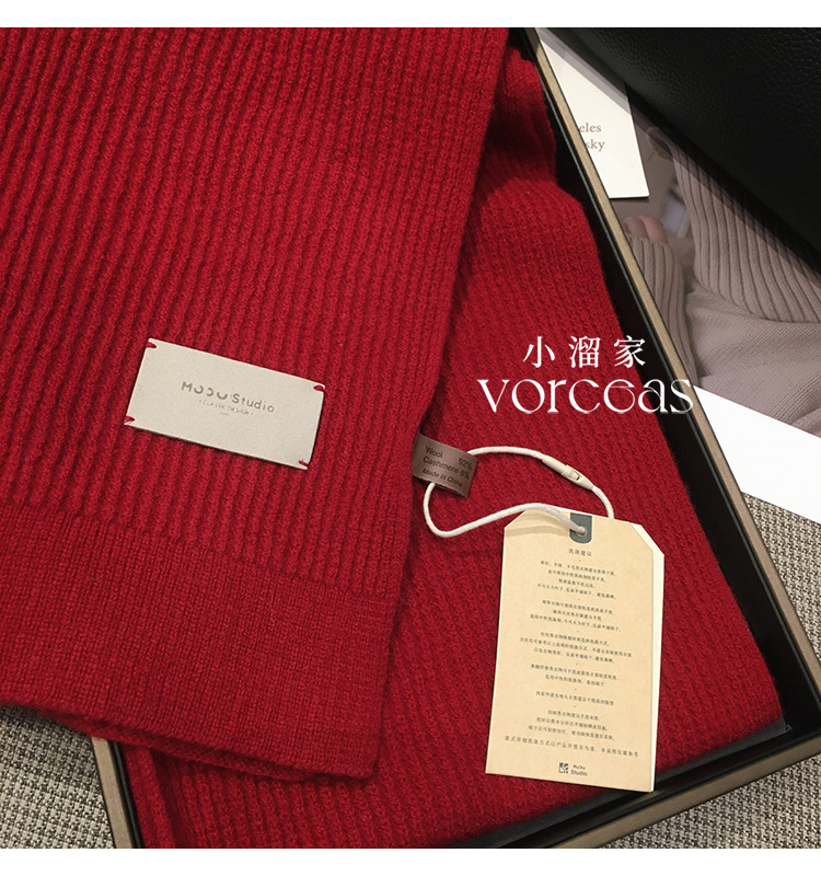 가죽 라벨 크리스마스 레드 호주 퓨어 울 두꺼운 니트 캐시미어 울 스카프 여성의 가을과 겨울 올 매치 따뜻한 목스토어 가기
