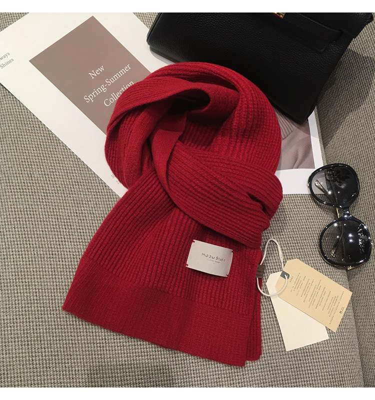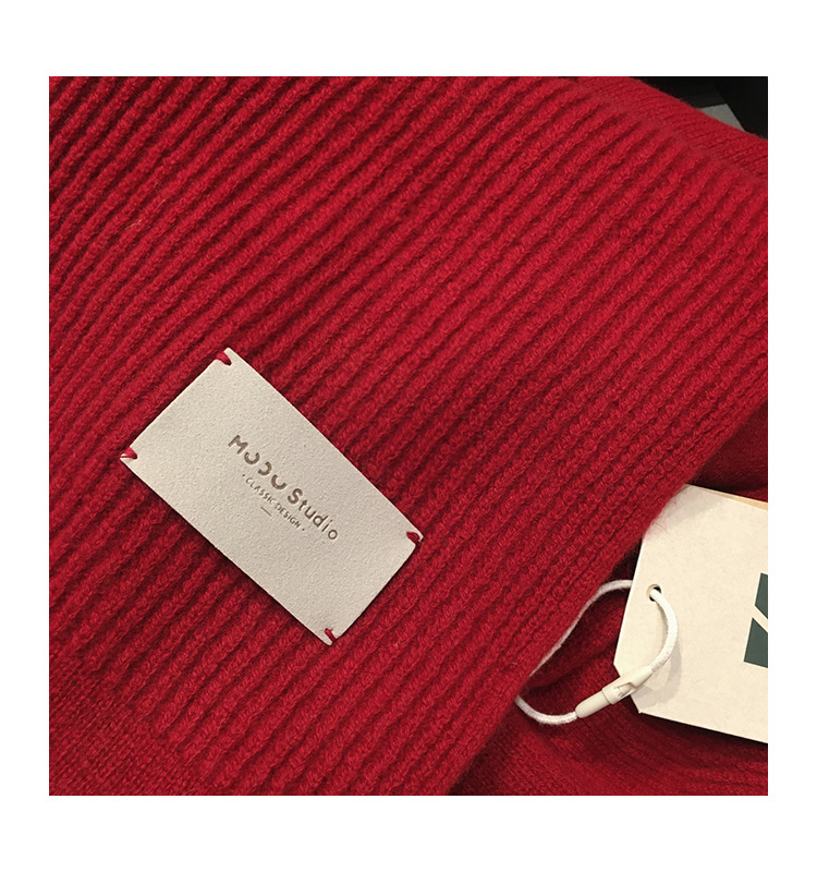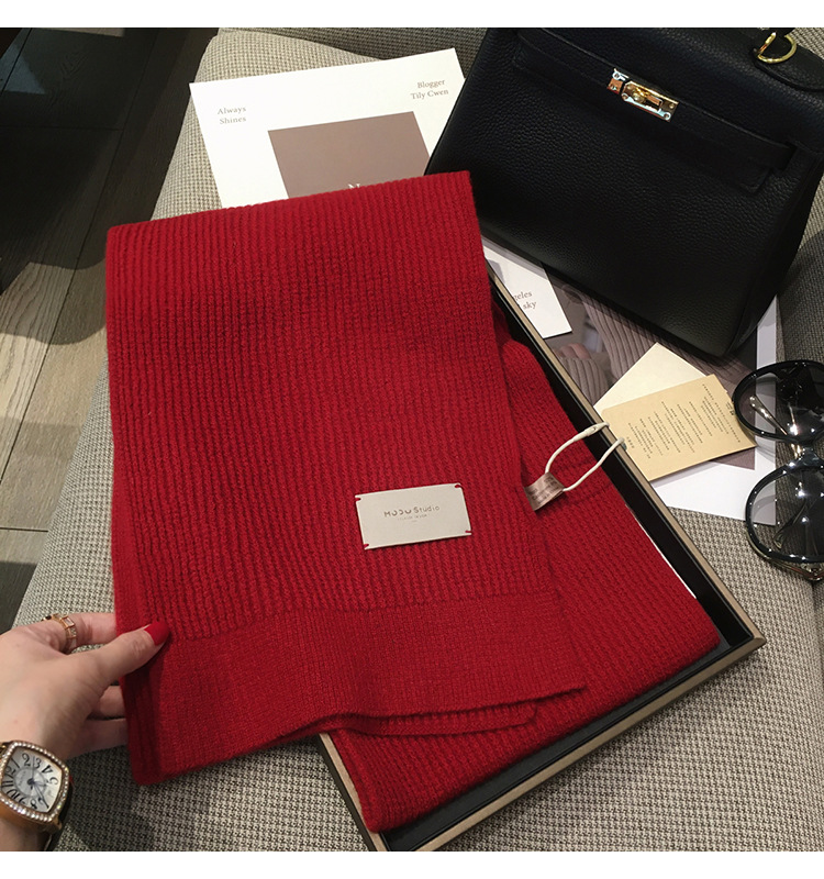 가죽 라벨 크리스마스 레드 호주 퓨어 울 두꺼운 니트 캐시미어 울 스카프 여성의 가을과 겨울 올 매치 따뜻한 목