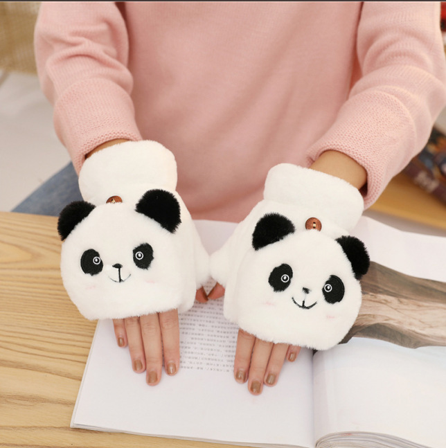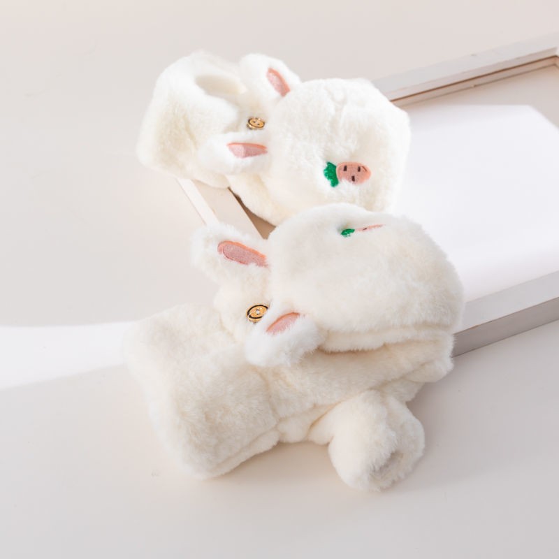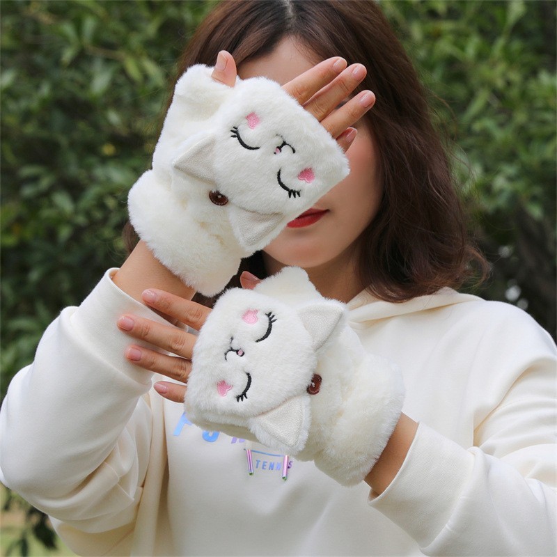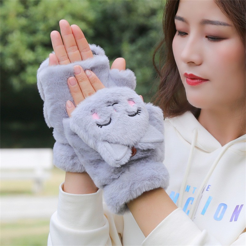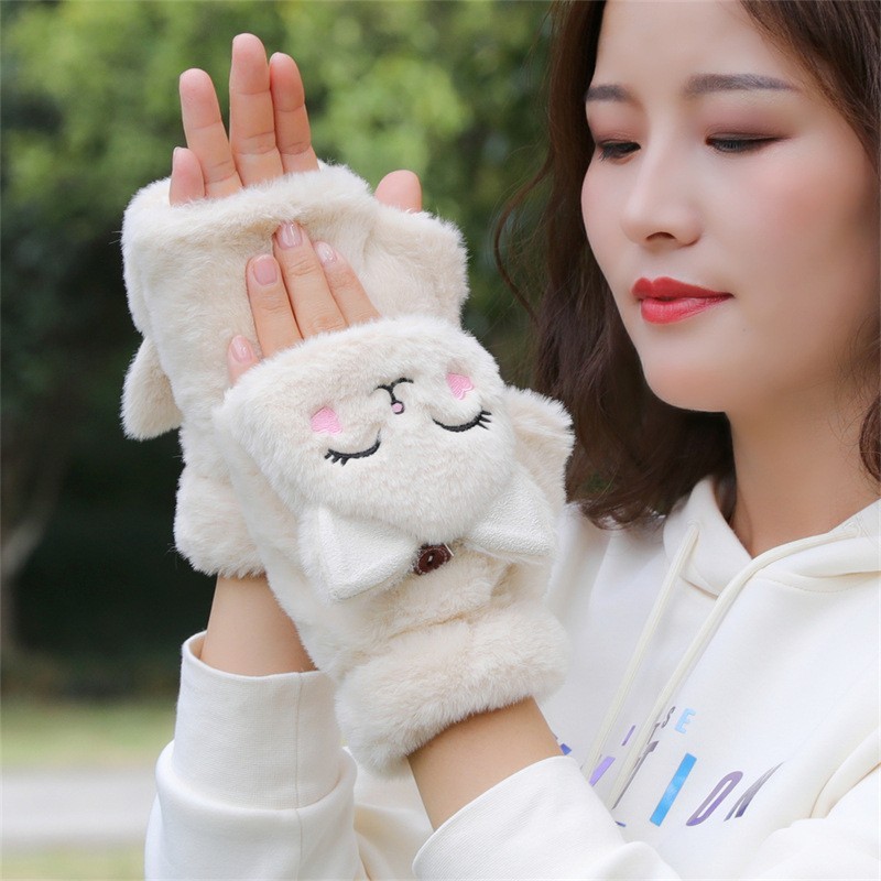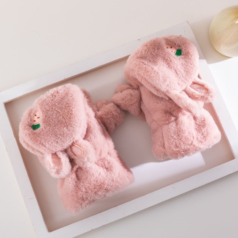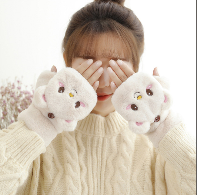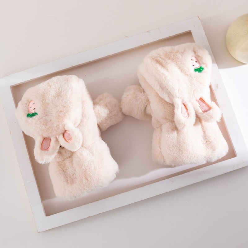 겨울용 두꺼운 플러시 보온 학생 장갑 귀여운 토끼 플립 커버 만화 자수 스타일 방한 한국 스타일 보온스토어 가기