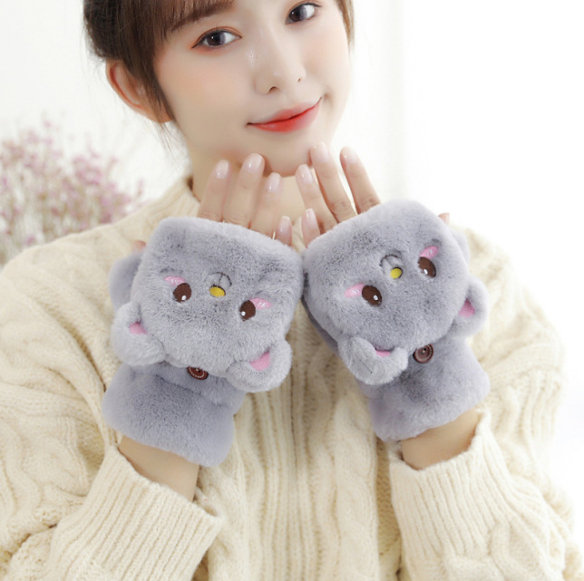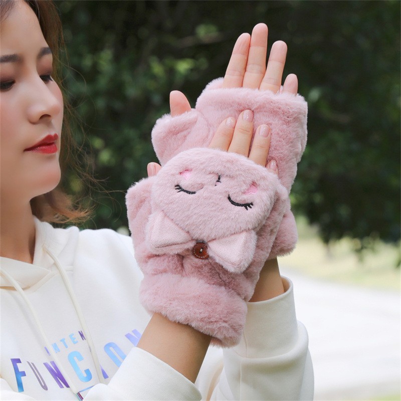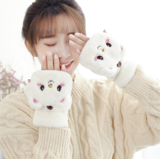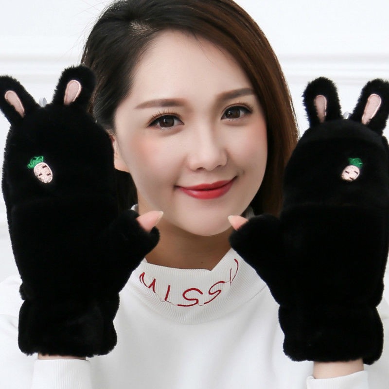 겨울용 두꺼운 플러시 보온 학생 장갑 귀여운 토끼 플립 커버 만화 자수 스타일 방한 한국 스타일 보온