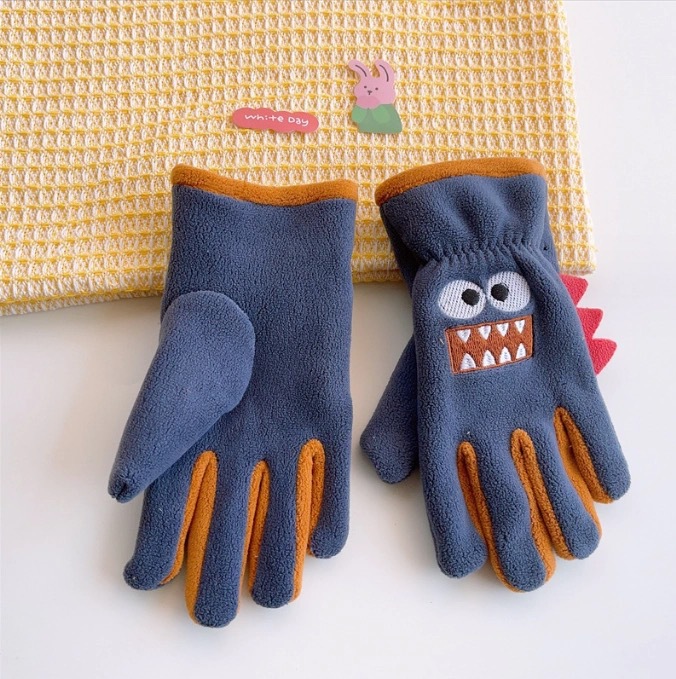 7-12세 어린이 장갑은 겨울에 벨벳으로 덮여 따뜻하고 방풍 기능이 있으며 귀여운 만화 소년 초등학생 야외용 동결 방지 및 방한 기능이 있습니다.