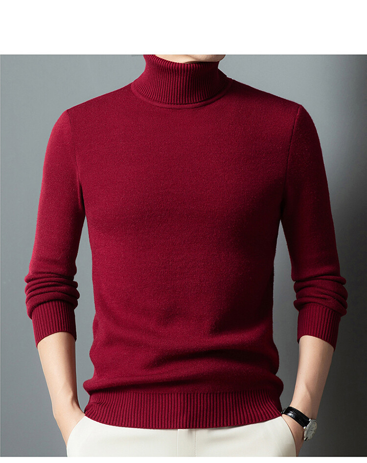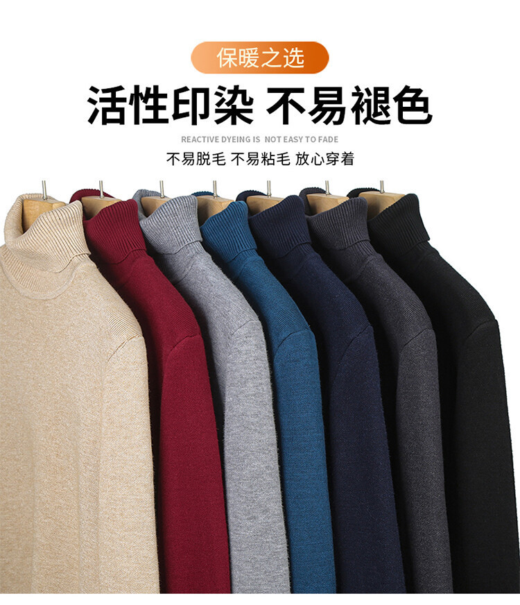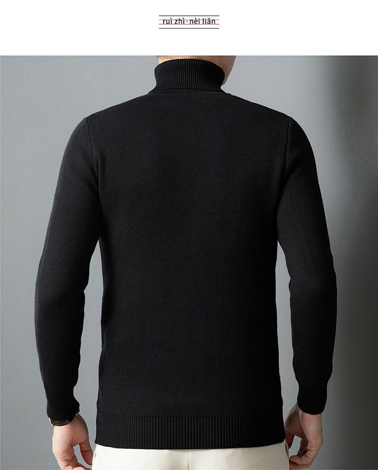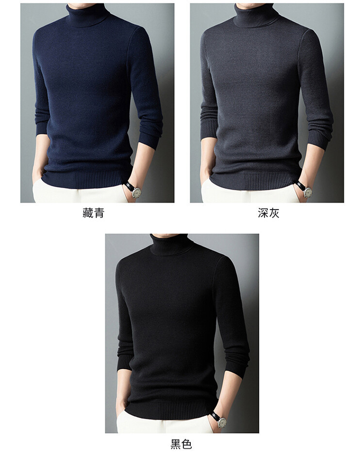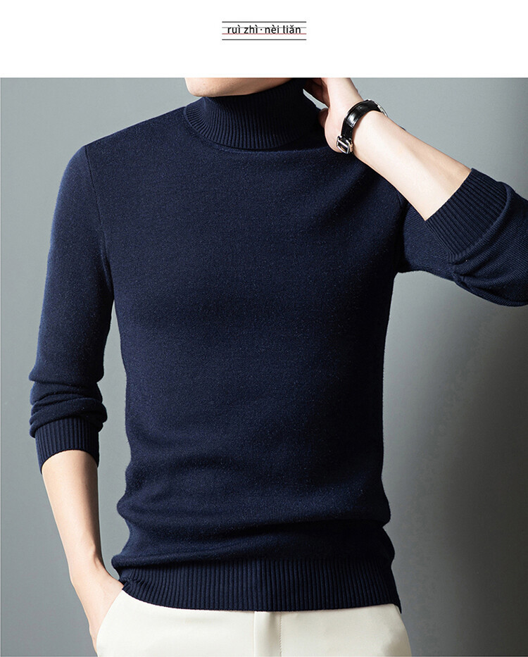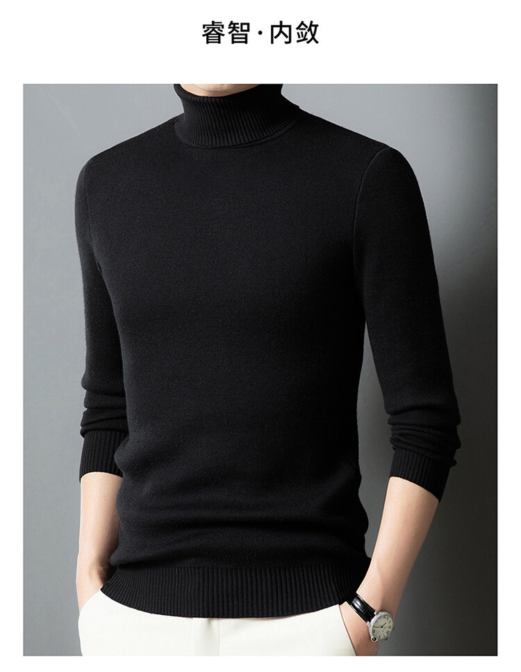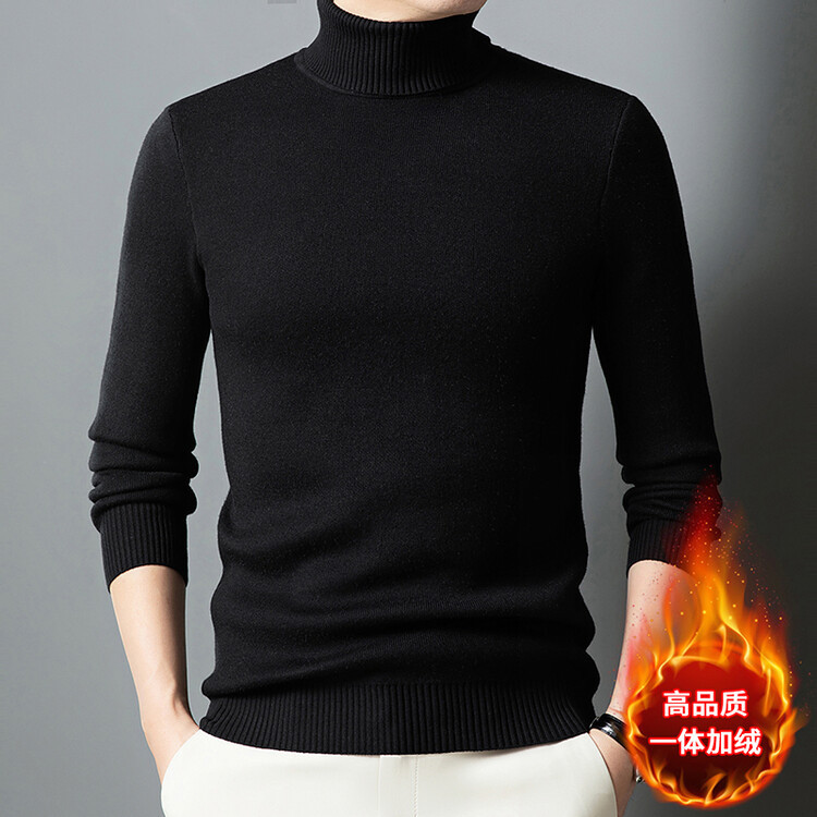 겨울 남자 스웨터 기모 두꺼운 원피스 벨벳 니트 스웨터 솔리드 컬러 하이 넥 하이 탄성 슬림 핏 따뜻한 스웨터