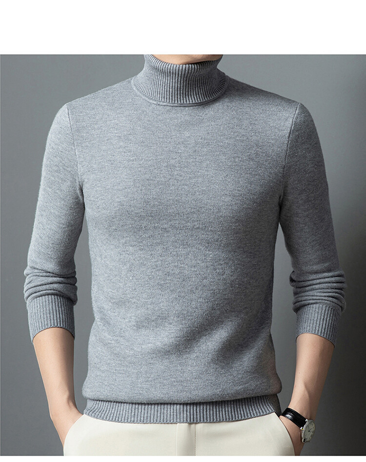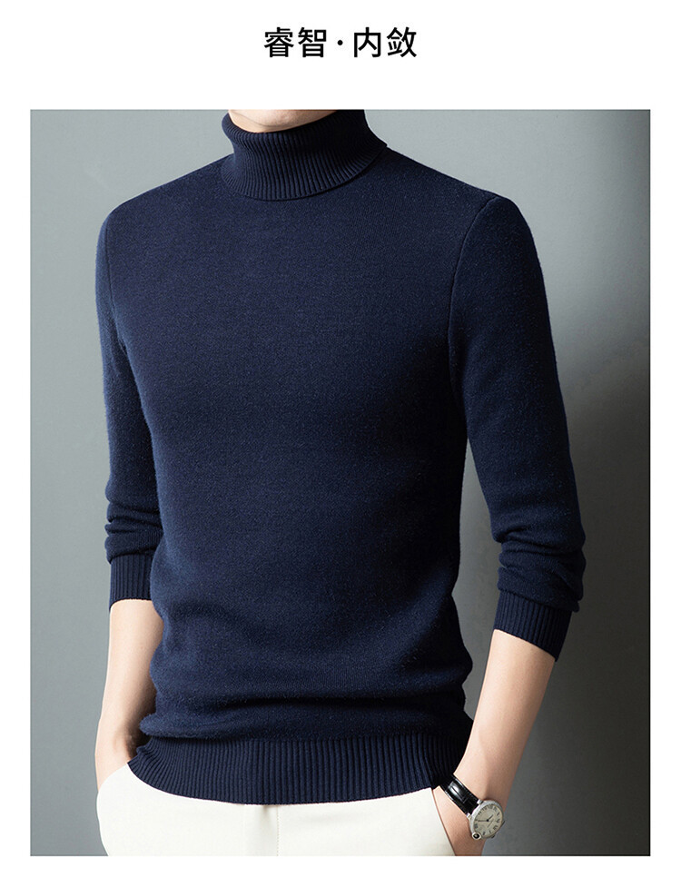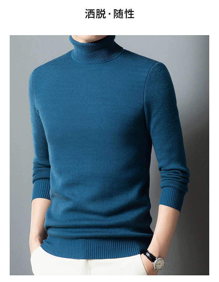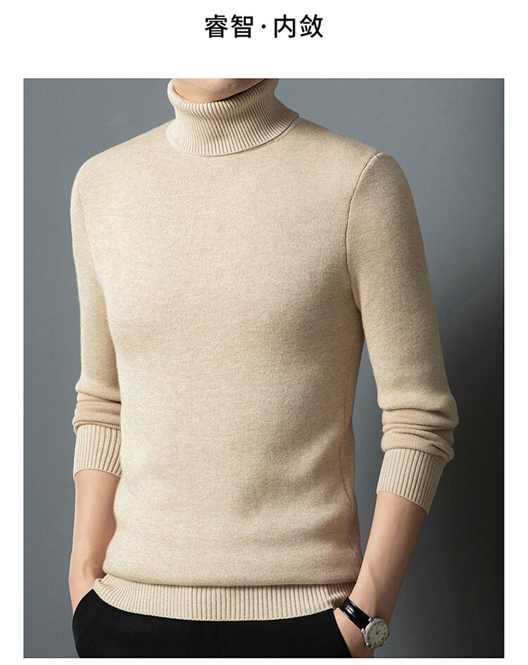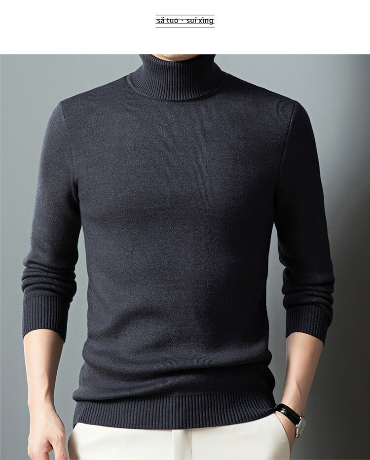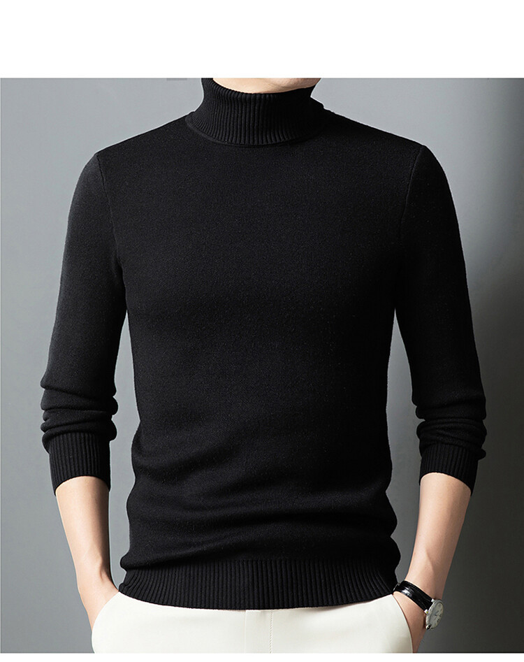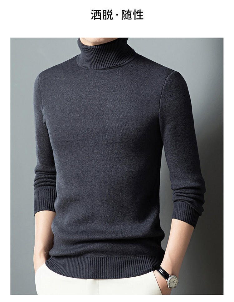 겨울 남자 스웨터 기모 두꺼운 원피스 벨벳 니트 스웨터 솔리드 컬러 하이 넥 하이 탄성 슬림 핏 따뜻한 스웨터