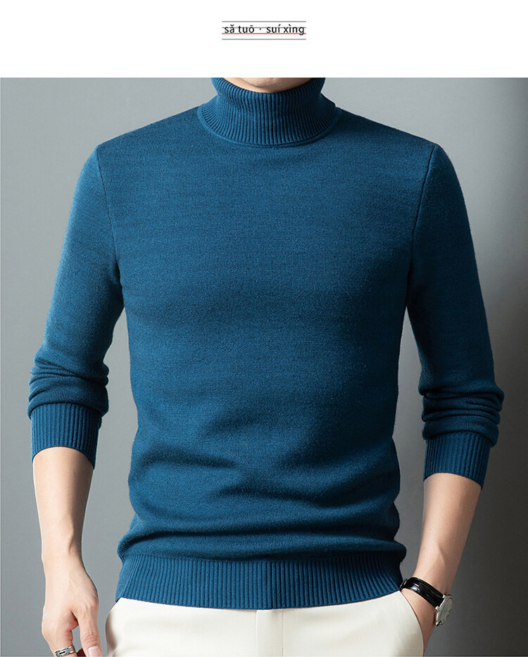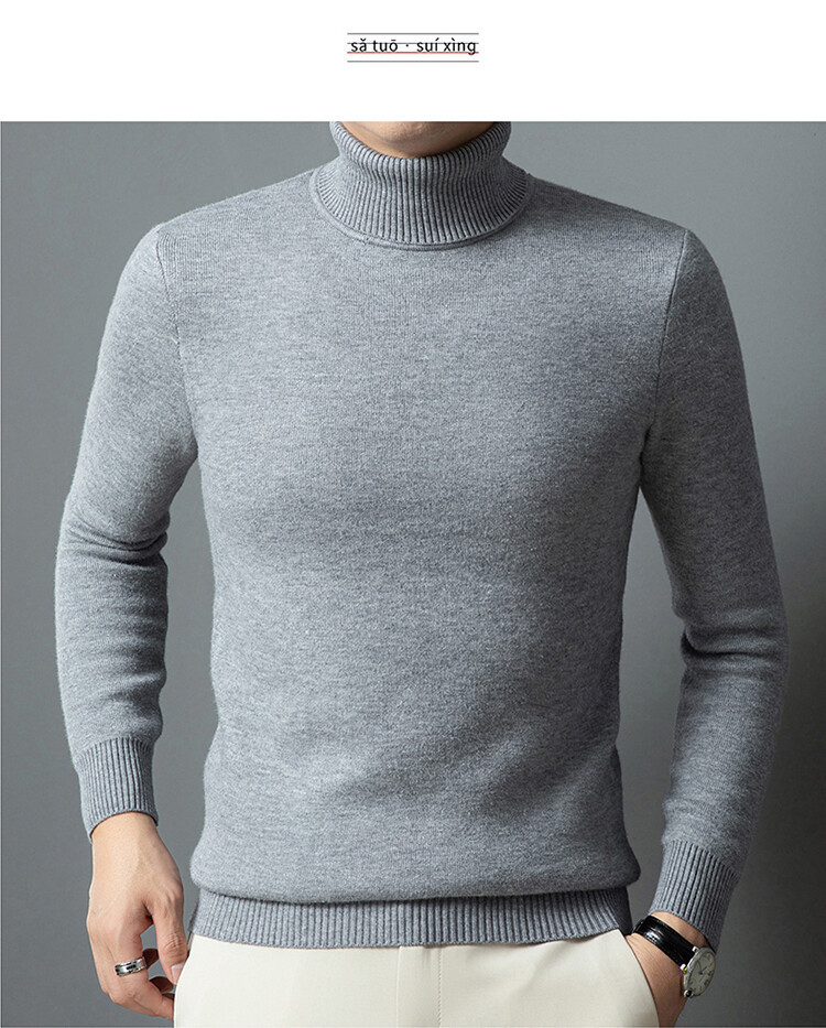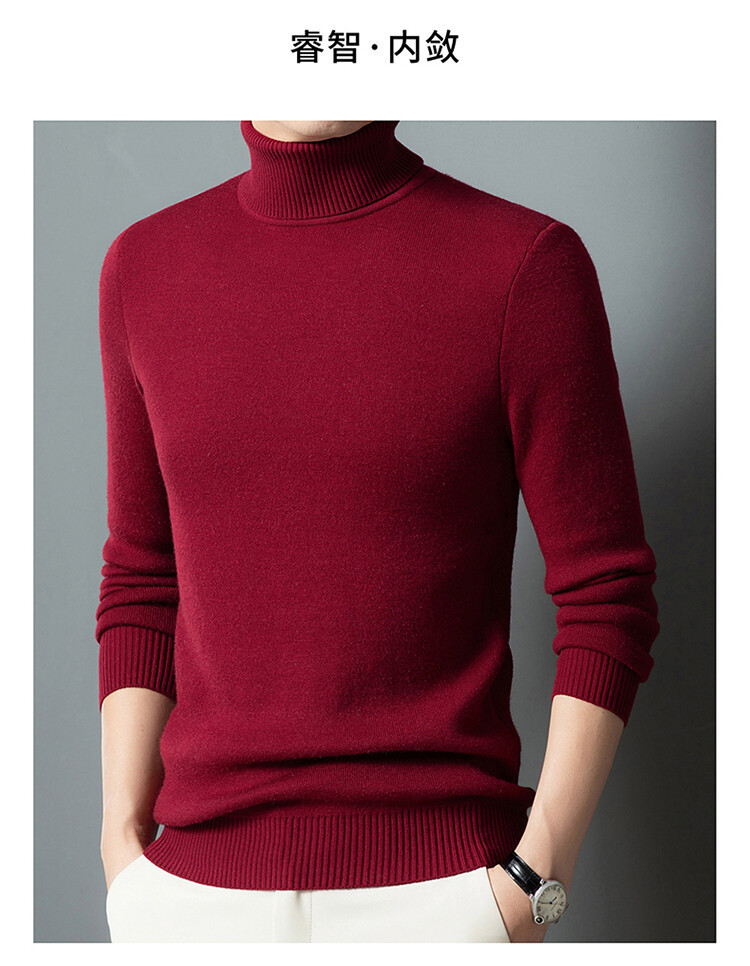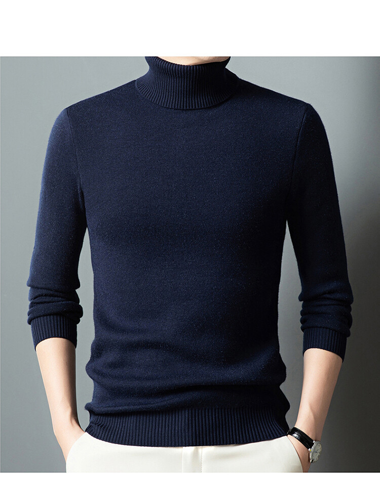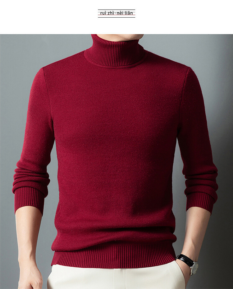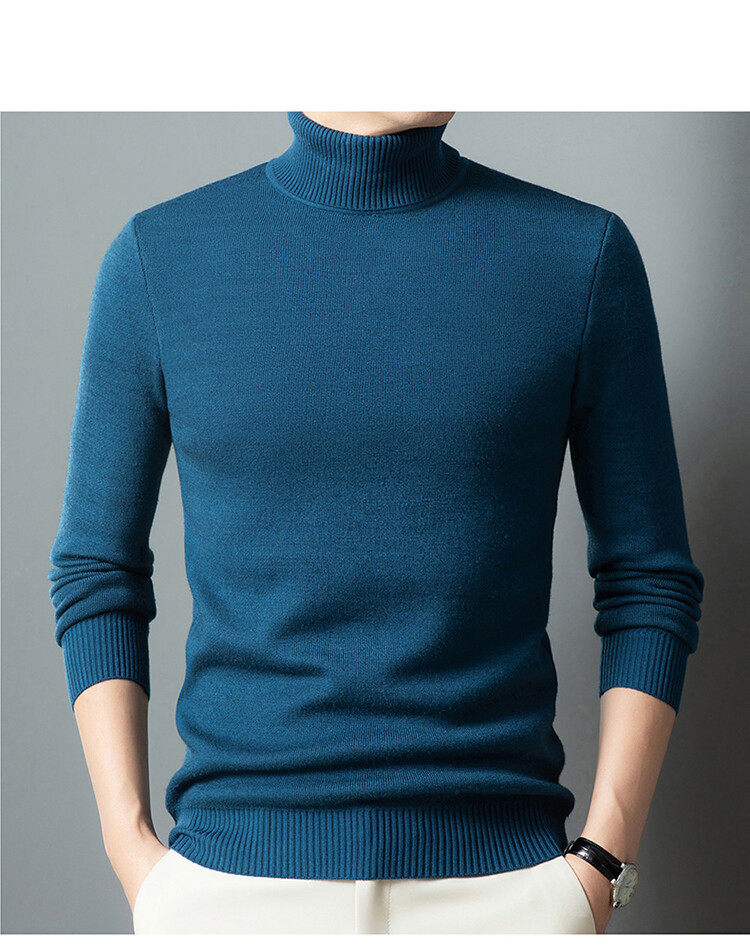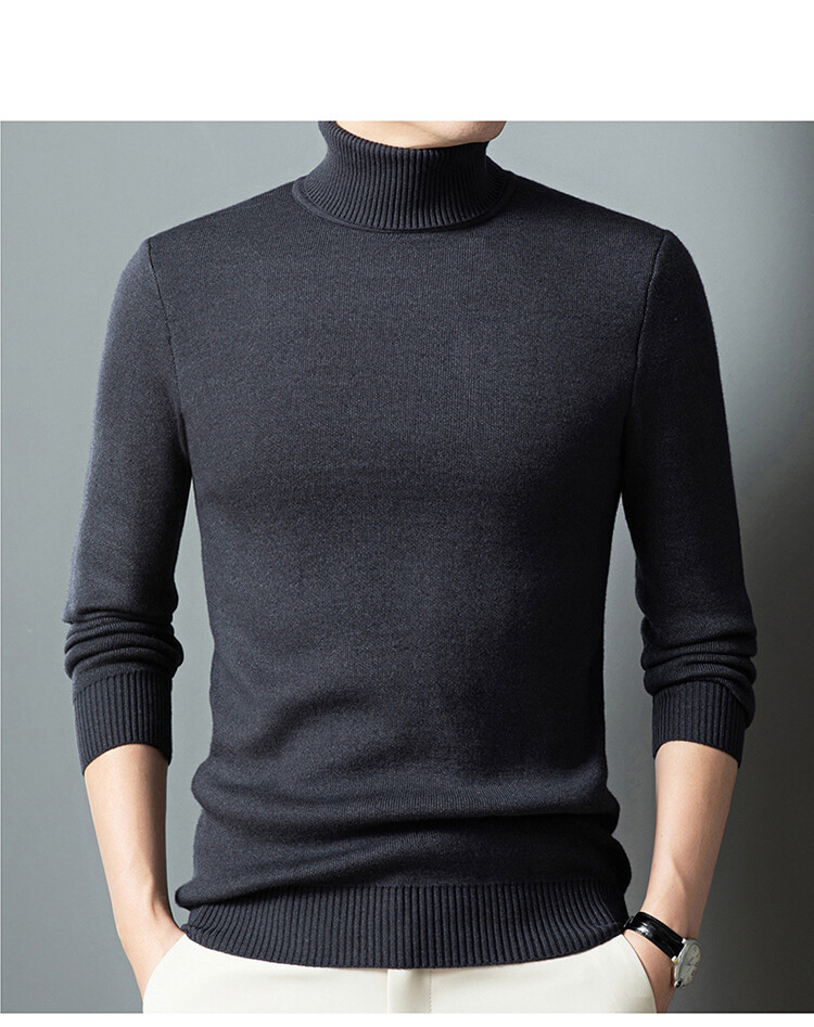 겨울 남자 스웨터 기모 두꺼운 원피스 벨벳 니트 스웨터 솔리드 컬러 하이 넥 하이 탄성 슬림 핏 따뜻한 스웨터