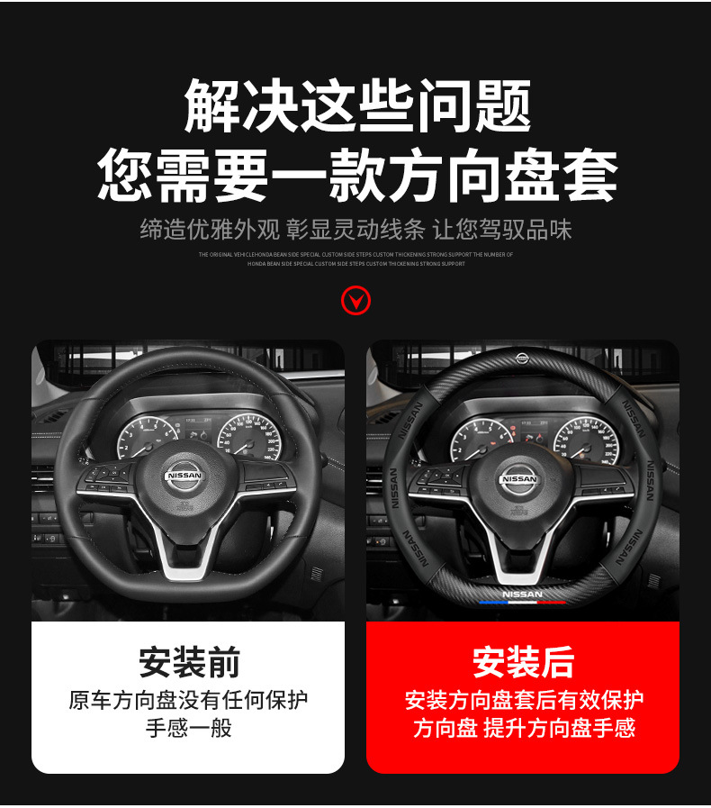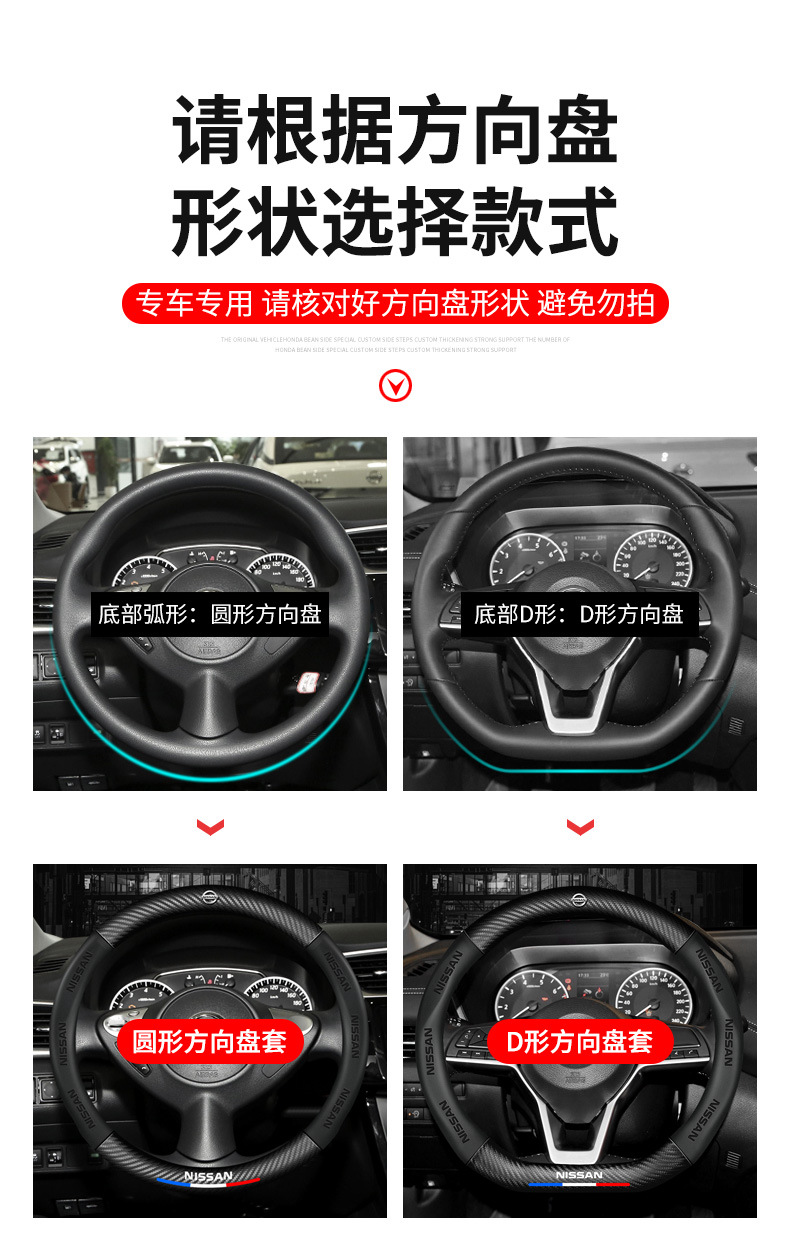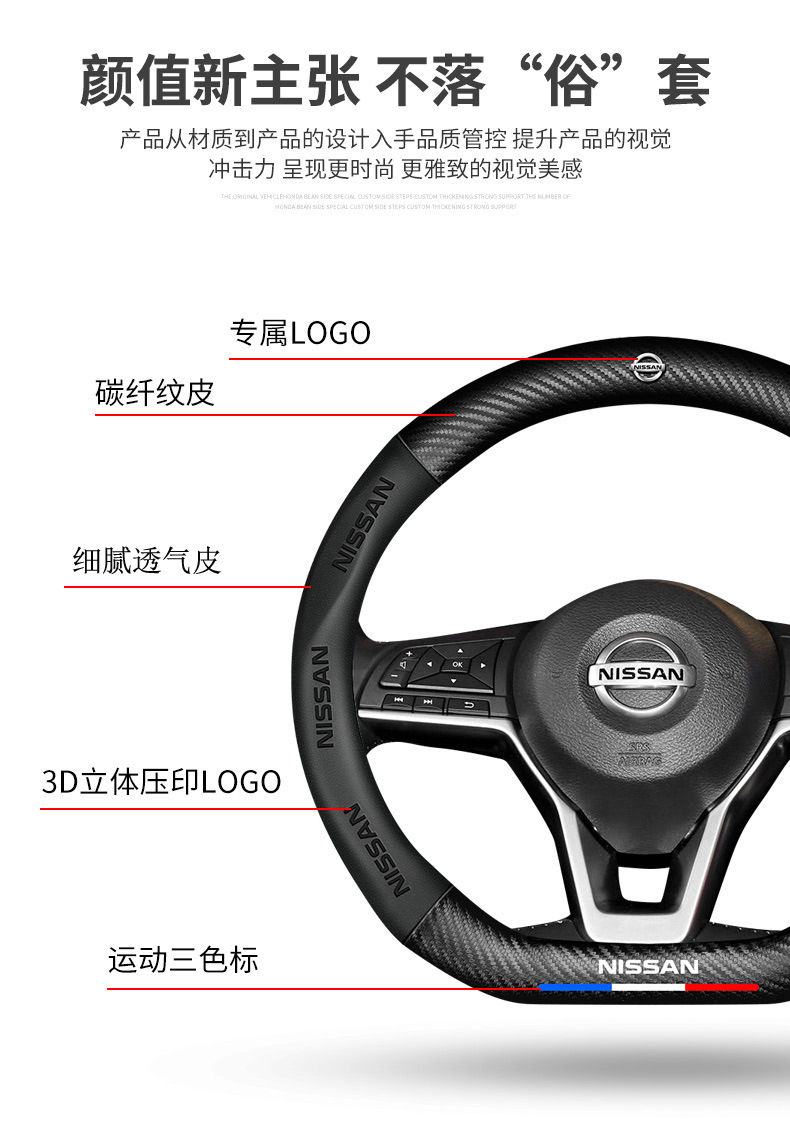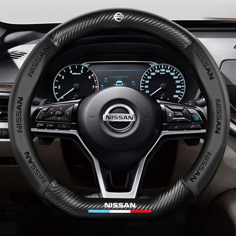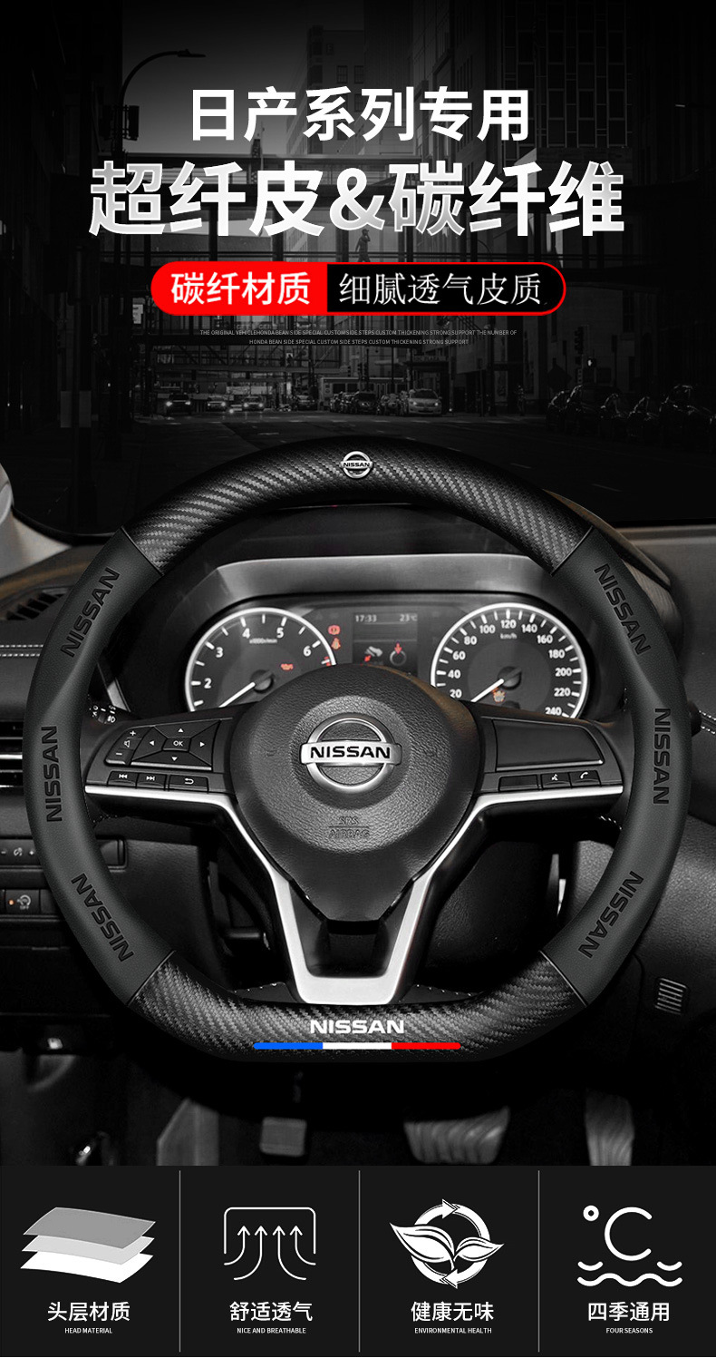 스티어링 휠 커버 초박형 Sylphy Teana Bluebird Qijun Tiida 탄소 섬유 미끄럼 방지 땀 흡수성 4 시즌 유니버설스토어 가기