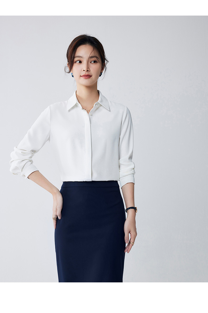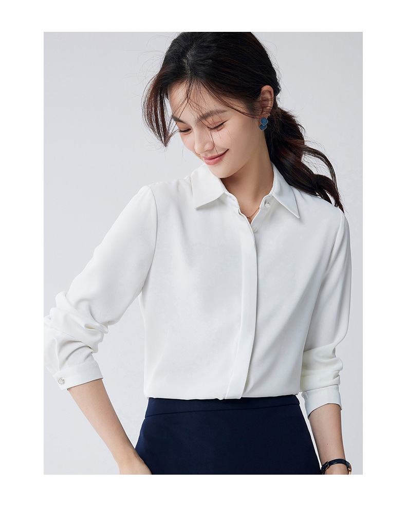 쉬폰 셔츠 긴팔 여성용 2025 봄 신상품 반투명 방지 디자인 패셔너블한 상의 전문적이고 우아한 드레이프 셔츠
