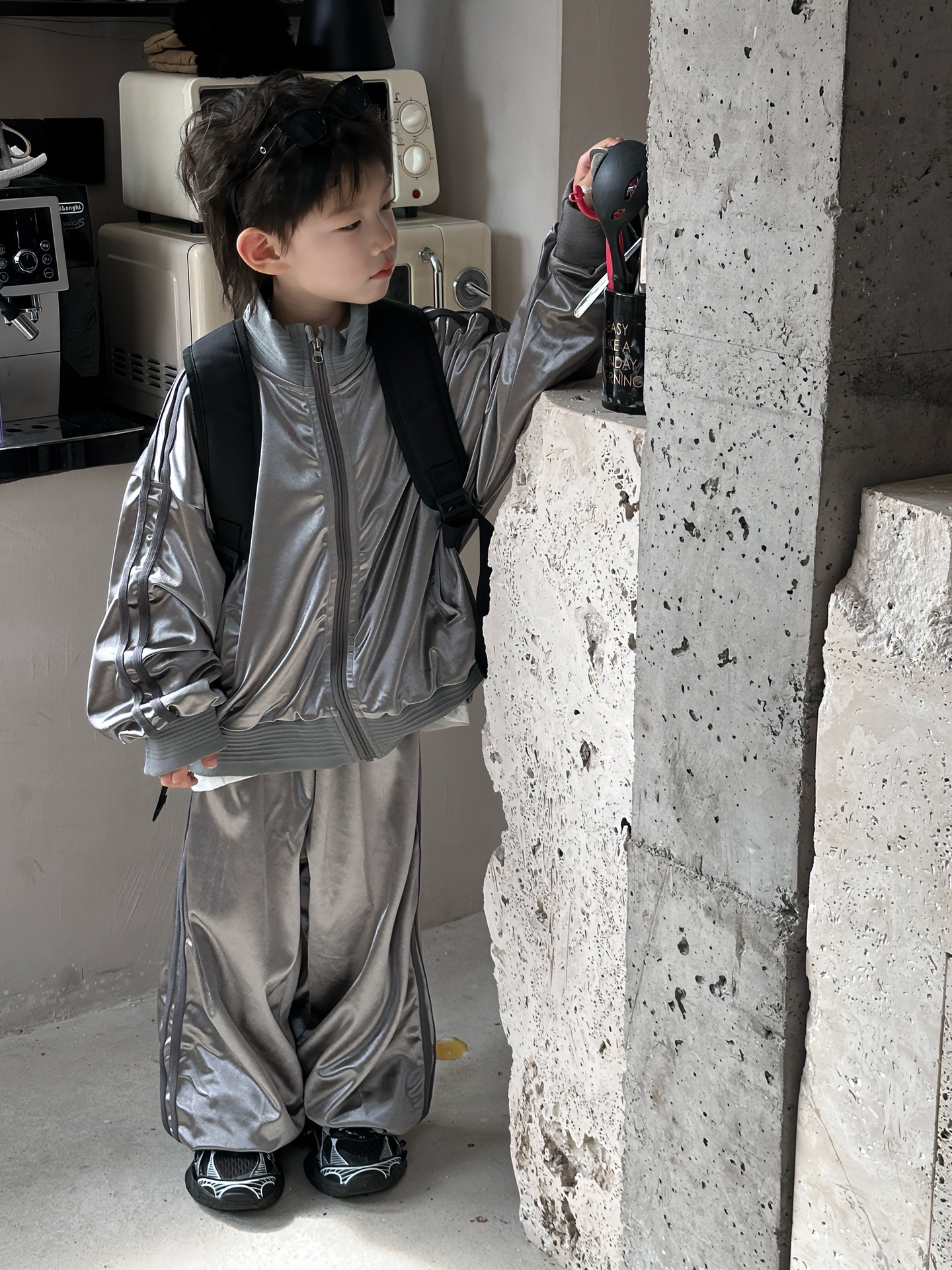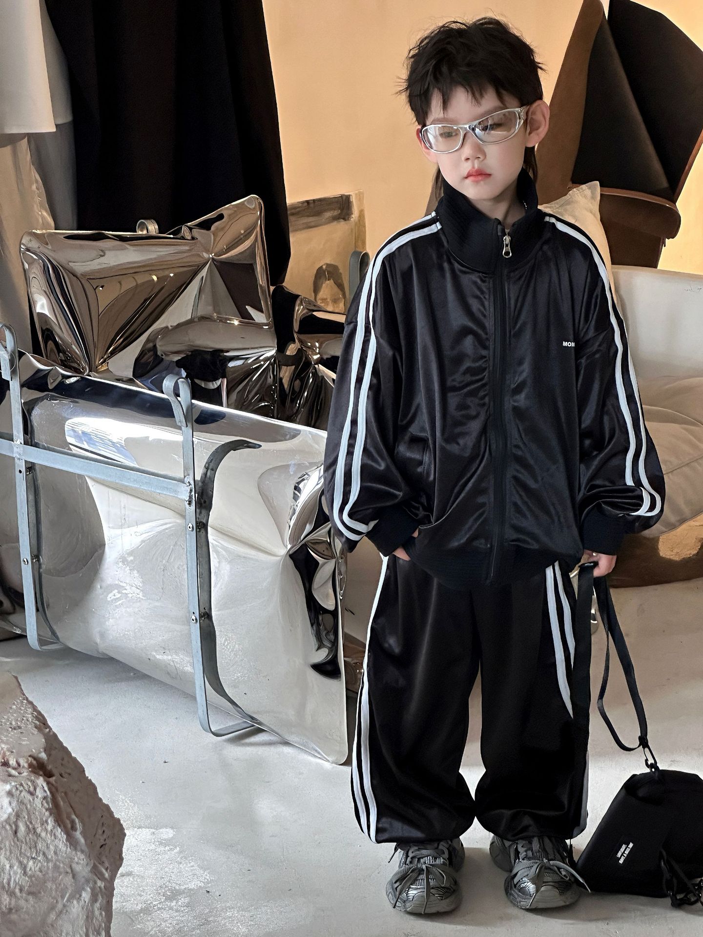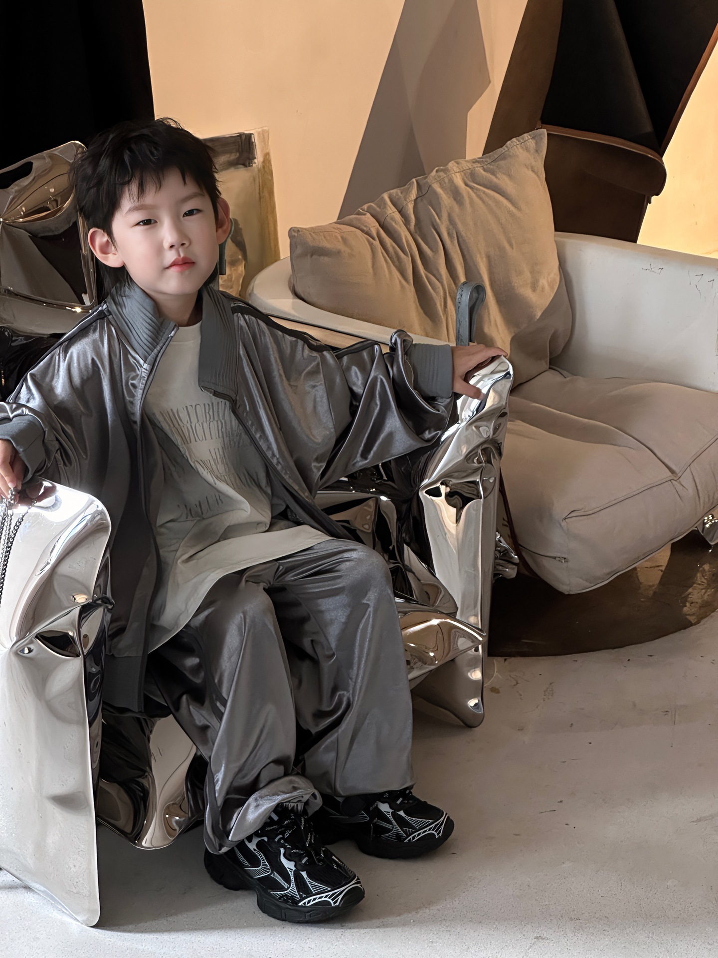泰如2024秋季新款韩版男童时尚百搭高级设计感儿童套装外套长裤潮