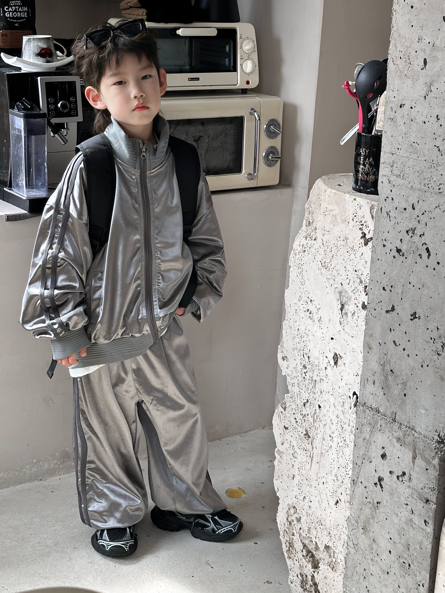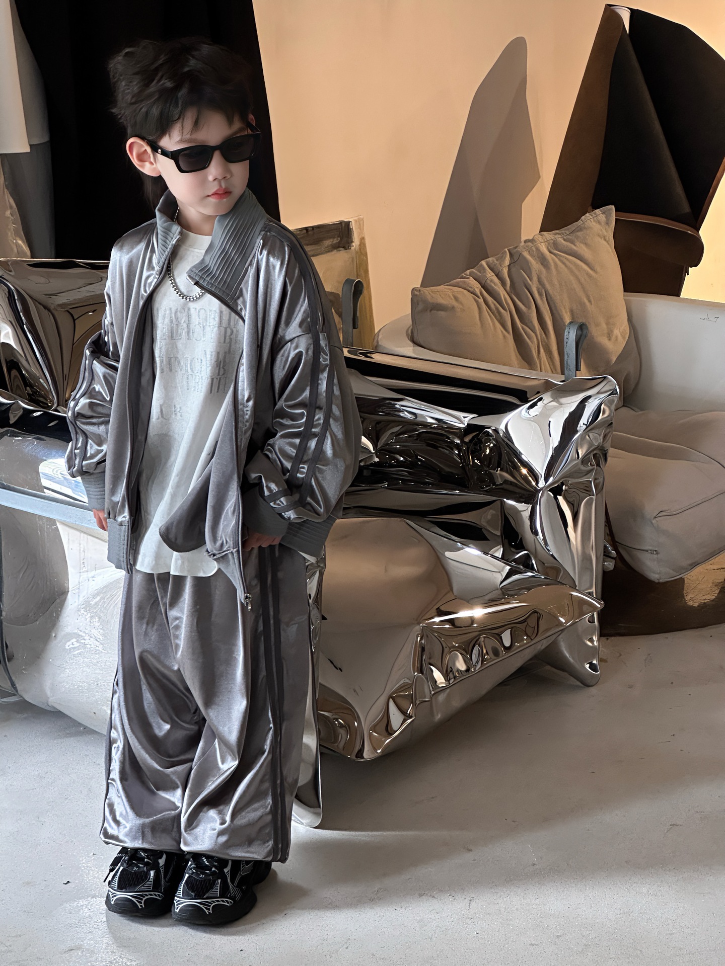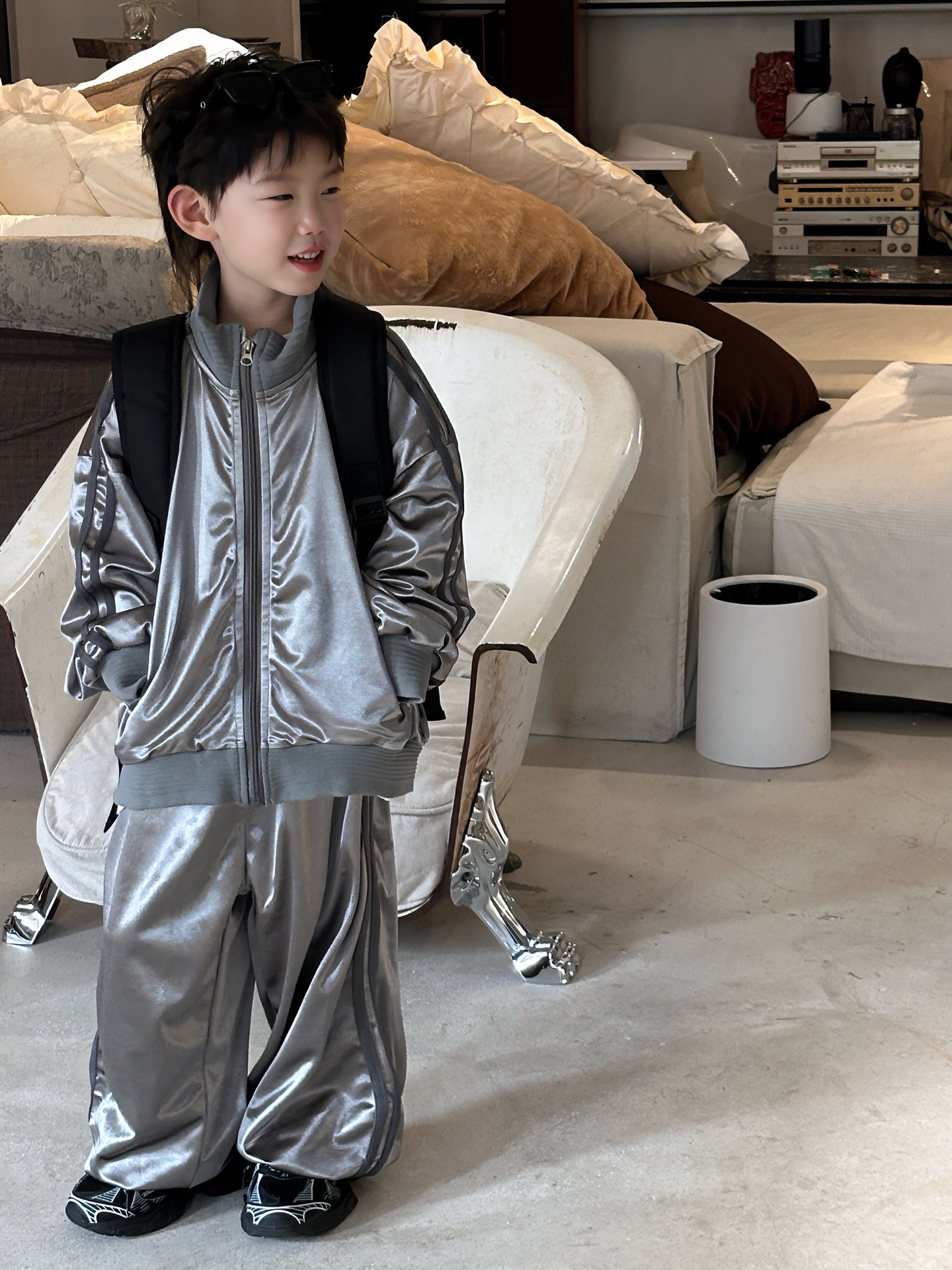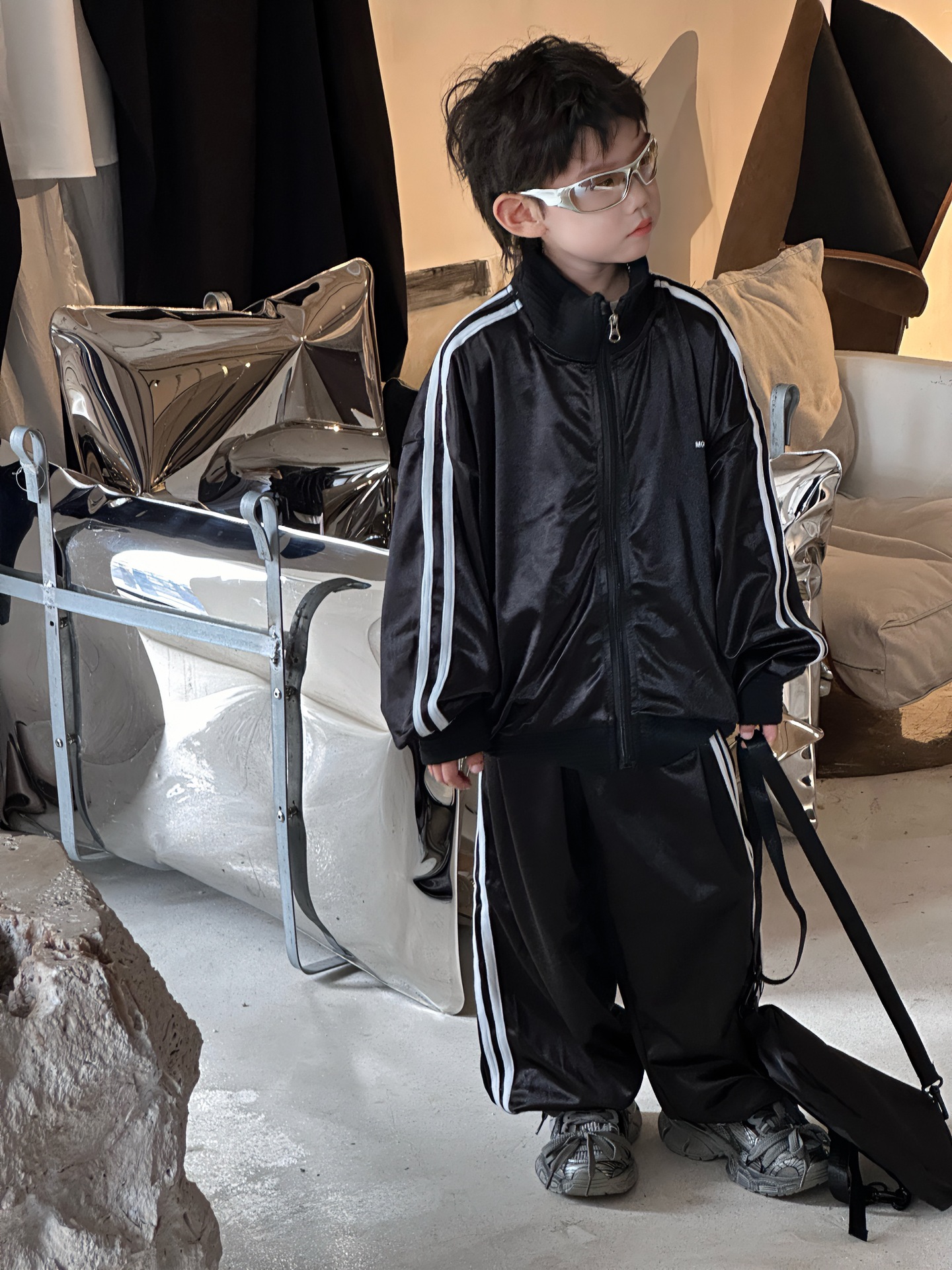泰如2024秋季新款韩版男童时尚百搭高级设计感儿童套装外套长裤潮
