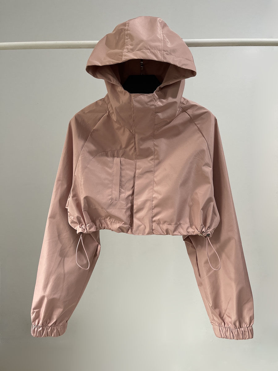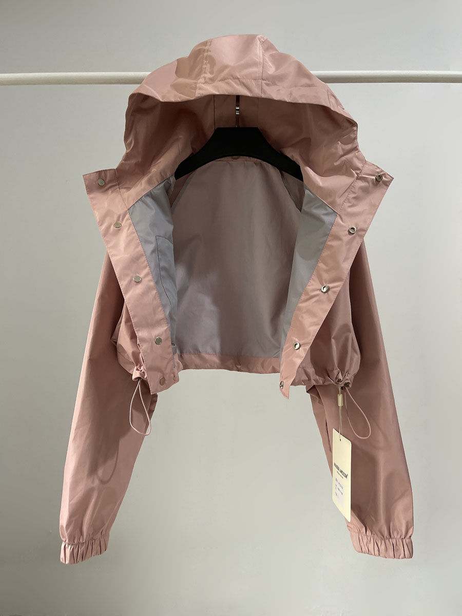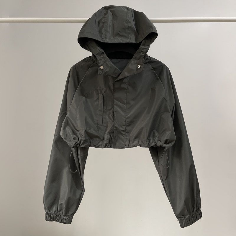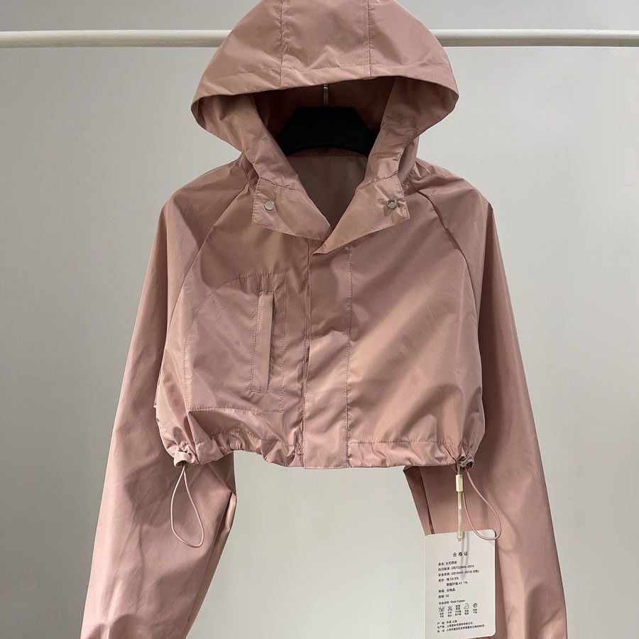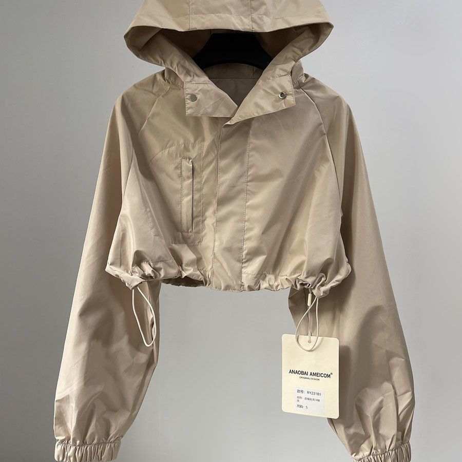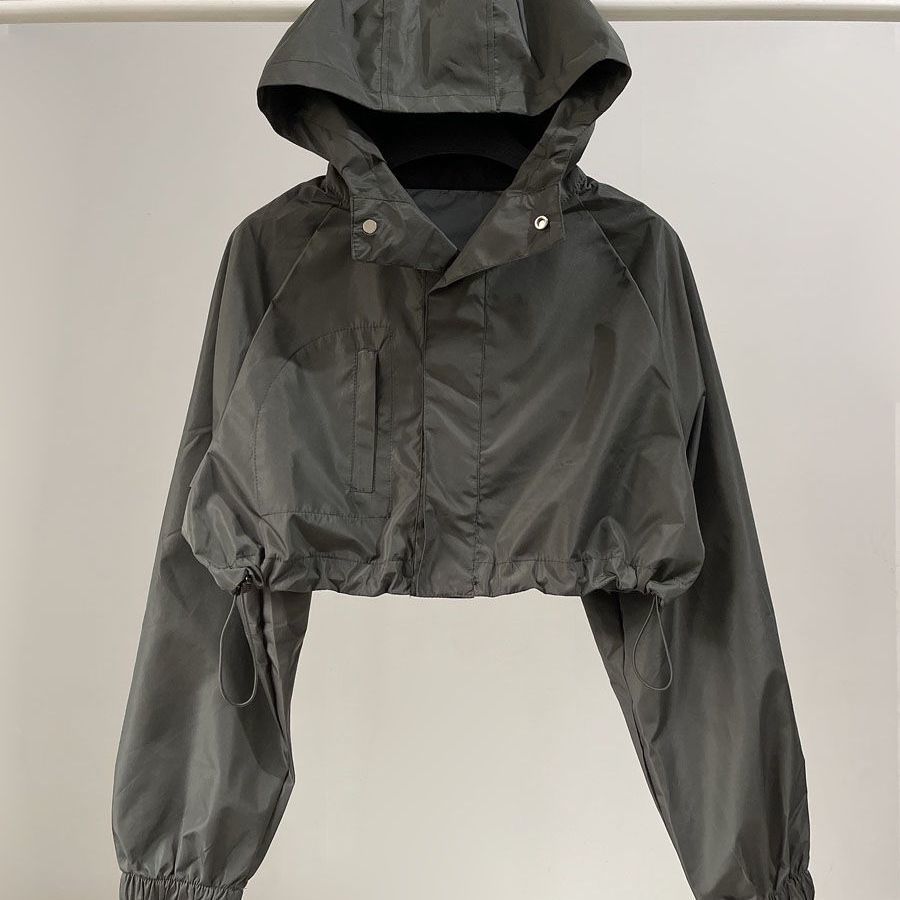 유럽과 미국의 스파이스 걸스 야외 짧은 러시 옷 여성 거리 가을 작업복 캐주얼 루즈 후드 긴팔 얇은 짧은 코트스토어 가기