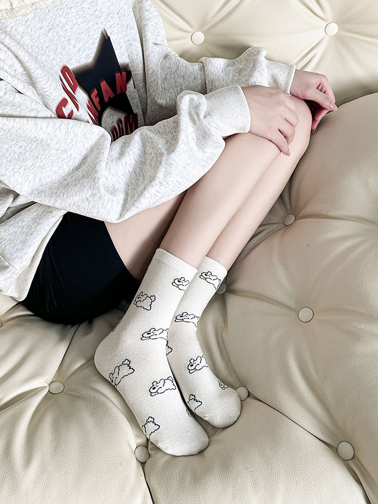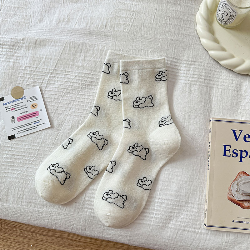 양말 여성 가을과 겨울 귀여운 강아지 튜브 흰색 양말 일본 귀여운 만화 양말 학술 스타일 면화 스타킹 도매