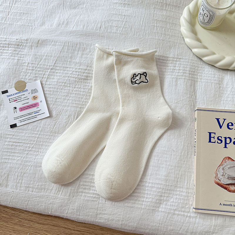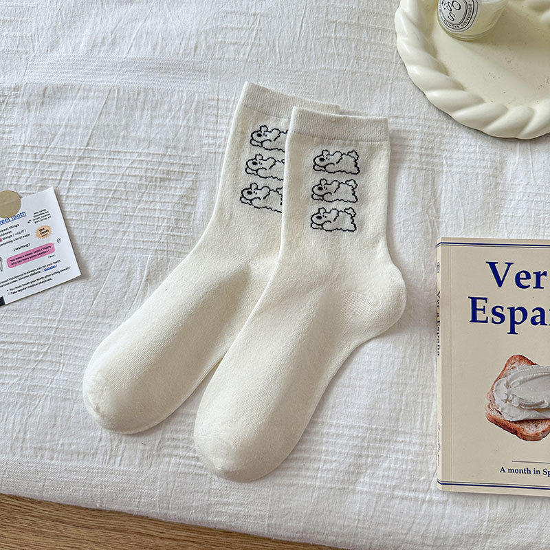 양말 여성 가을과 겨울 귀여운 강아지 튜브 흰색 양말 일본 귀여운 만화 양말 학술 스타일 면화 스타킹 도매스토어 가기