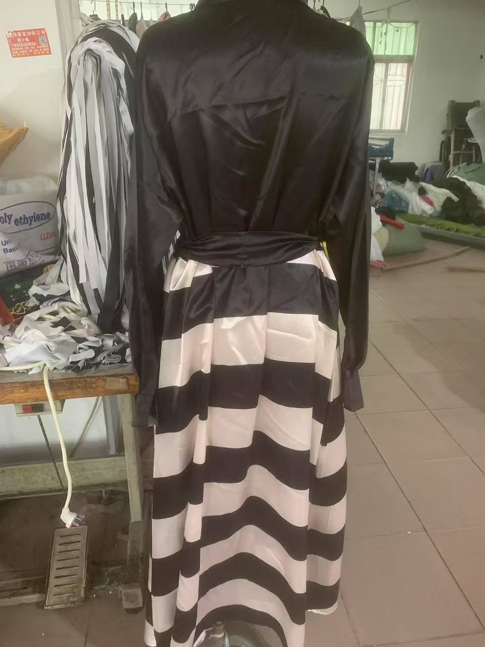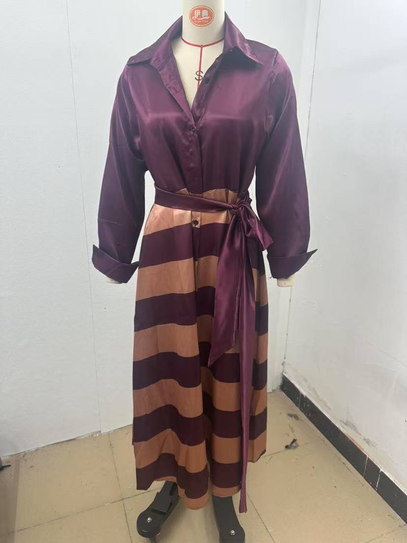 2024 유럽과 미국 국경 대외 무역 아마존 가을 여성의 긴 우아한 레이스 업 인쇄 스티칭 원피스 원피스