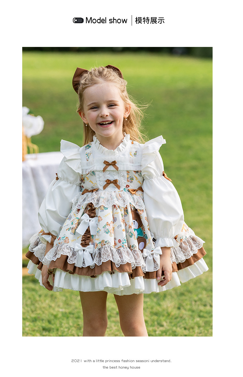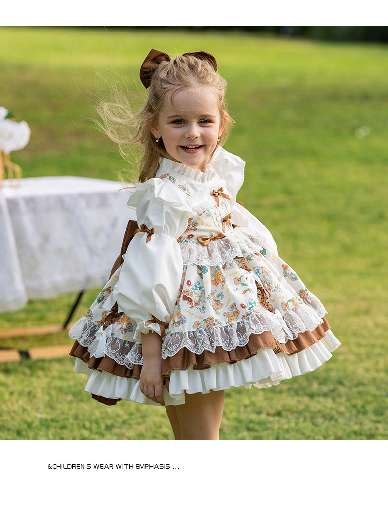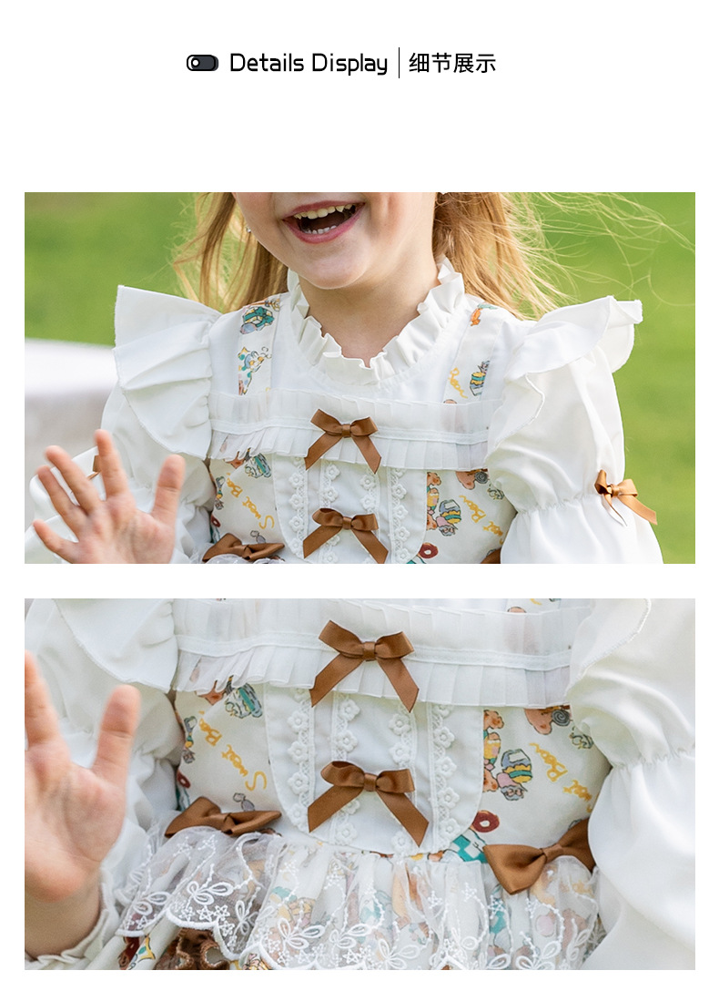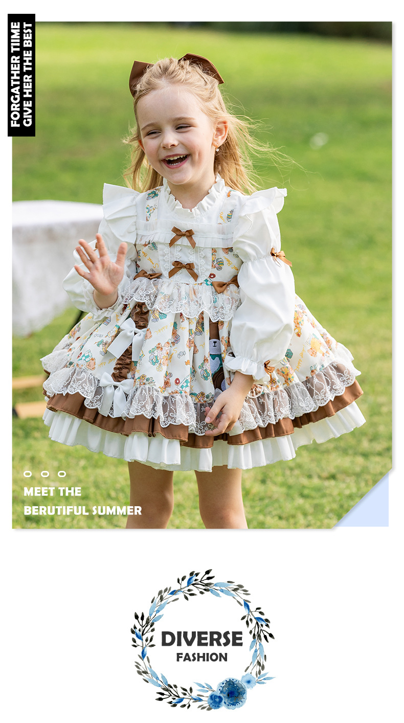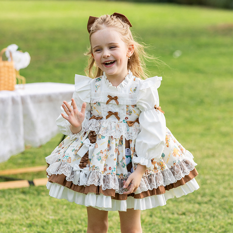 브랜치 버드 아동복 2024 봄과 가을 새로운 작은 소녀 코튼 케이크 스커트 귀여운 만화 공주 스커트 여자 원피스