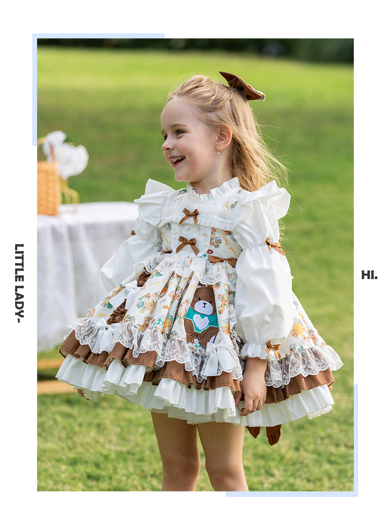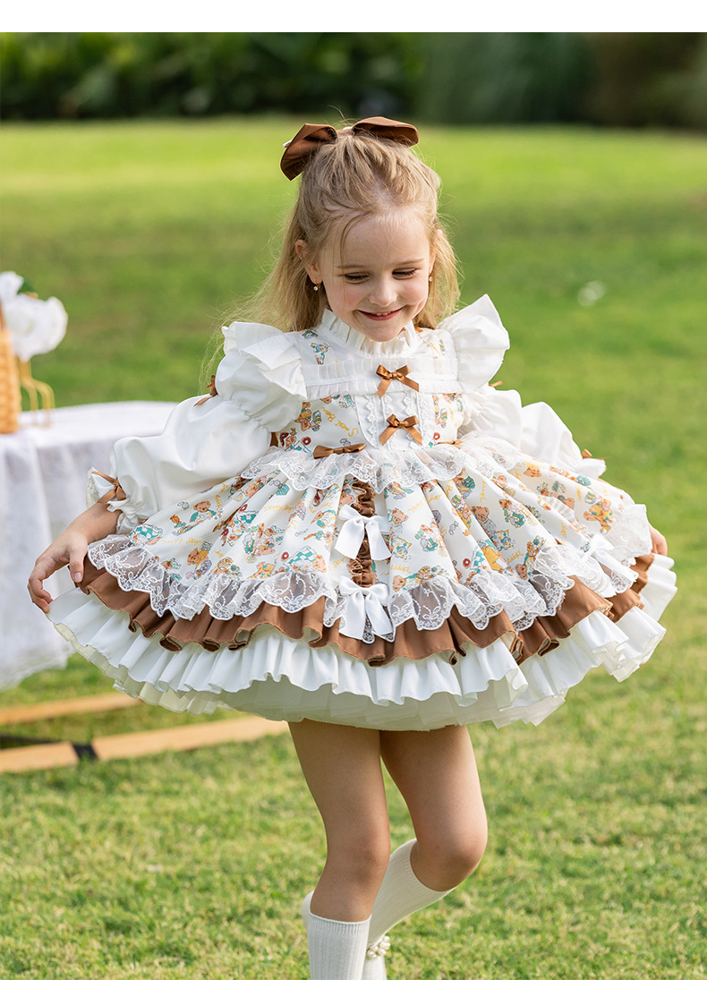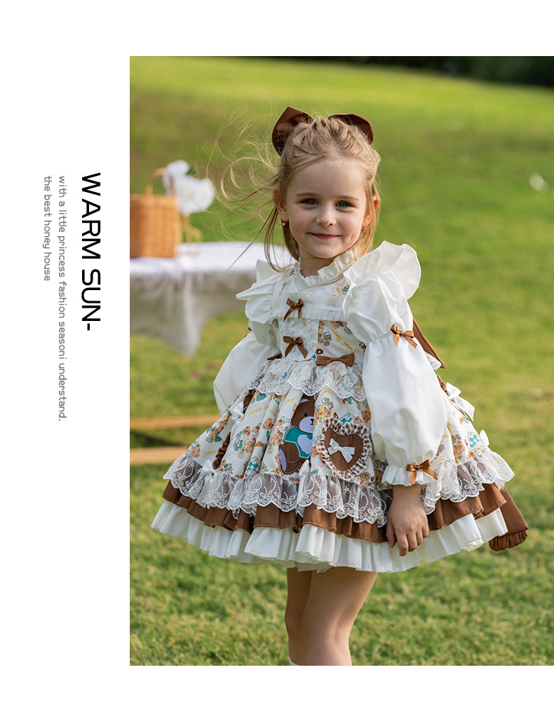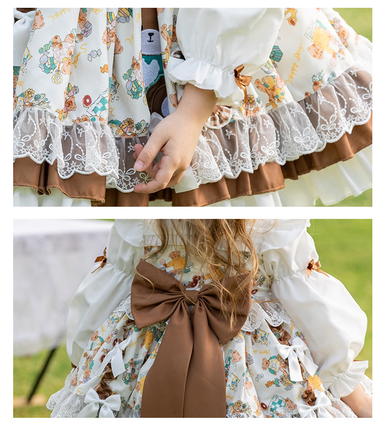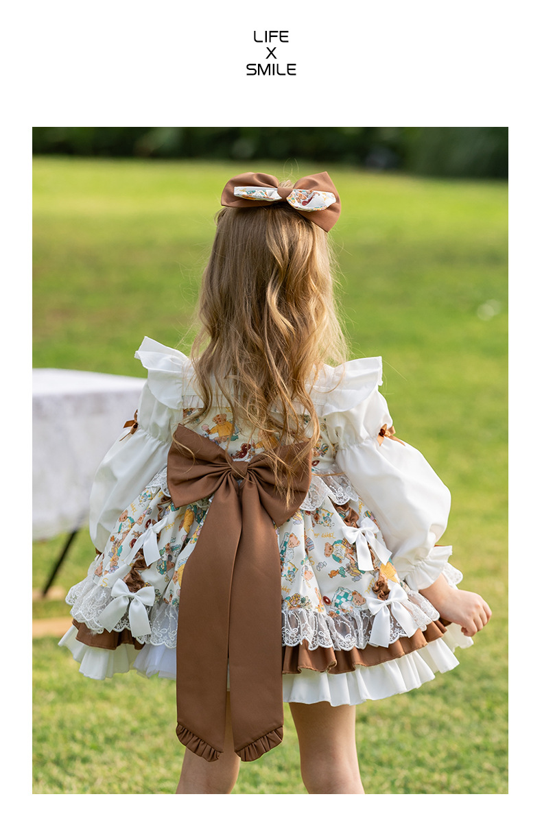 브랜치 버드 아동복 2024 봄과 가을 새로운 작은 소녀 코튼 케이크 스커트 귀여운 만화 공주 스커트 여자 원피스