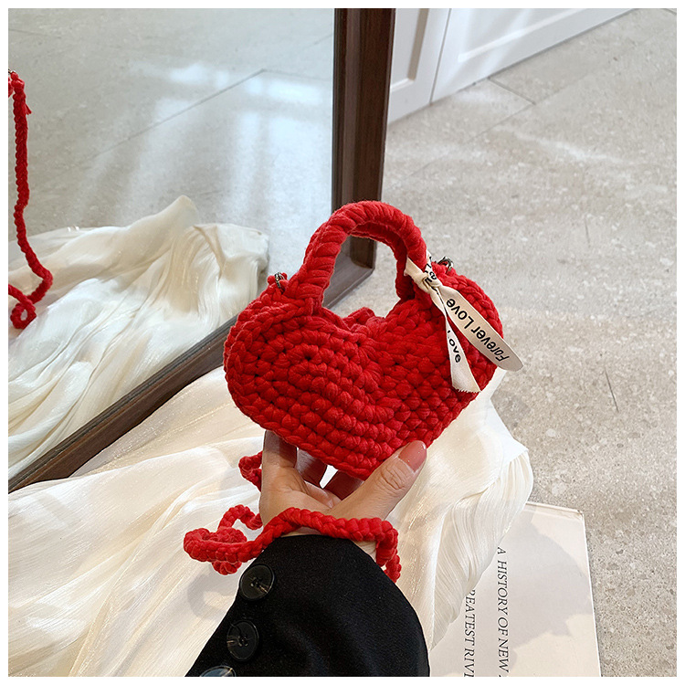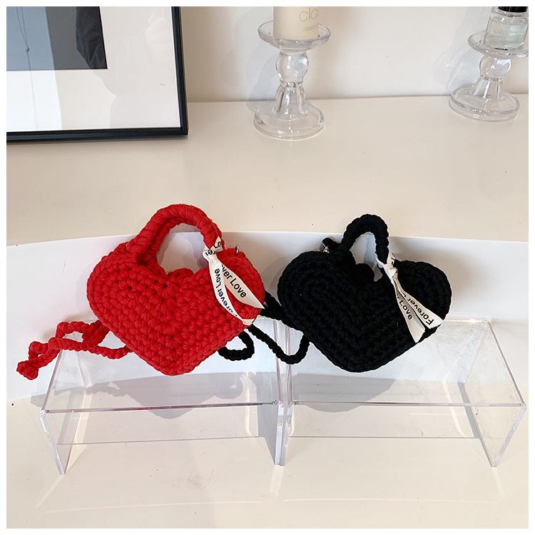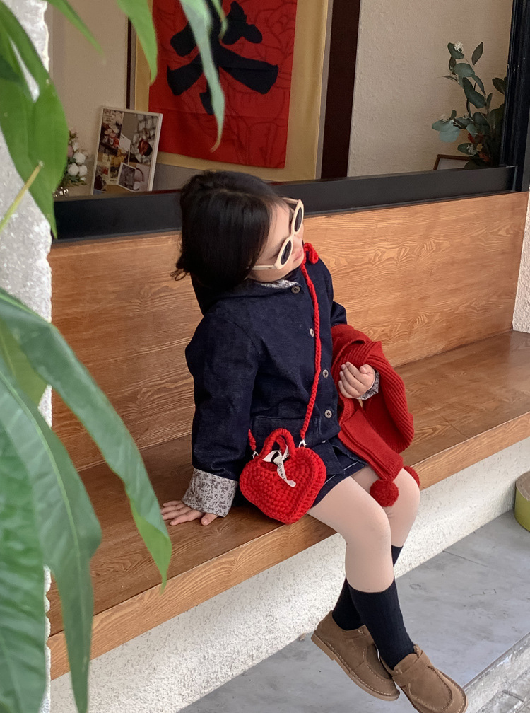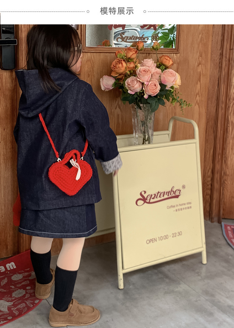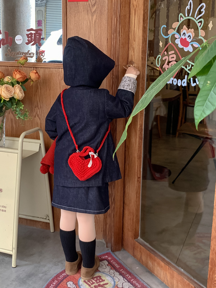 사랑 니트 메신저 가방 어린이 핸드백 귀여운 유치원 어린 소녀 여행 어깨 가방 동전 지갑 도매스토어 가기