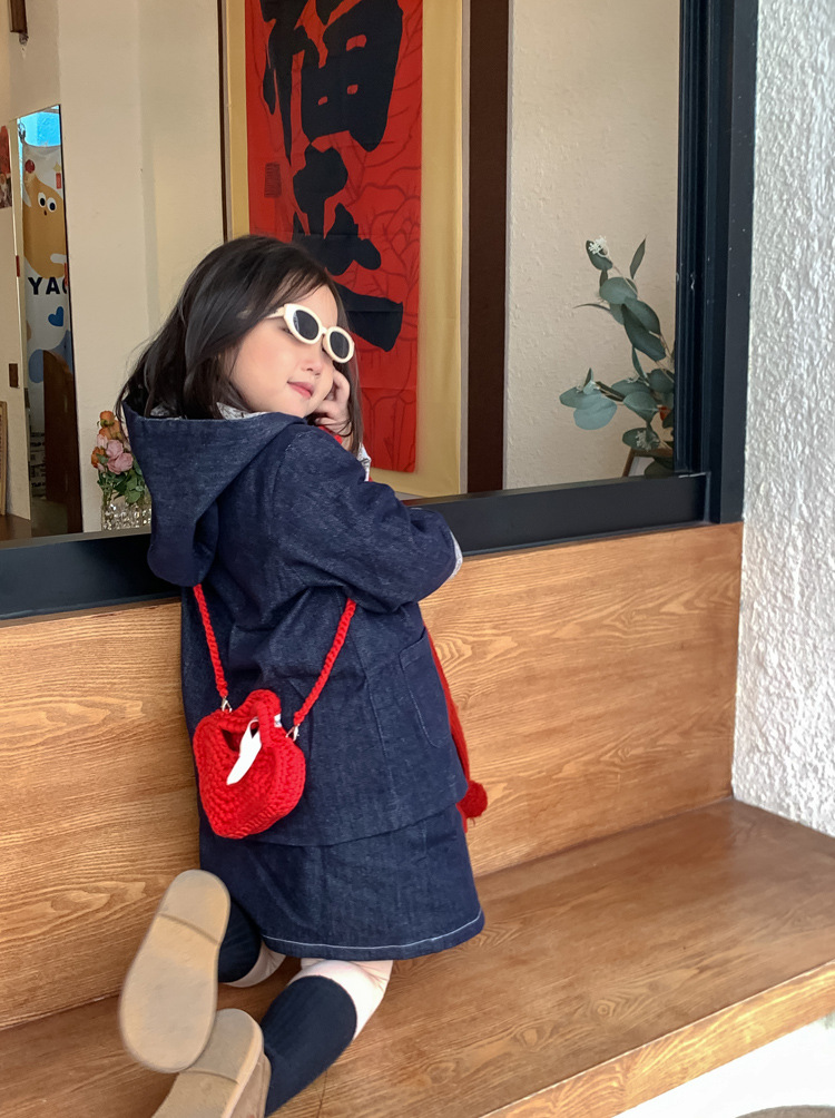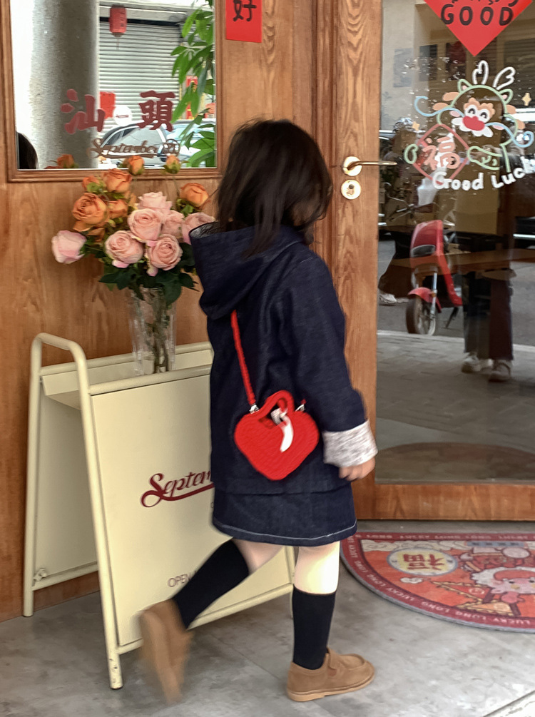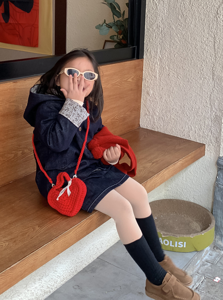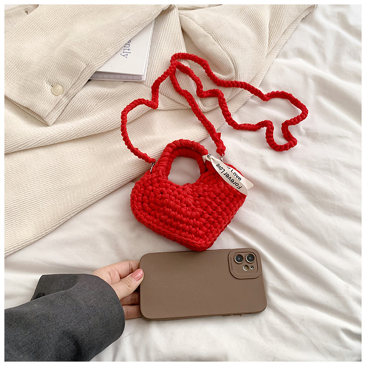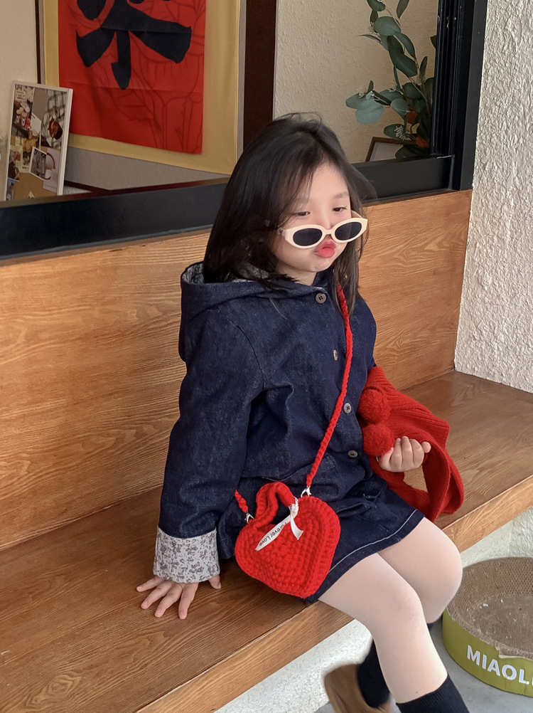 사랑 니트 메신저 가방 어린이 핸드백 귀여운 유치원 어린 소녀 여행 어깨 가방 동전 지갑 도매스토어 가기