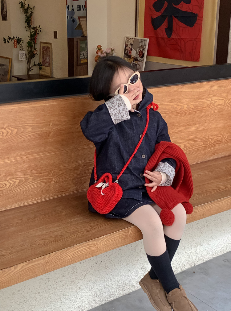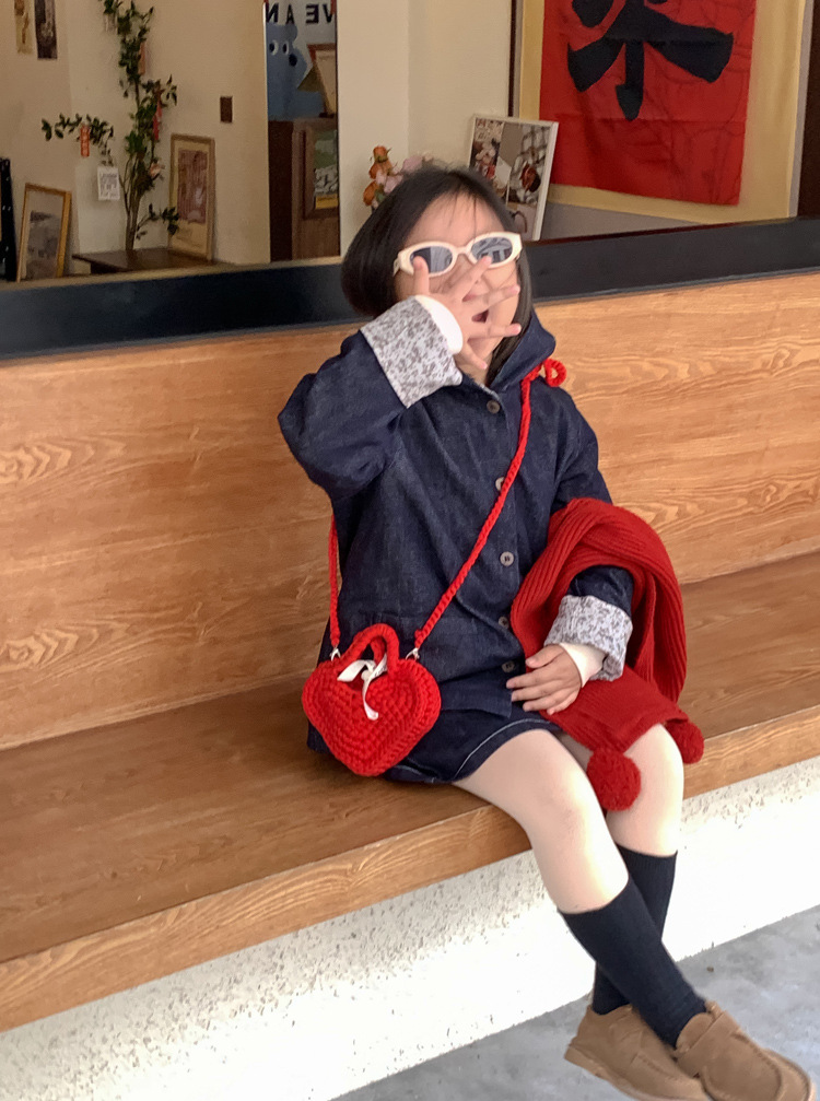 사랑 니트 메신저 가방 어린이 핸드백 귀여운 유치원 어린 소녀 여행 어깨 가방 동전 지갑 도매