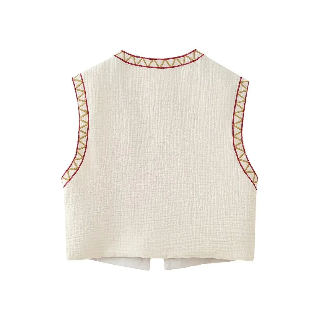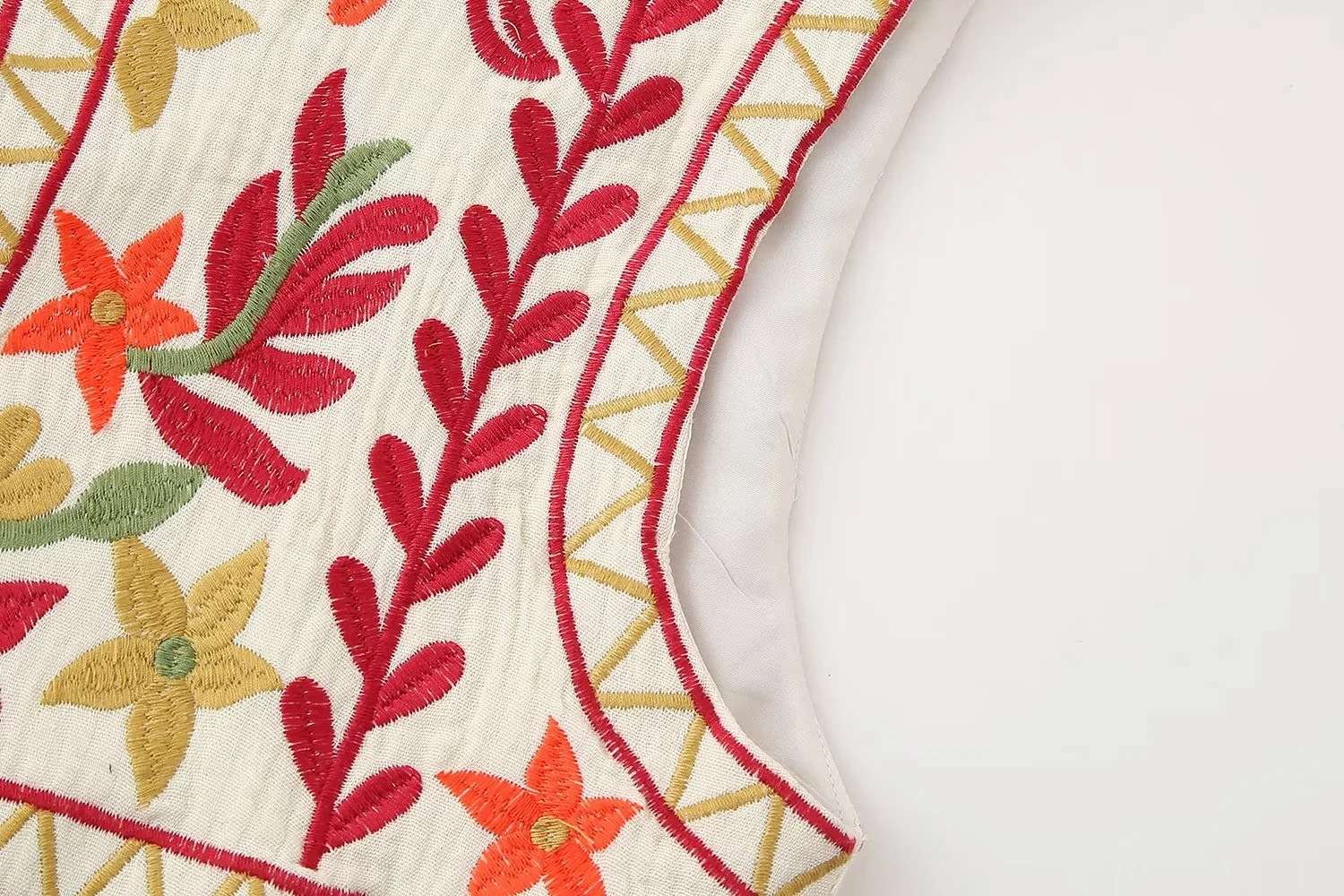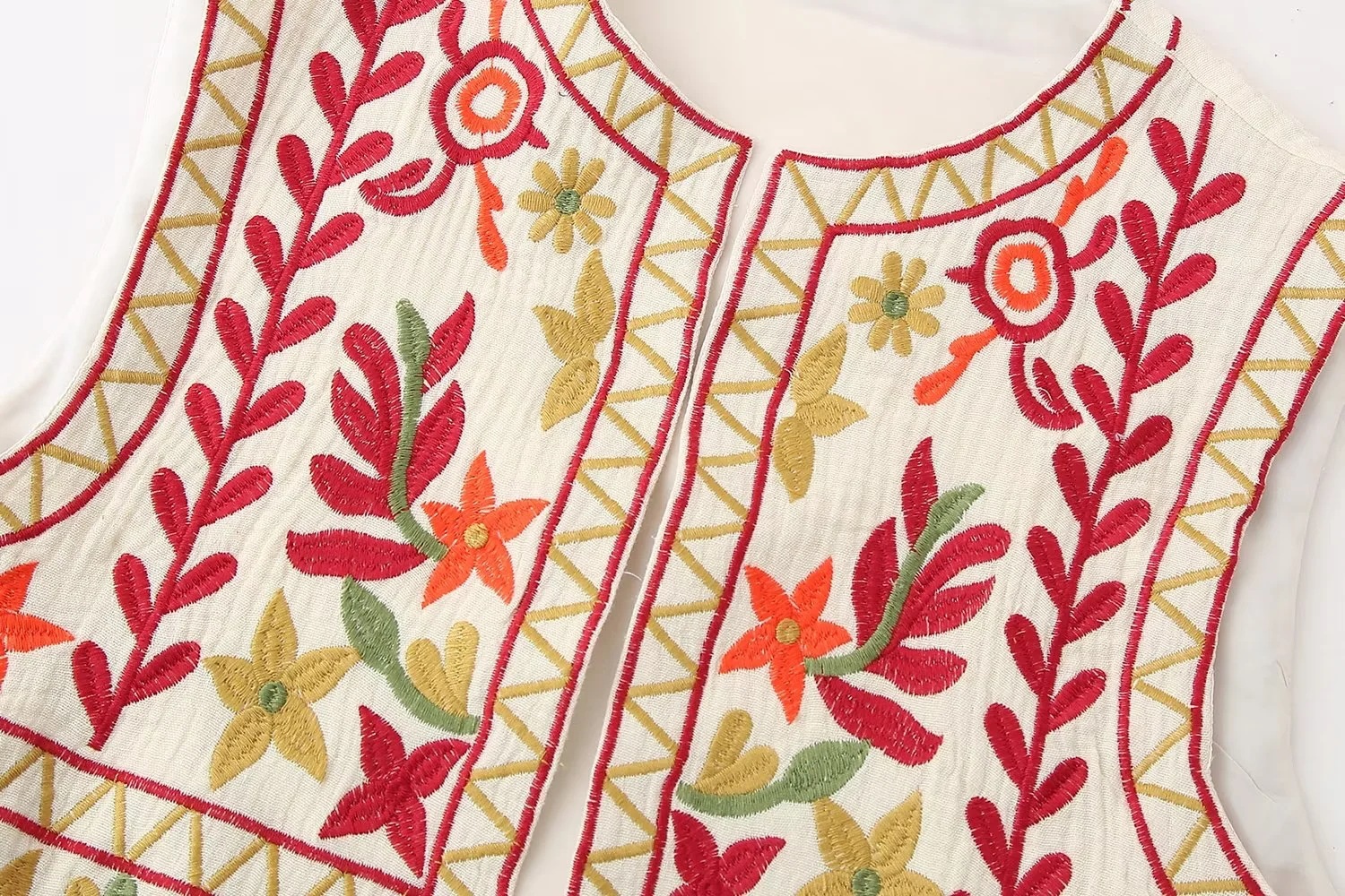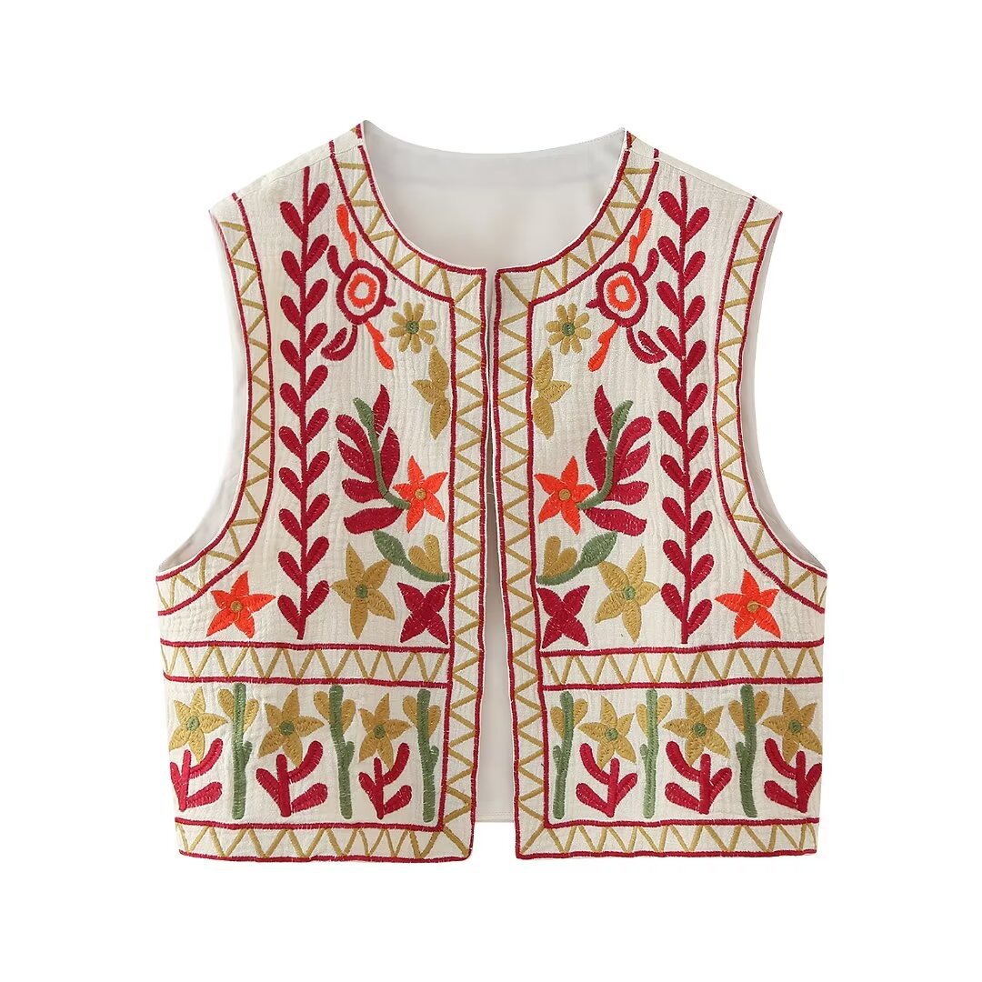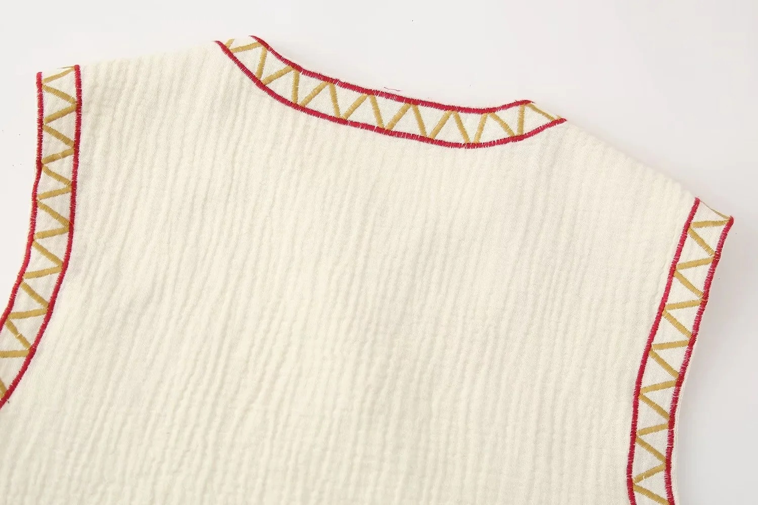 아마존 국경 대외 무역 유럽과 미국 여성의 2024 여름 새로운 유럽과 미국 스타일의 둥근 목 자수 조끼