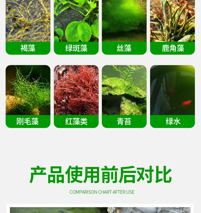 물고기 연못 Algaecide Koi 물고기 연못 다크 브라운 조류 녹색 조류 오래된 녹색 물 던지기 제거 토스 제거 이끼 그물 속도 Algaecide스토어 가기