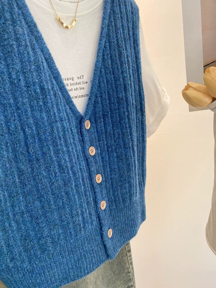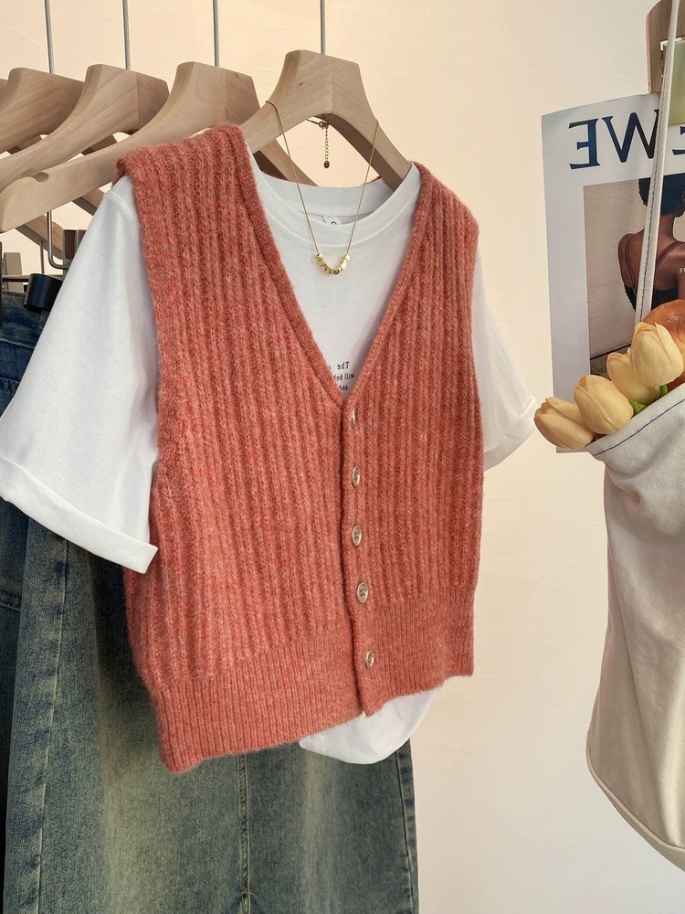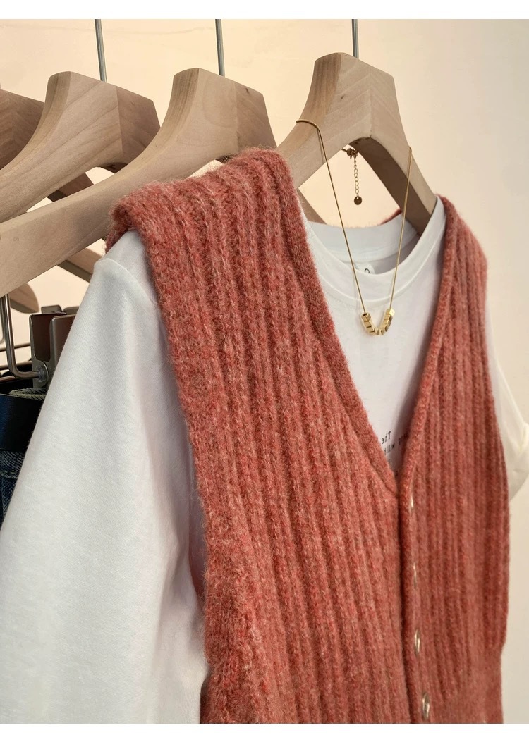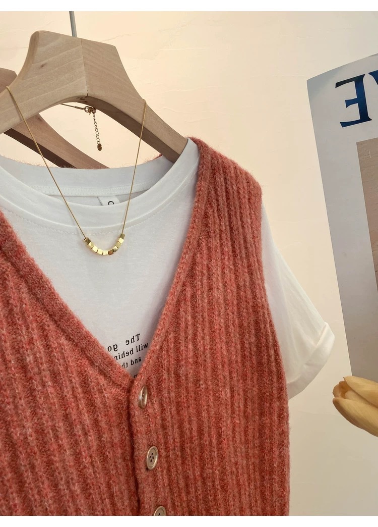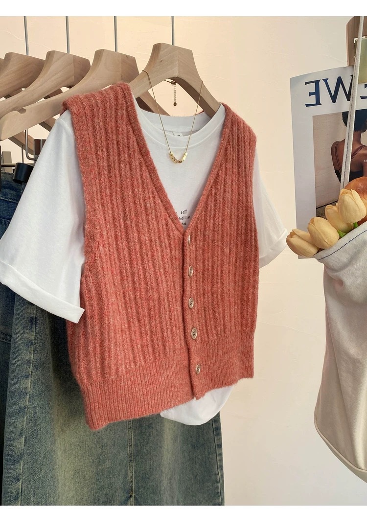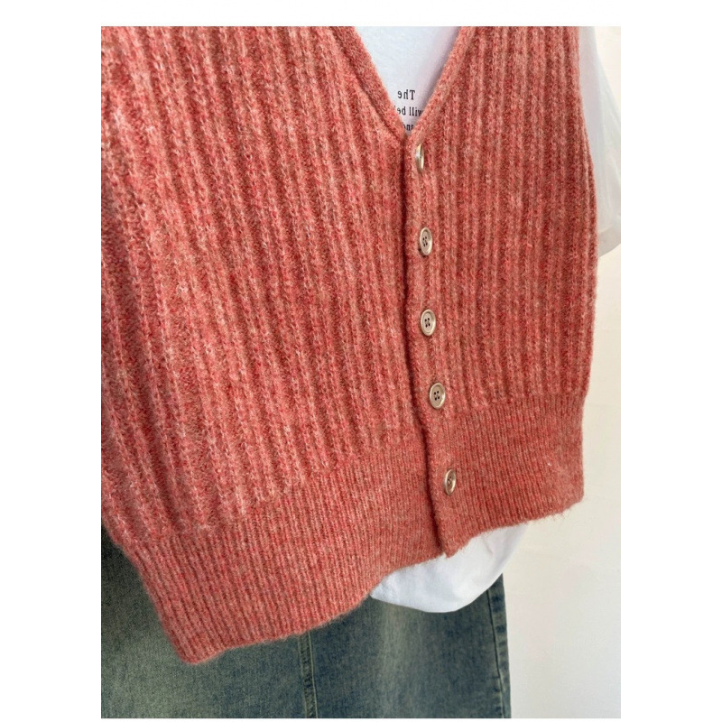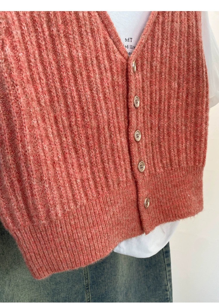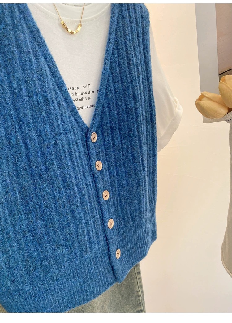 프랑스 레트로 V 넥 니트 조끼 카디건 여성 가을 및 겨울 외부 착용 민소매 소프트 왁스 스웨터 조끼 조끼 문학 스타일