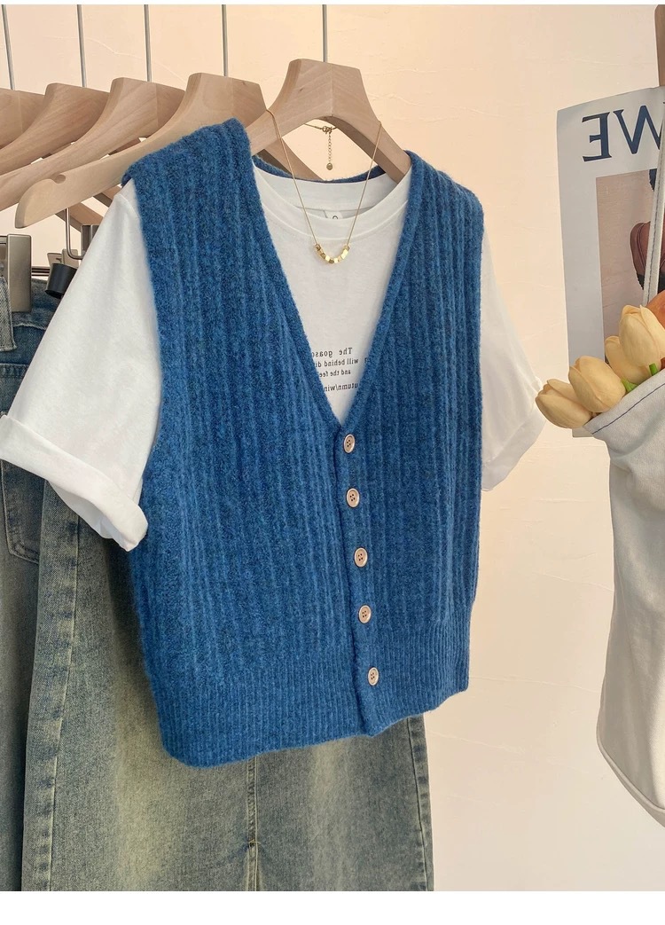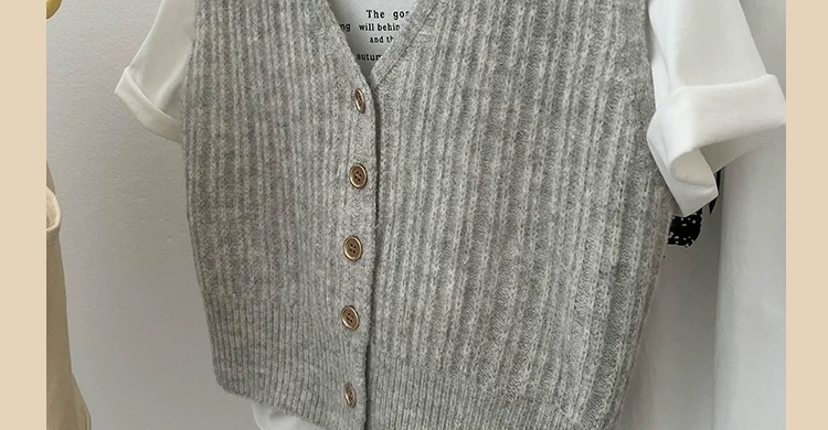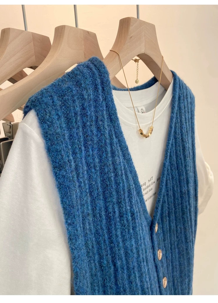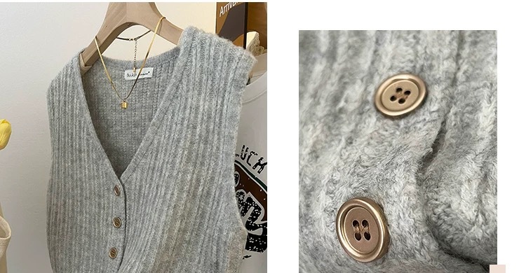 프랑스 레트로 V 넥 니트 조끼 카디건 여성 가을 및 겨울 외부 착용 민소매 소프트 왁스 스웨터 조끼 조끼 문학 스타일스토어 가기