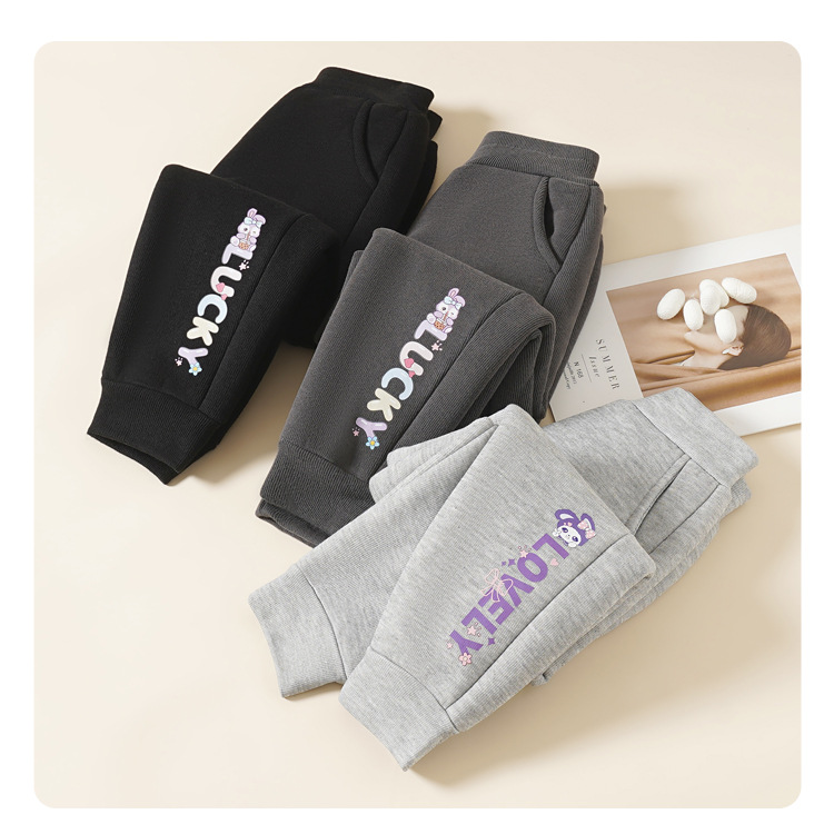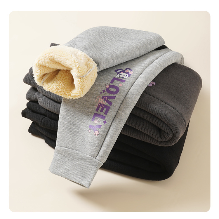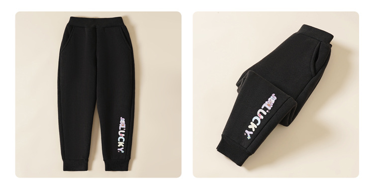 새로운 어린이 따뜻한 바지 겨울 기모 따뜻한 캐주얼 바지 인쇄 편지 가을과 겨울 두꺼운 스포츠 바지 가을 바지