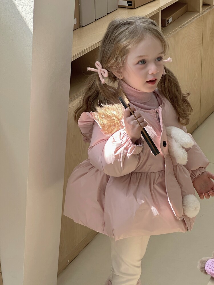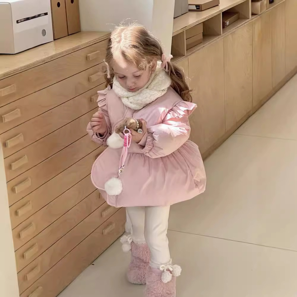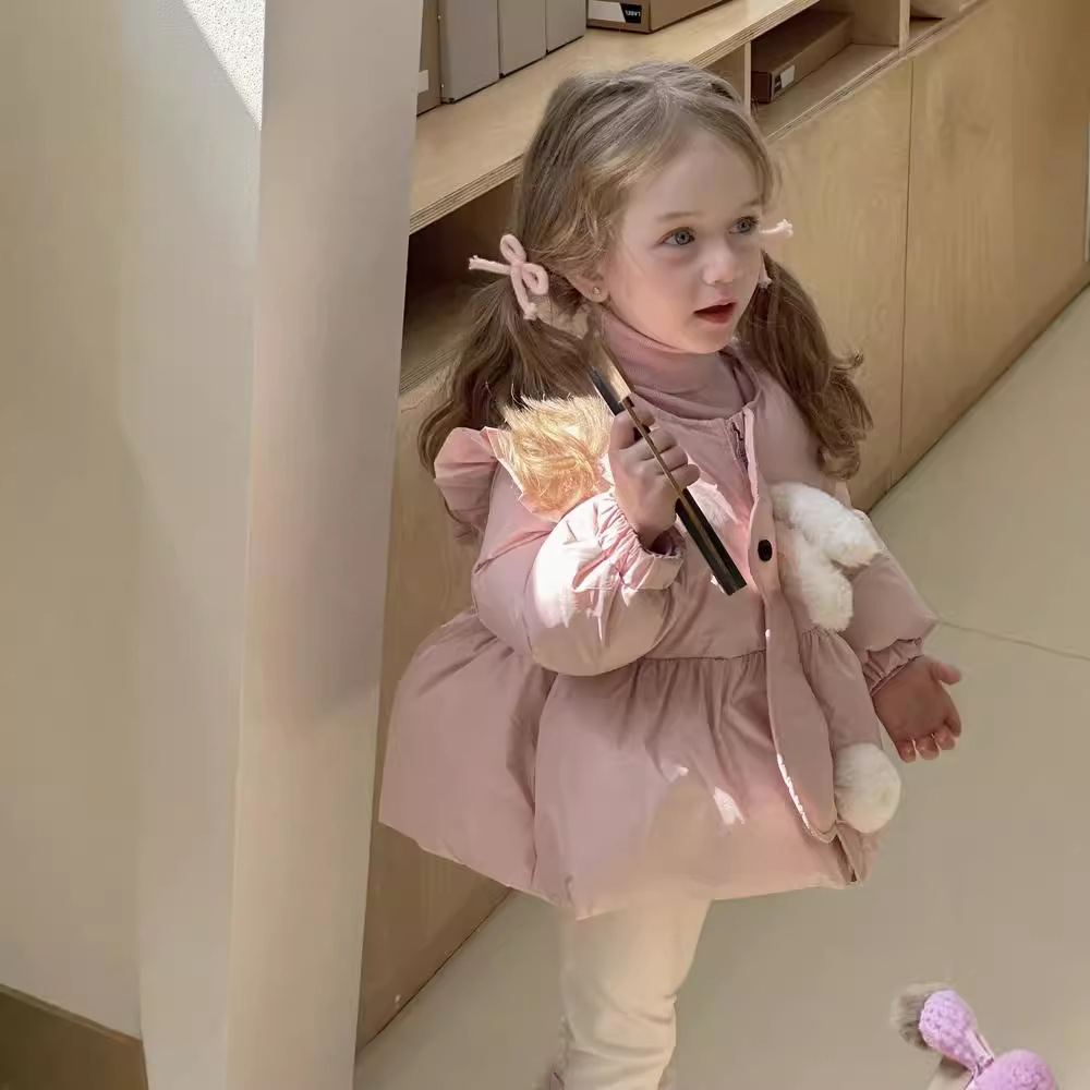 여아용 다운 재킷 아동 겨울옷 흰색 오리털 신상 두꺼운 보온 중간 길이 아기 의류스토어 가기