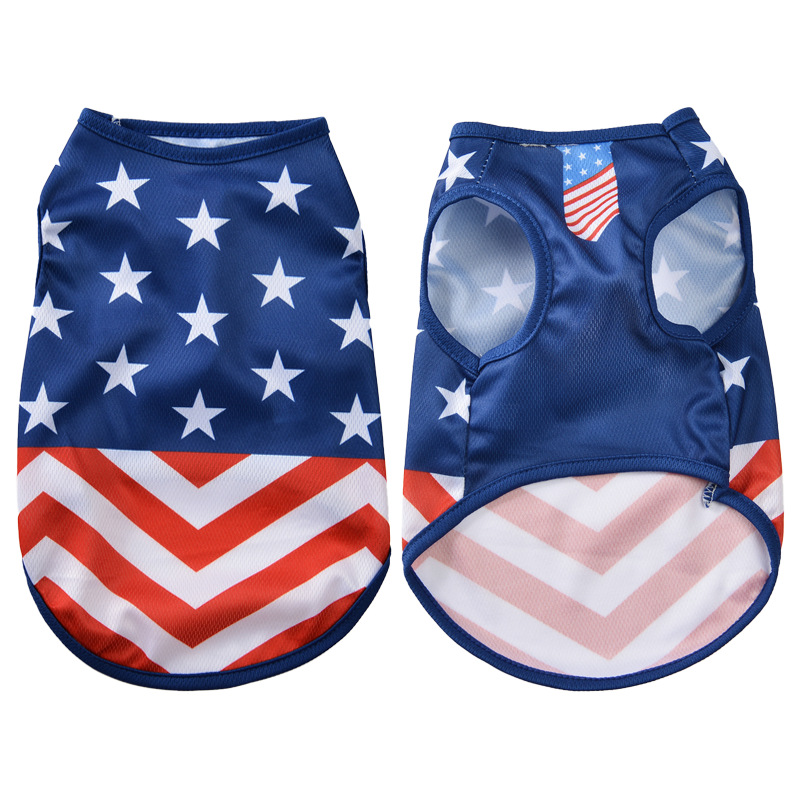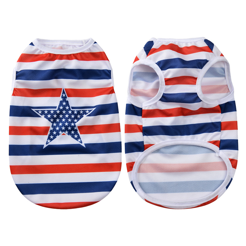 강아지 옷 봄과 여름 다섯개 별 줄무늬 사랑 미국 독립 기념일 중소 개 푸들 비촌 조끼 공장스토어 가기