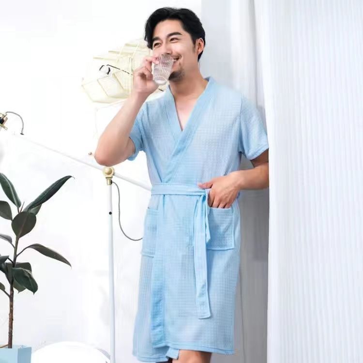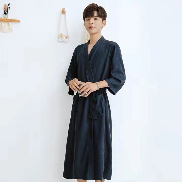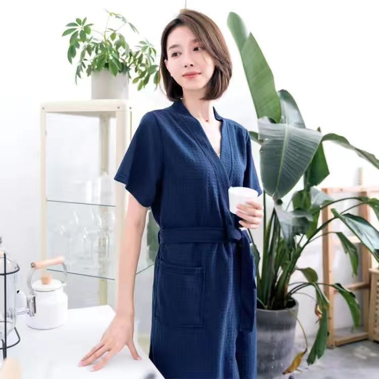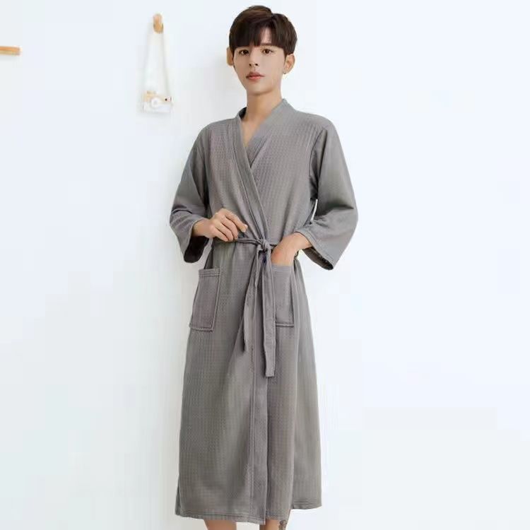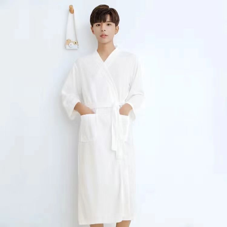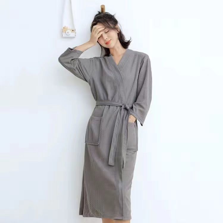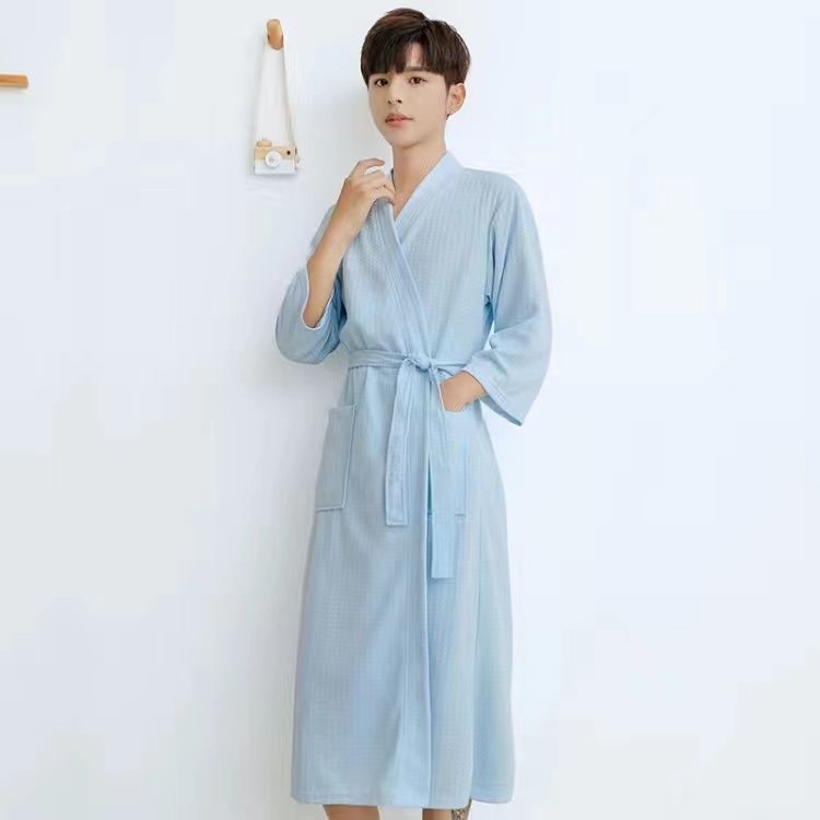 남성과 여성을위한 봄과 가을 얇은 잠옷 느슨한 와플 목욕 가운 호텔 뷰티 살롱 봄 및 여름 아침 가운 커플 Lanzhi