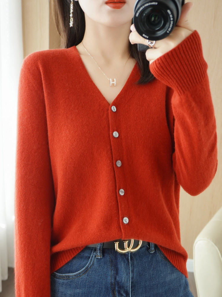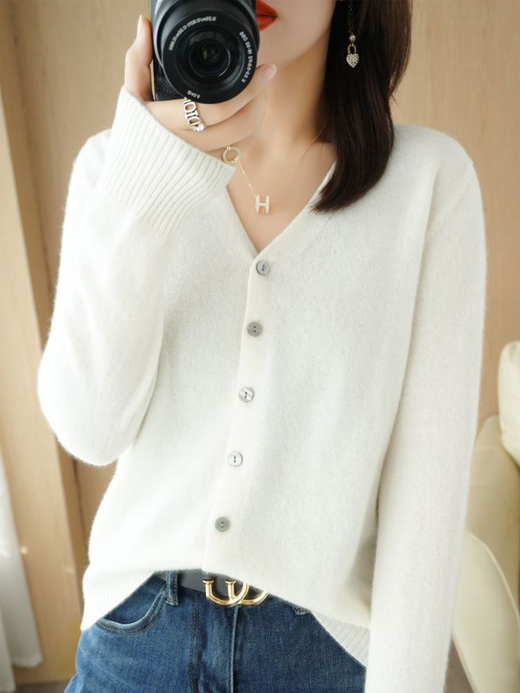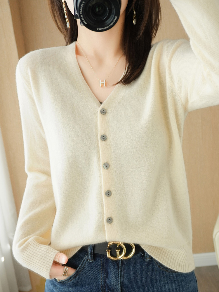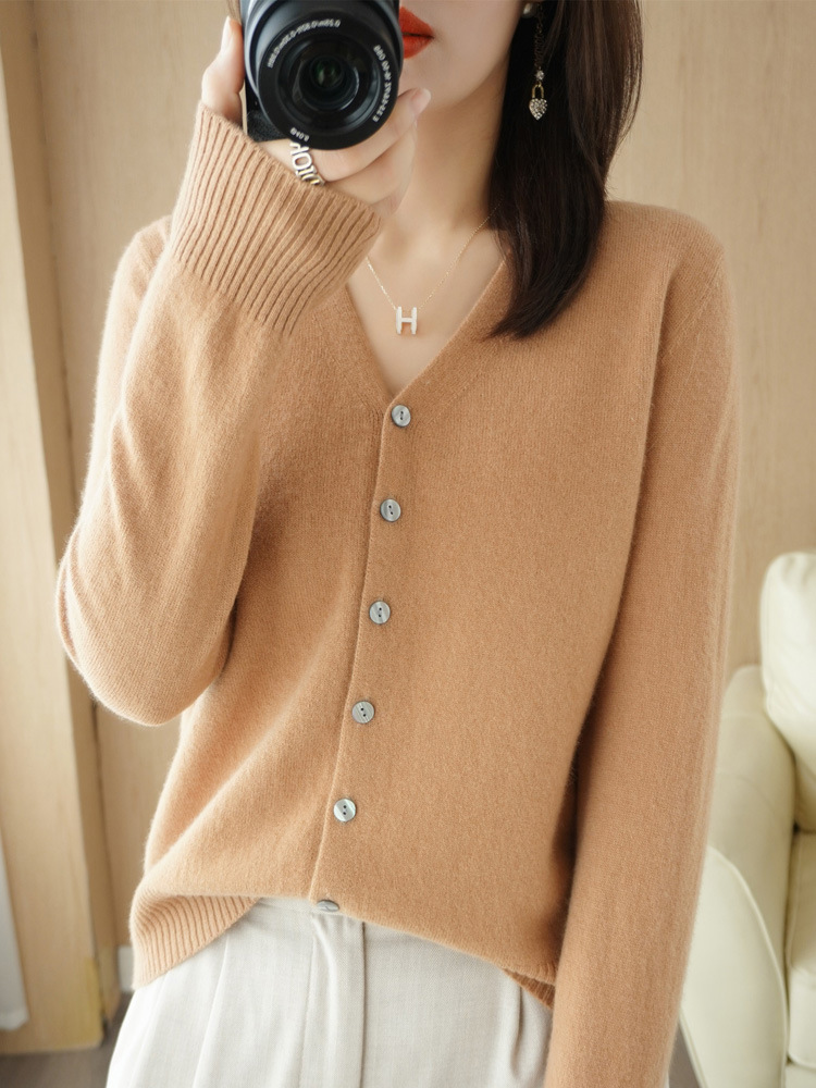 가디건 가을옷 한국 스타일 브이넥 스웨터 루즈핏 니트 긴팔 여성 단색 상의 코트 도매