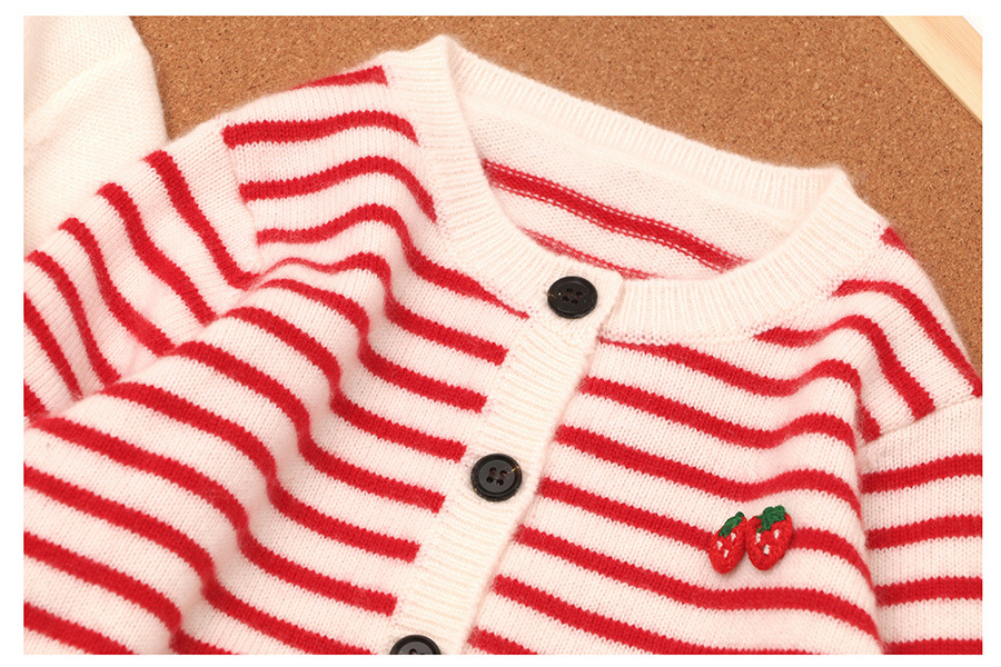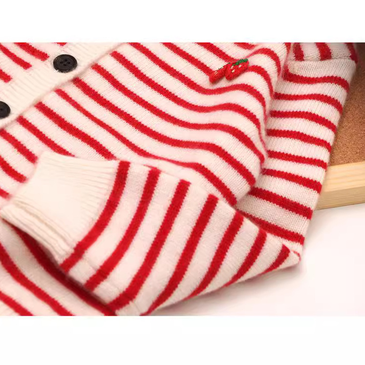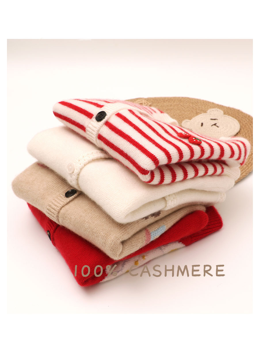 공장 제품은 이제 소녀 100% 캐시미어 승무원 목 카디건 여성 보물 스웨터 외국 스타일의 부드러운 왁스 같은 피부 친화적 인 줄무늬 귀여운