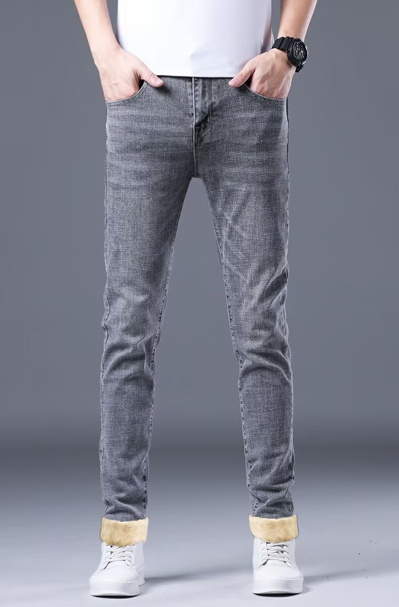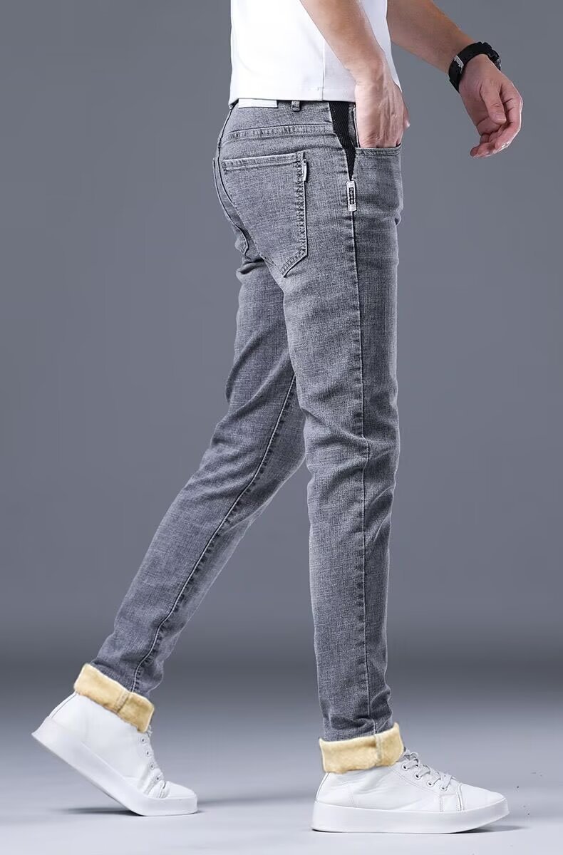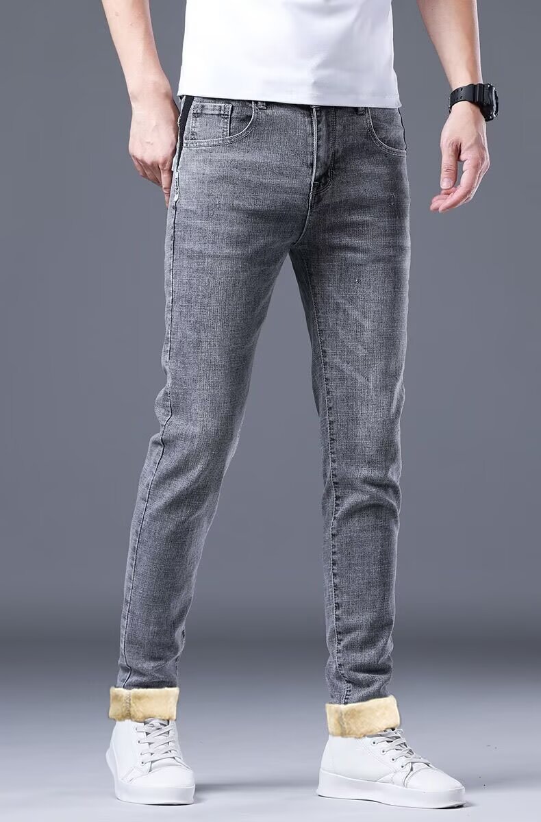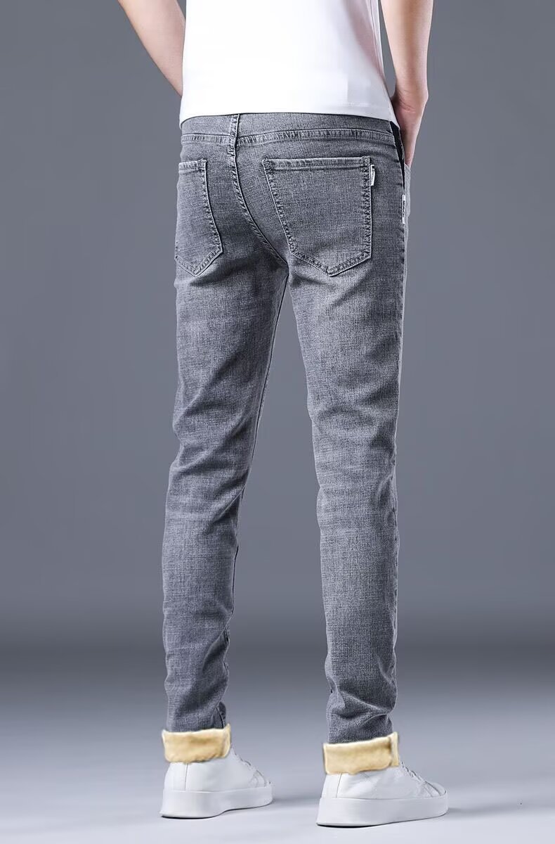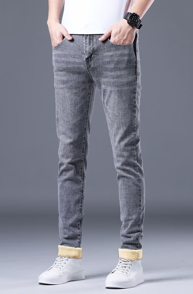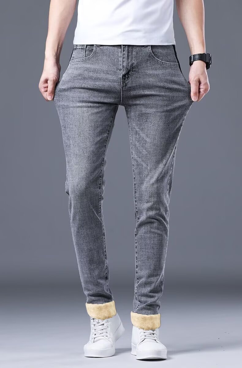 겨울 회색 청바지 남성용 기모 두꺼운 스트레이트 슬림 핏 느슨한 탄성 따뜻한 캐주얼 긴 유행 바지스토어 가기