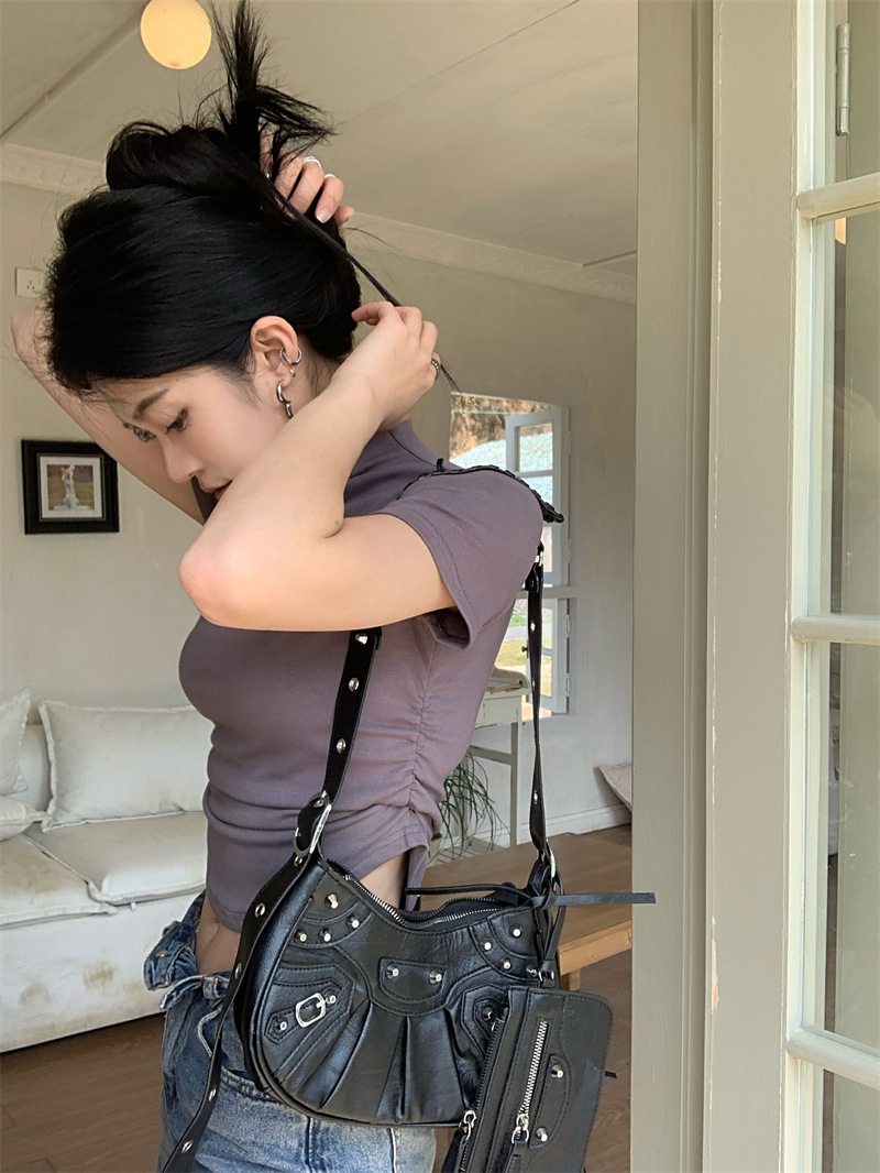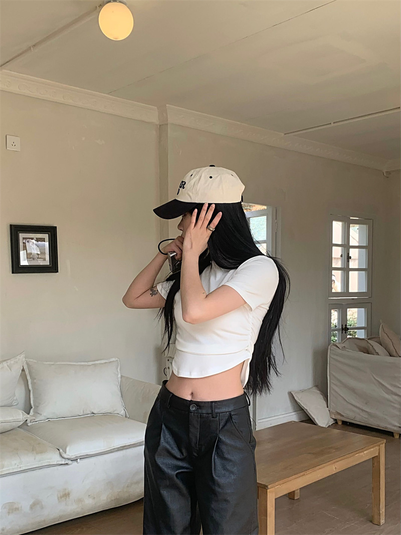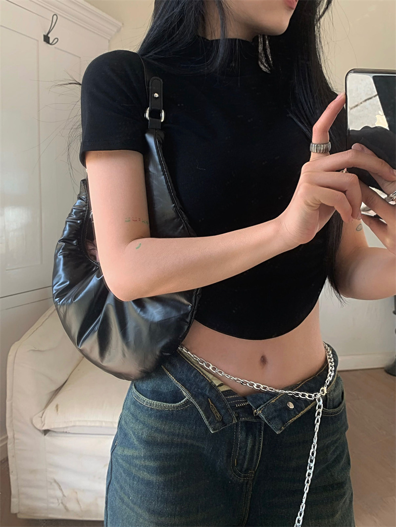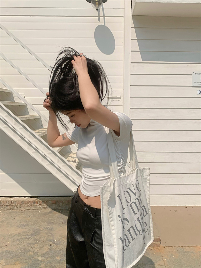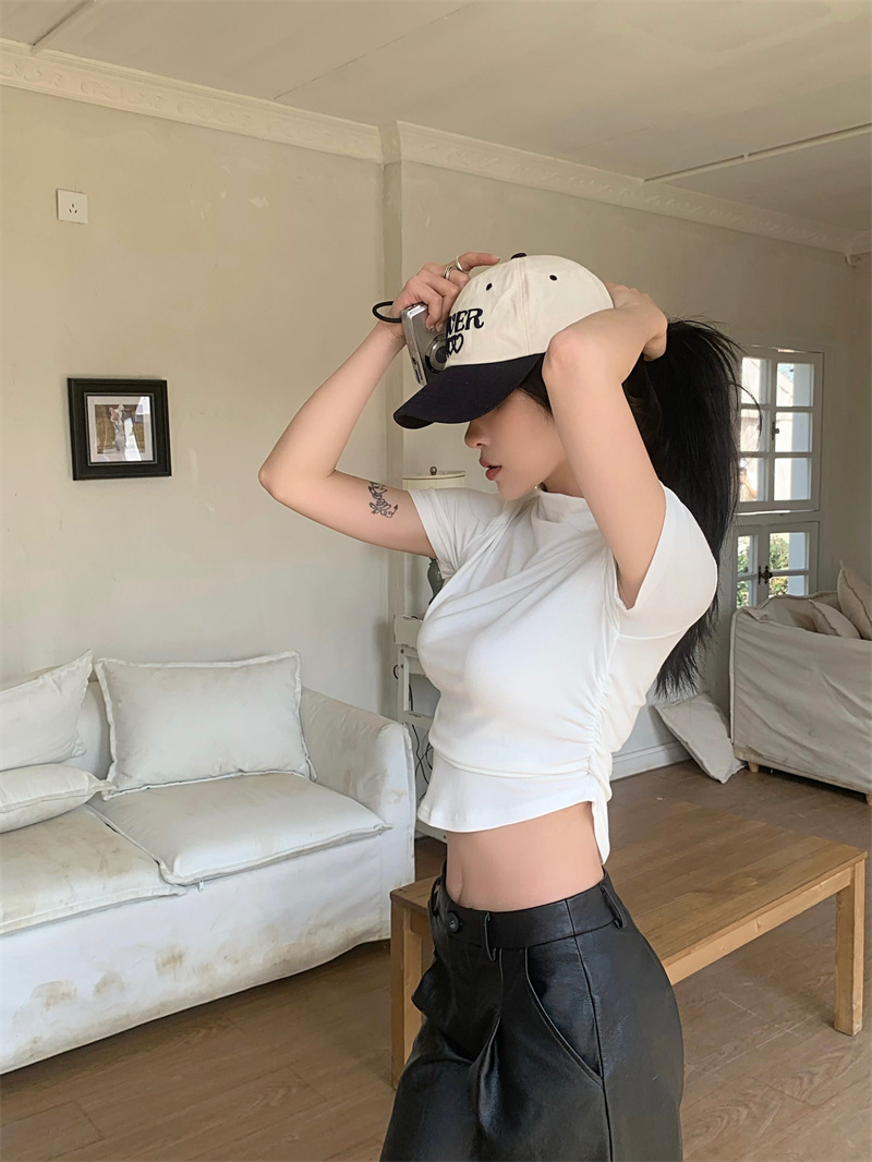 짧은 슬림핏 하프 하이 칼라 내베이스 셔츠 여성용 여름 2024 핫 걸 디자인 센스 슬림 핏 반팔 티셔츠 탑
