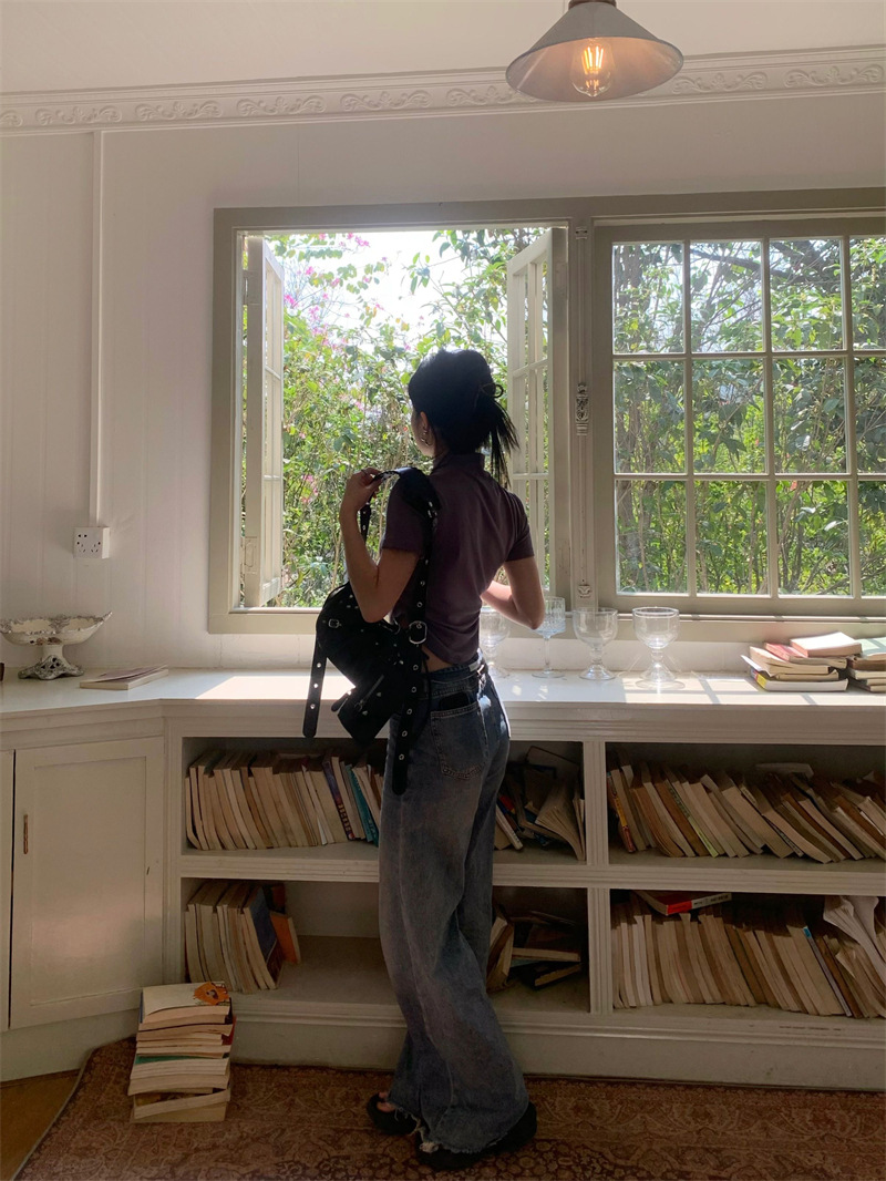 짧은 슬림핏 하프 하이 칼라 내베이스 셔츠 여성용 여름 2024 핫 걸 디자인 센스 슬림 핏 반팔 티셔츠 탑스토어 가기
