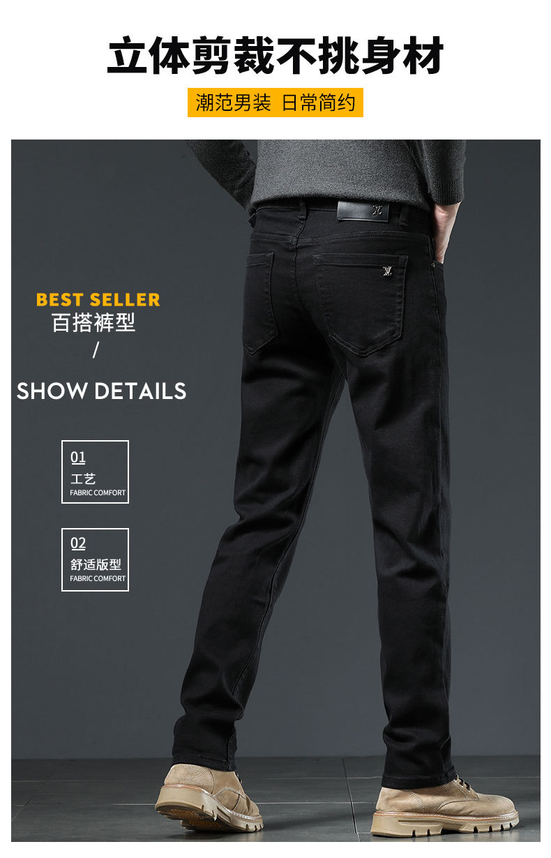 Xintang 청바지 남성 한국 버전의 슬림 발 국경 대외 무역 고품질 유럽 제품 스트레칭 1 차 컬러 바지 도매스토어 가기