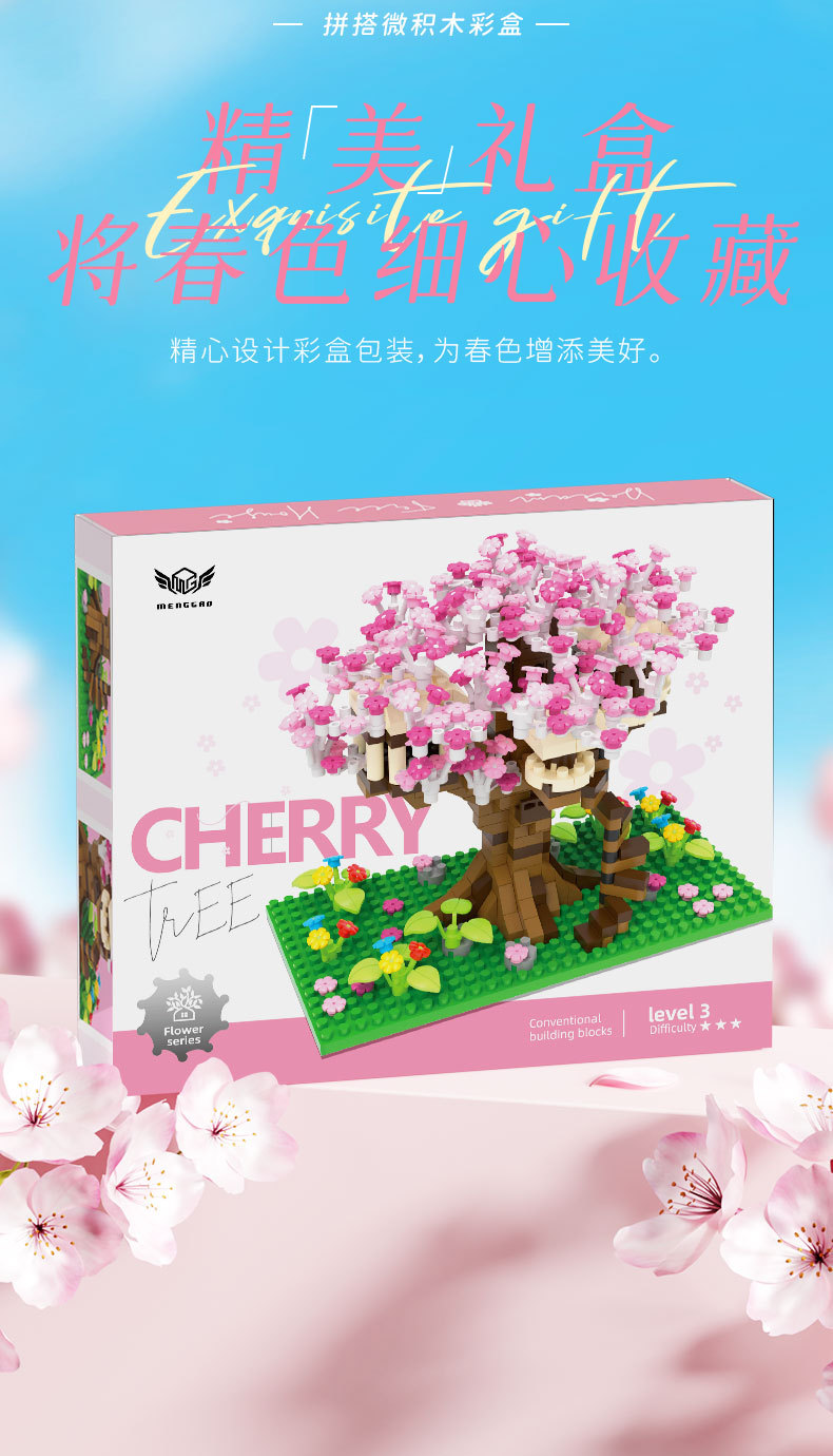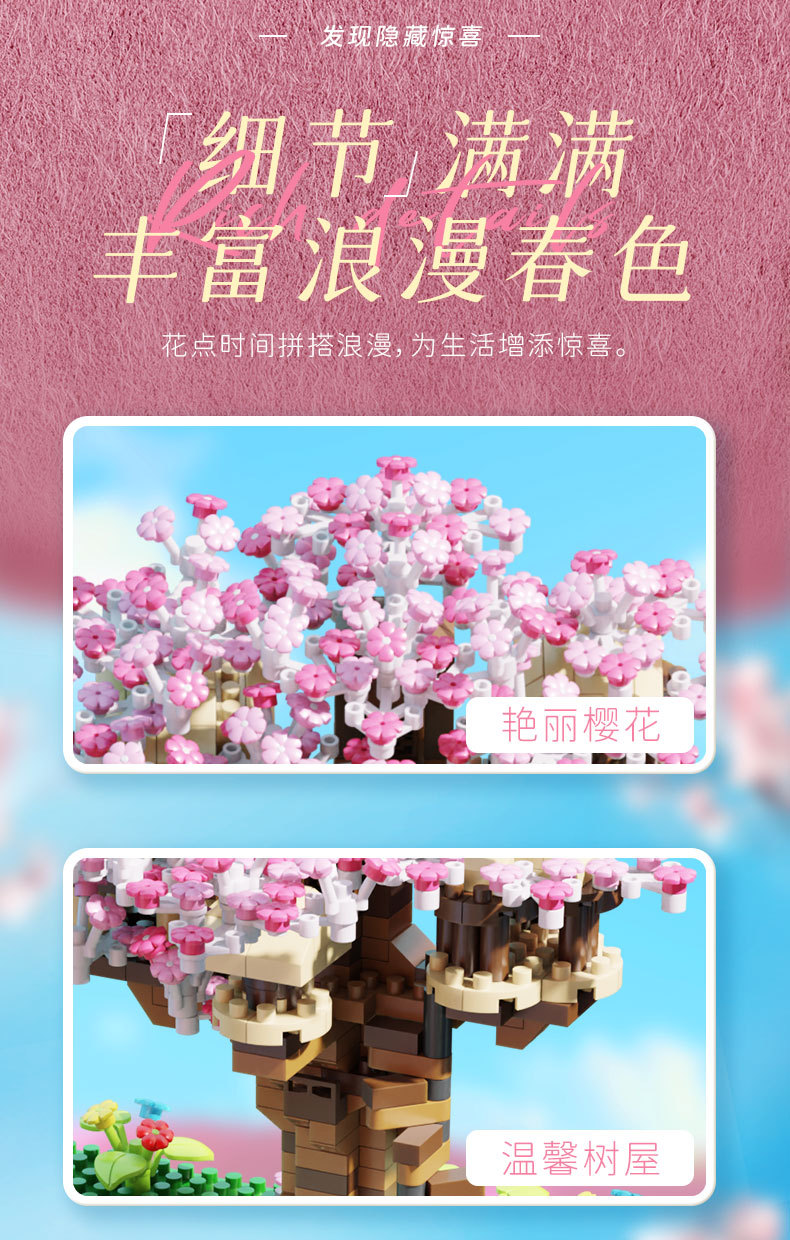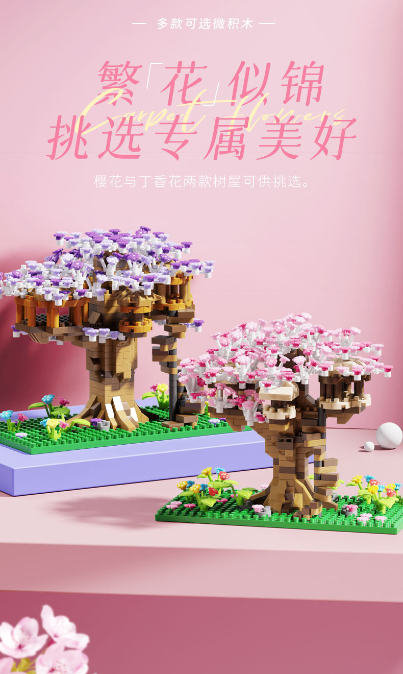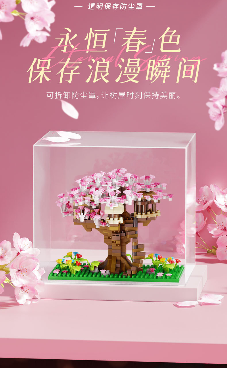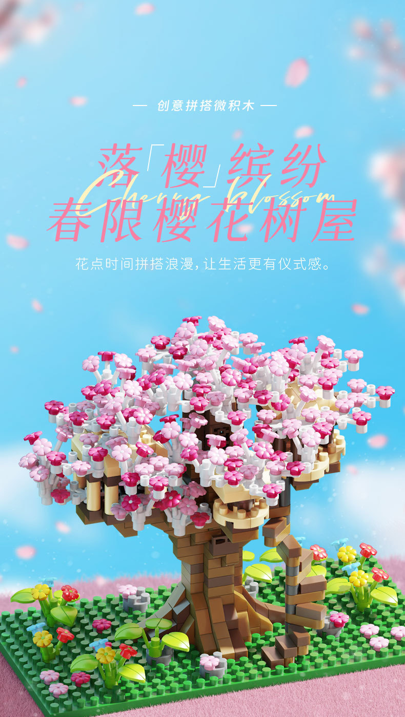 사쿠라 트리 하우스 빌딩 블록 레고 빌딩 블록과 호환되는 마이크로 입자 소녀 시리즈 어려운 조립 모델 장난감 선물스토어 가기