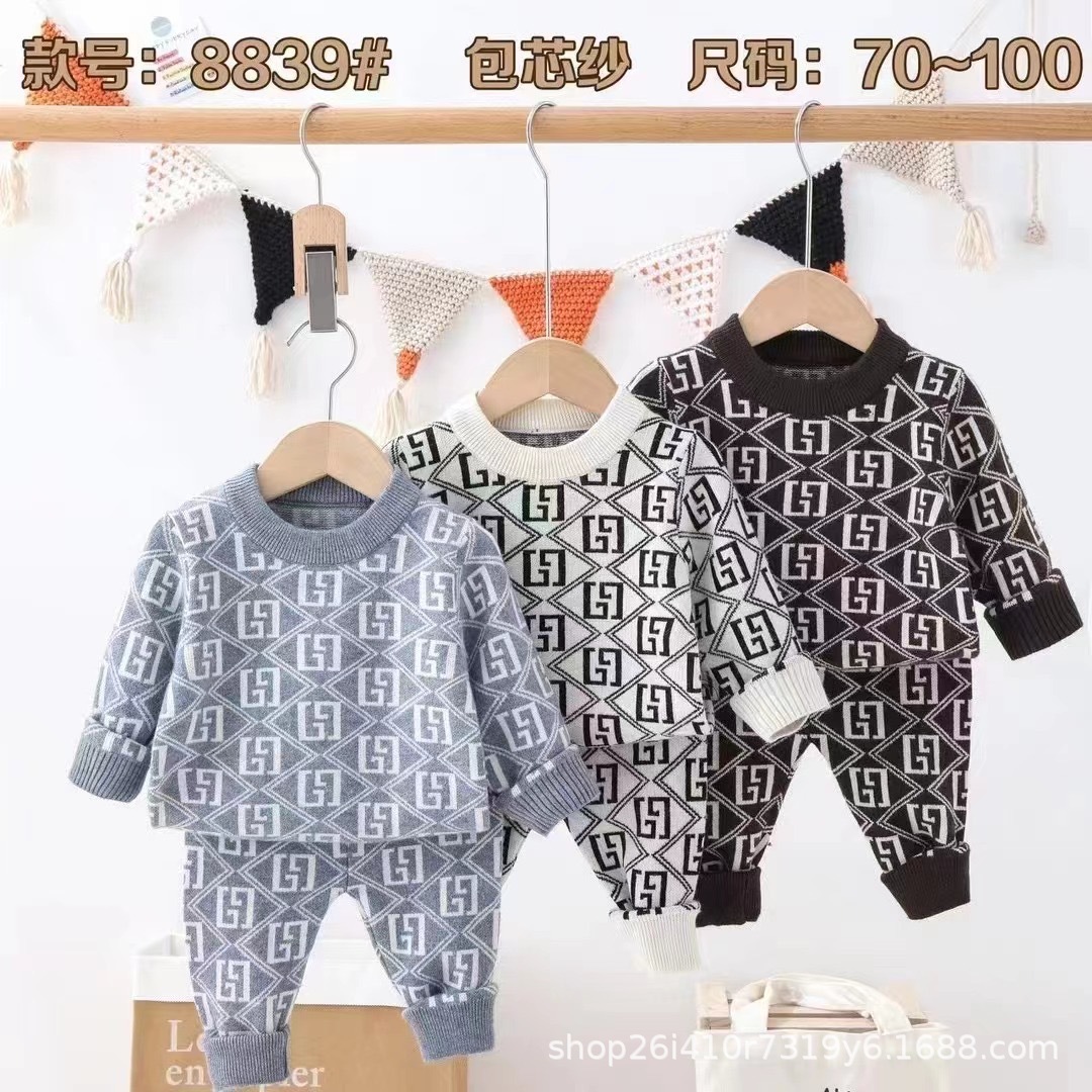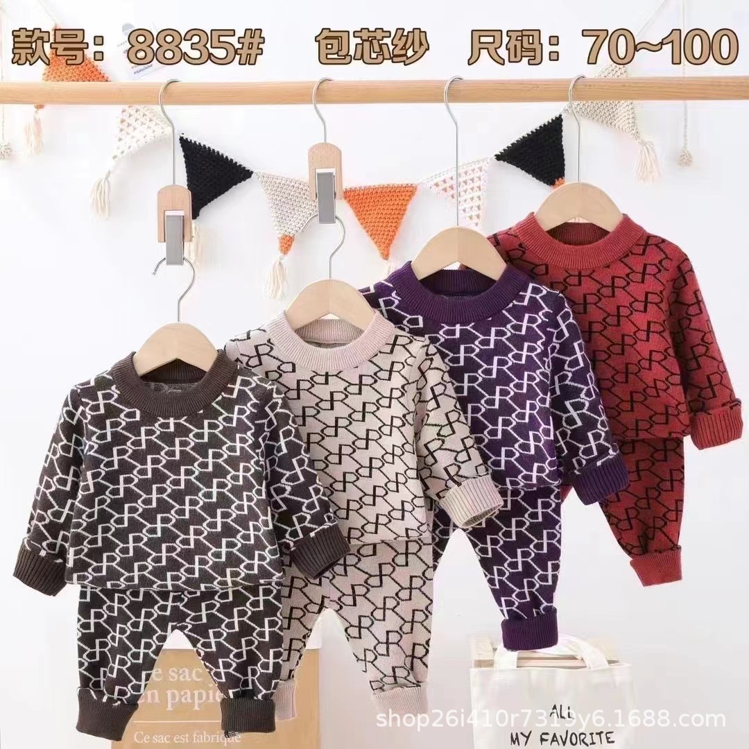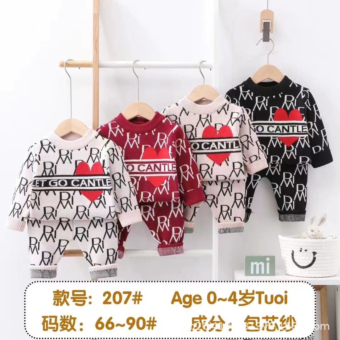 아기 따뜻한 세트 캐주얼 터틀넥 소년과 소녀 스웨터 가을과 겨울 스웨터 외부 가을 옷과 바지 패션 세트스토어 가기