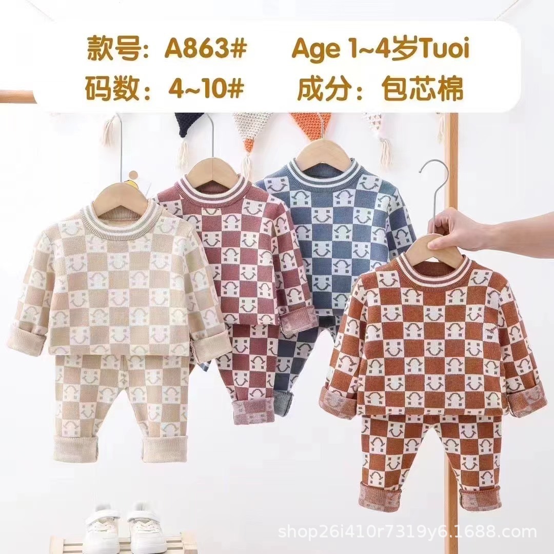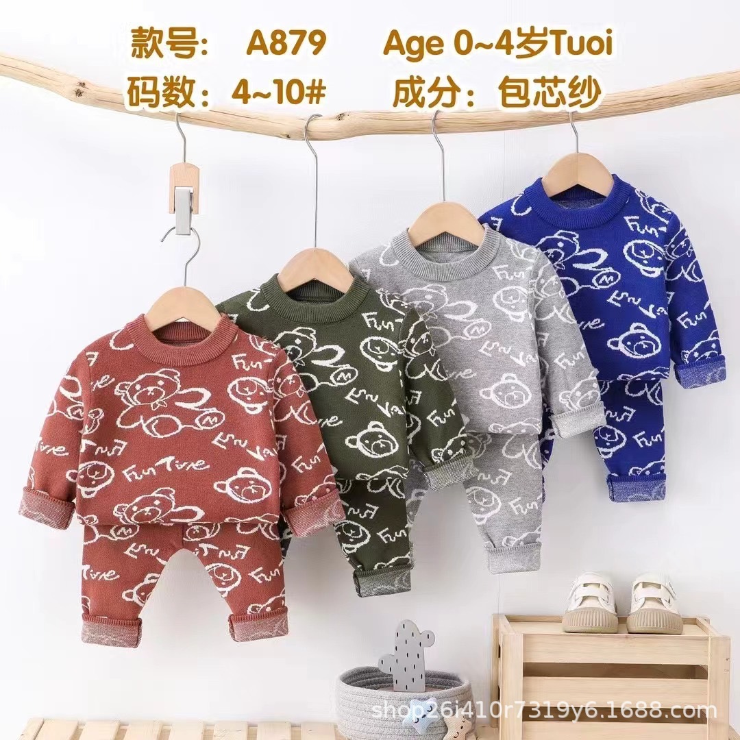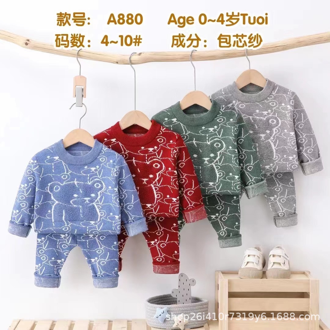 아기 따뜻한 세트 캐주얼 터틀넥 소년과 소녀 스웨터 가을과 겨울 스웨터 외부 가을 옷과 바지 패션 세트스토어 가기
