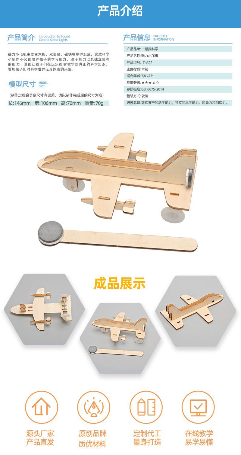 DIY 자기 소형 항공기 과학 기술 작은 생산 발명 학생 과학 실험 재료 수제 장비스토어 가기