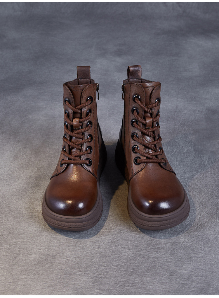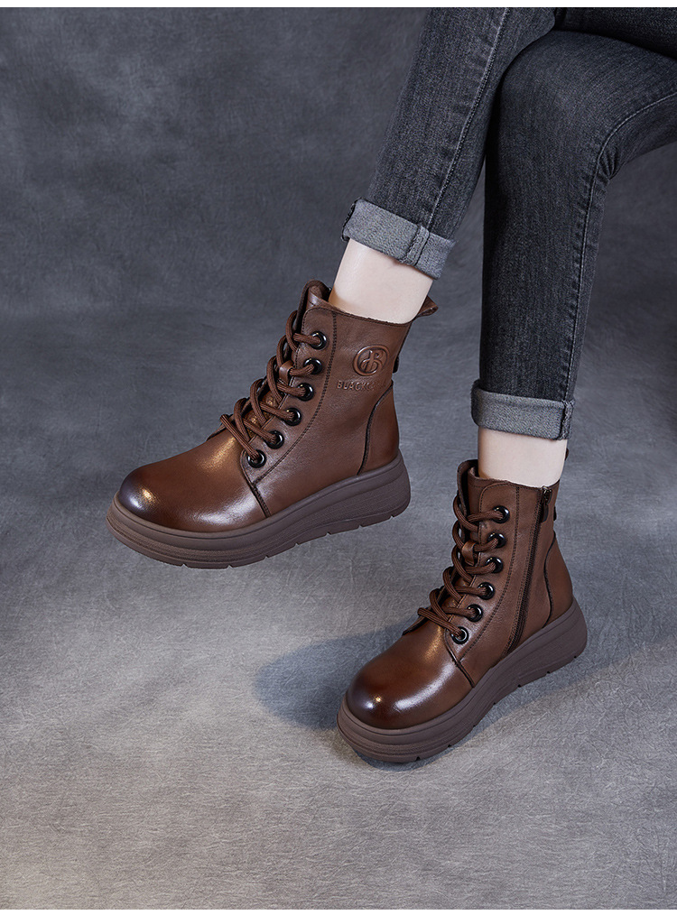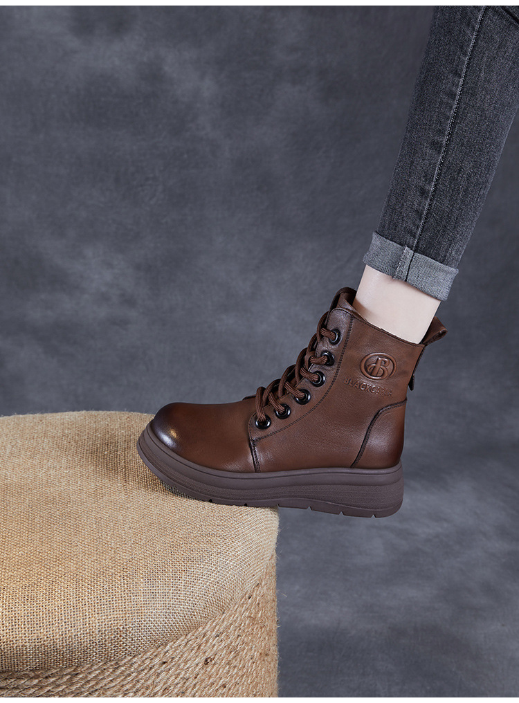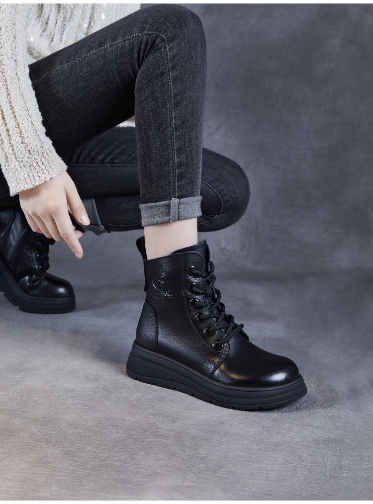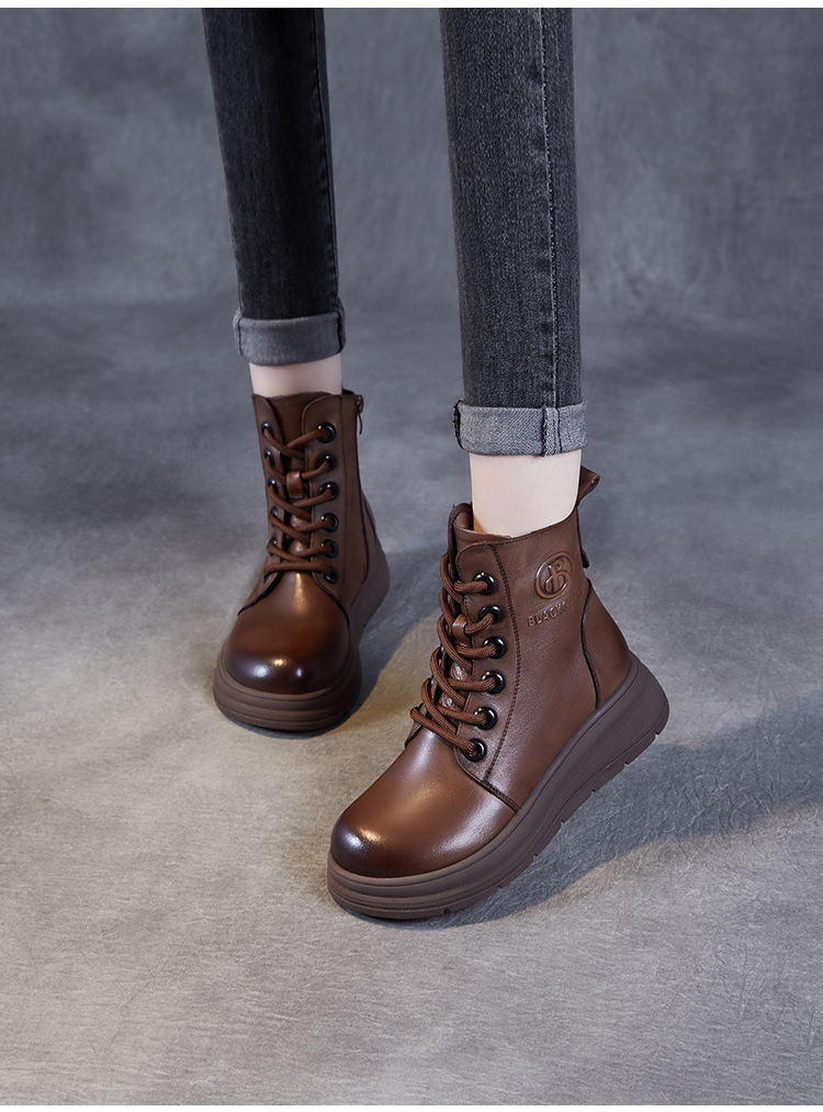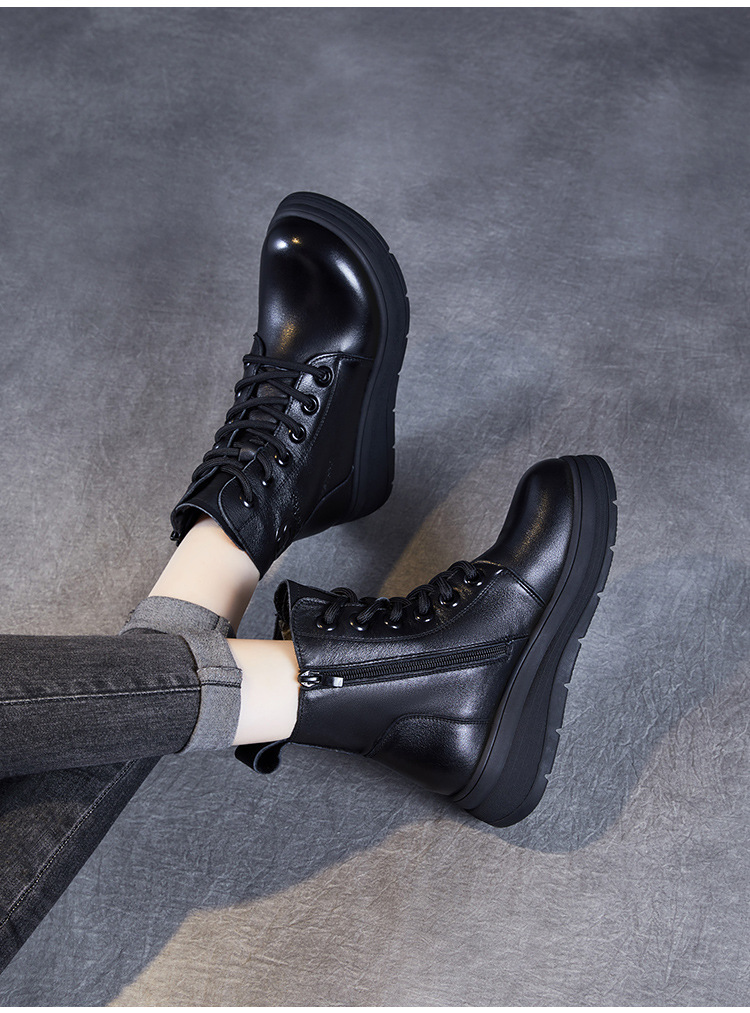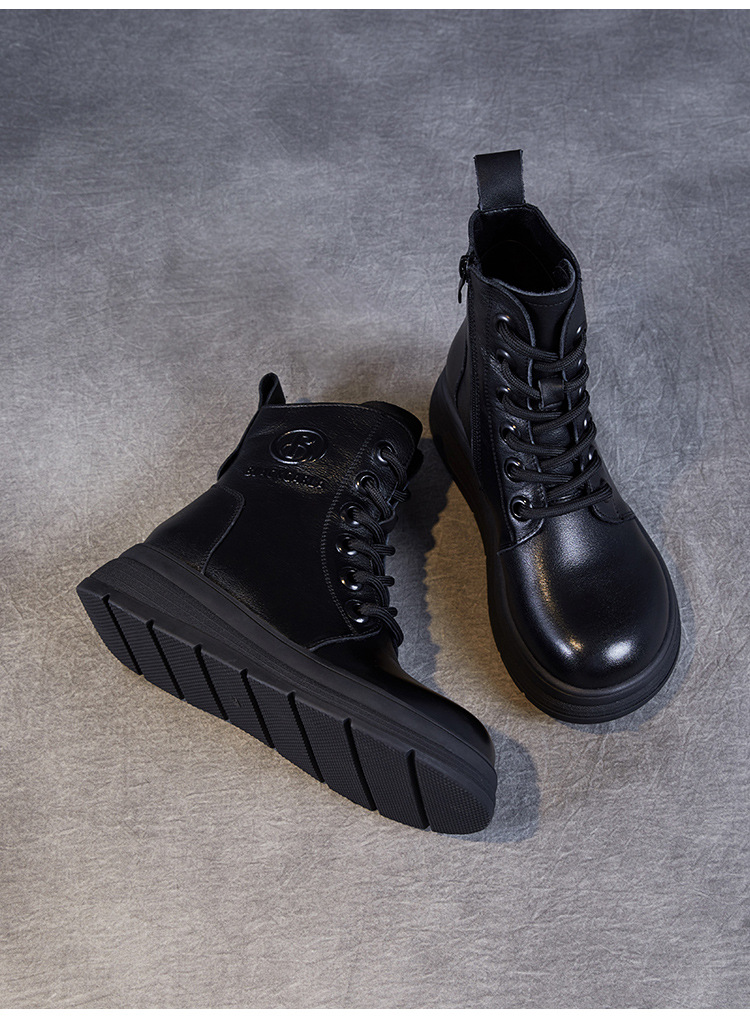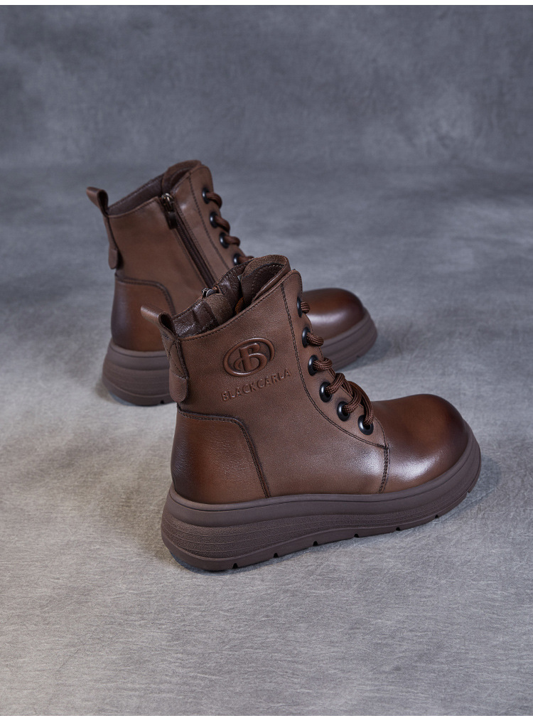 정품 가죽 마틴 부츠 여성 2024 가을 및 겨울 부드러운 바닥 오리지널 영국 빈티지 캐주얼 웨지 발목 부츠 수제 레이스 업 싱글 부츠