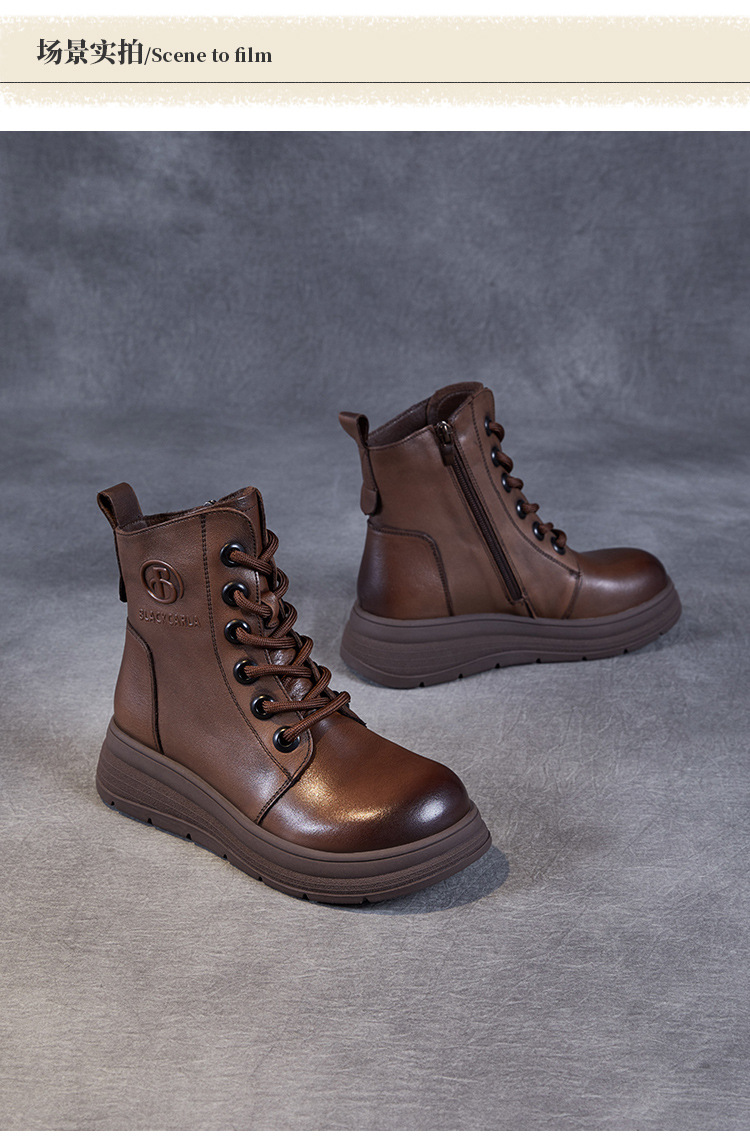 정품 가죽 마틴 부츠 여성 2024 가을 및 겨울 부드러운 바닥 오리지널 영국 빈티지 캐주얼 웨지 발목 부츠 수제 레이스 업 싱글 부츠스토어 가기