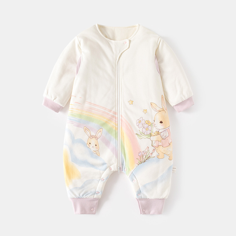 아기의 지속적인 온도 슬리핑 백 가을 및 겨울 아기의 다리 분할 잠옷 용 면화 신생아 지퍼 다기능 킥 방지 퀼트