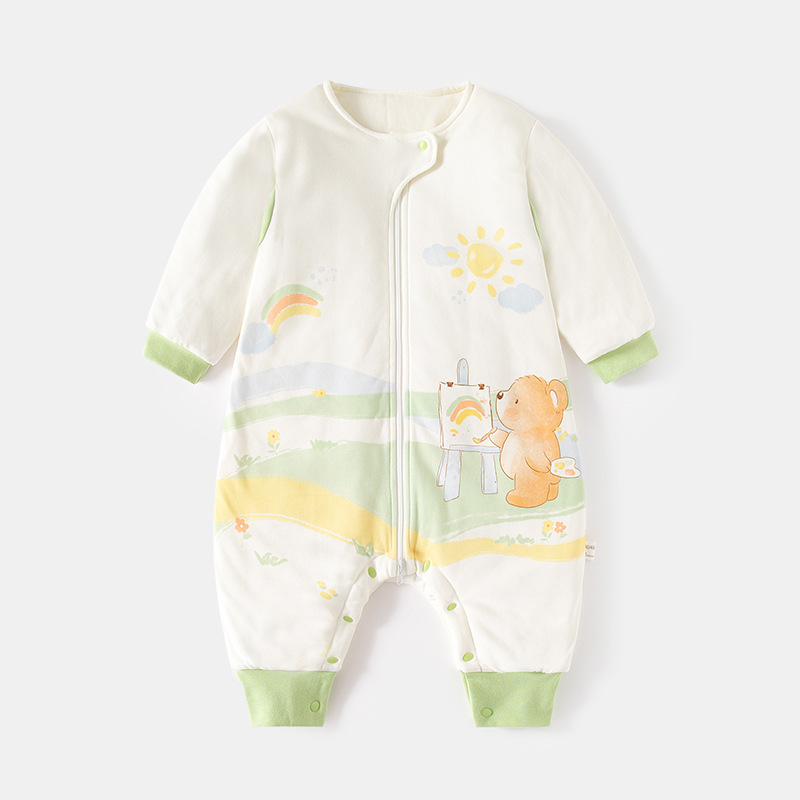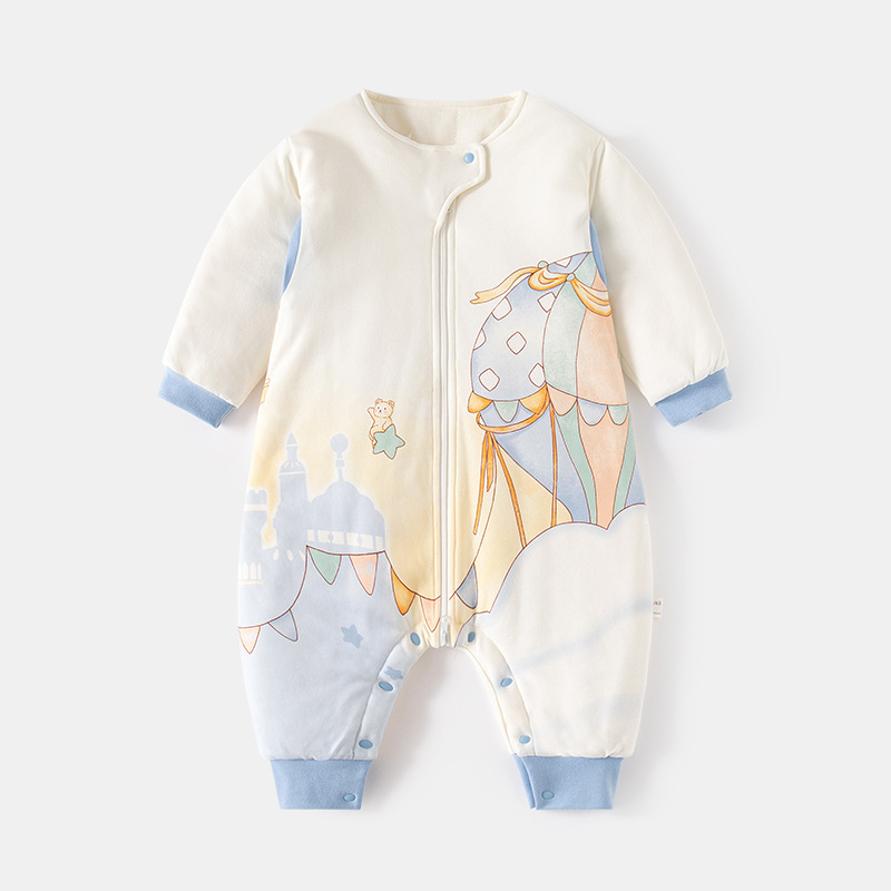 아기의 지속적인 온도 슬리핑 백 가을 및 겨울 아기의 다리 분할 잠옷 용 면화 신생아 지퍼 다기능 킥 방지 퀼트스토어 가기