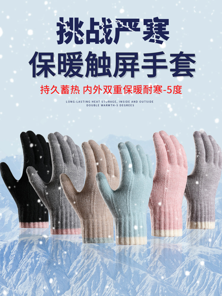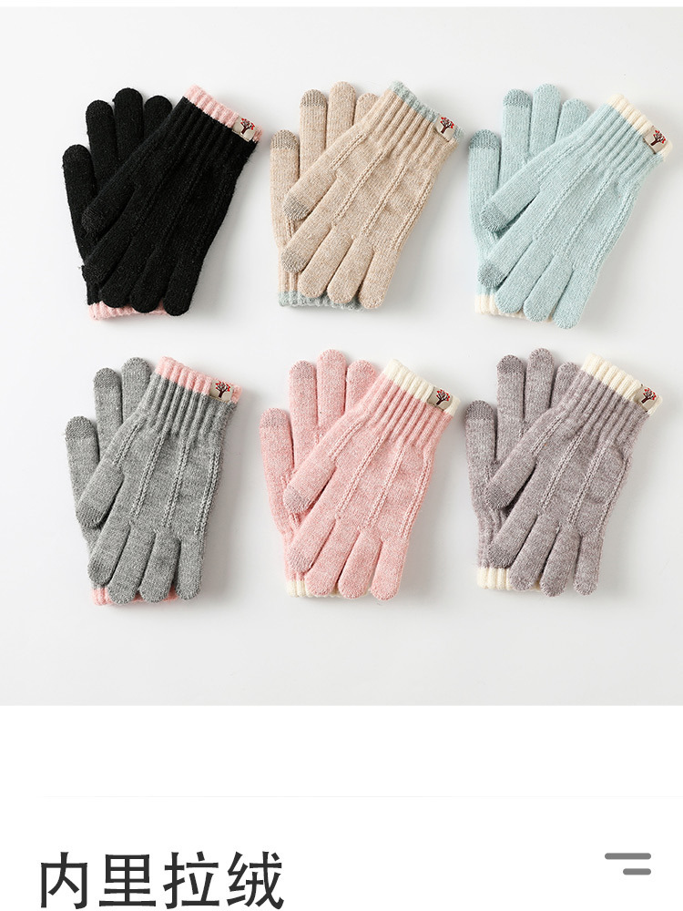 장갑 여성의 겨울 따뜻한 글쓰기 학생 두꺼운 기모 야외 사이클링 전기 자동차 터치 스크린 니트 울 장갑